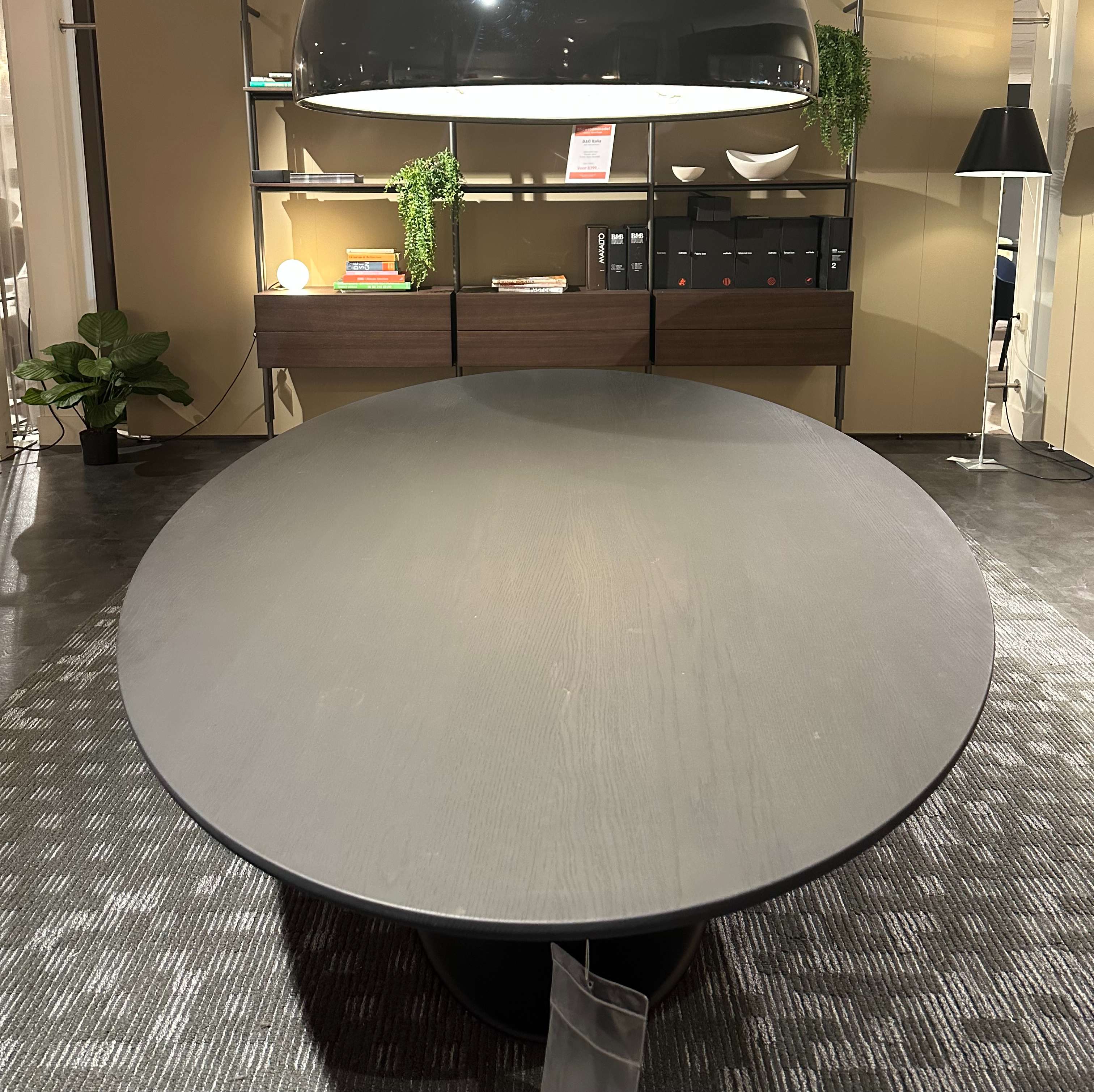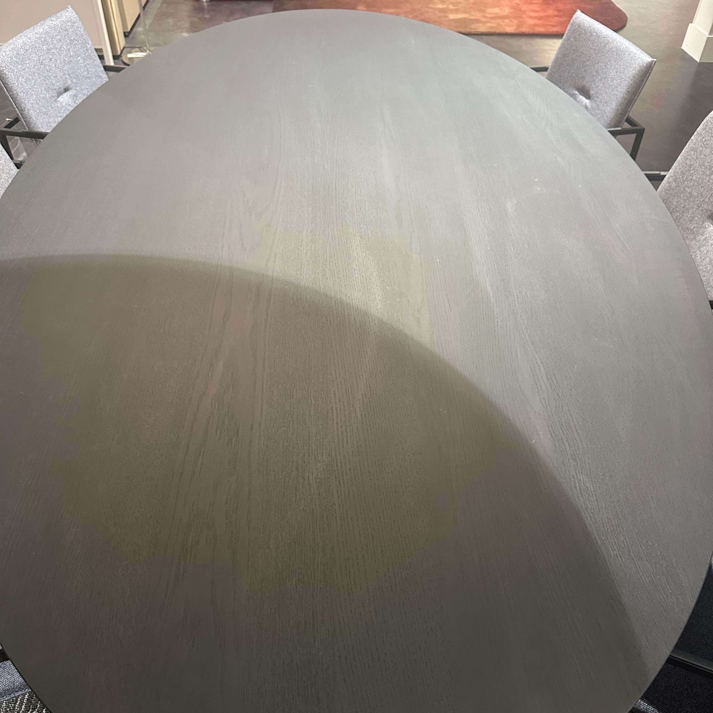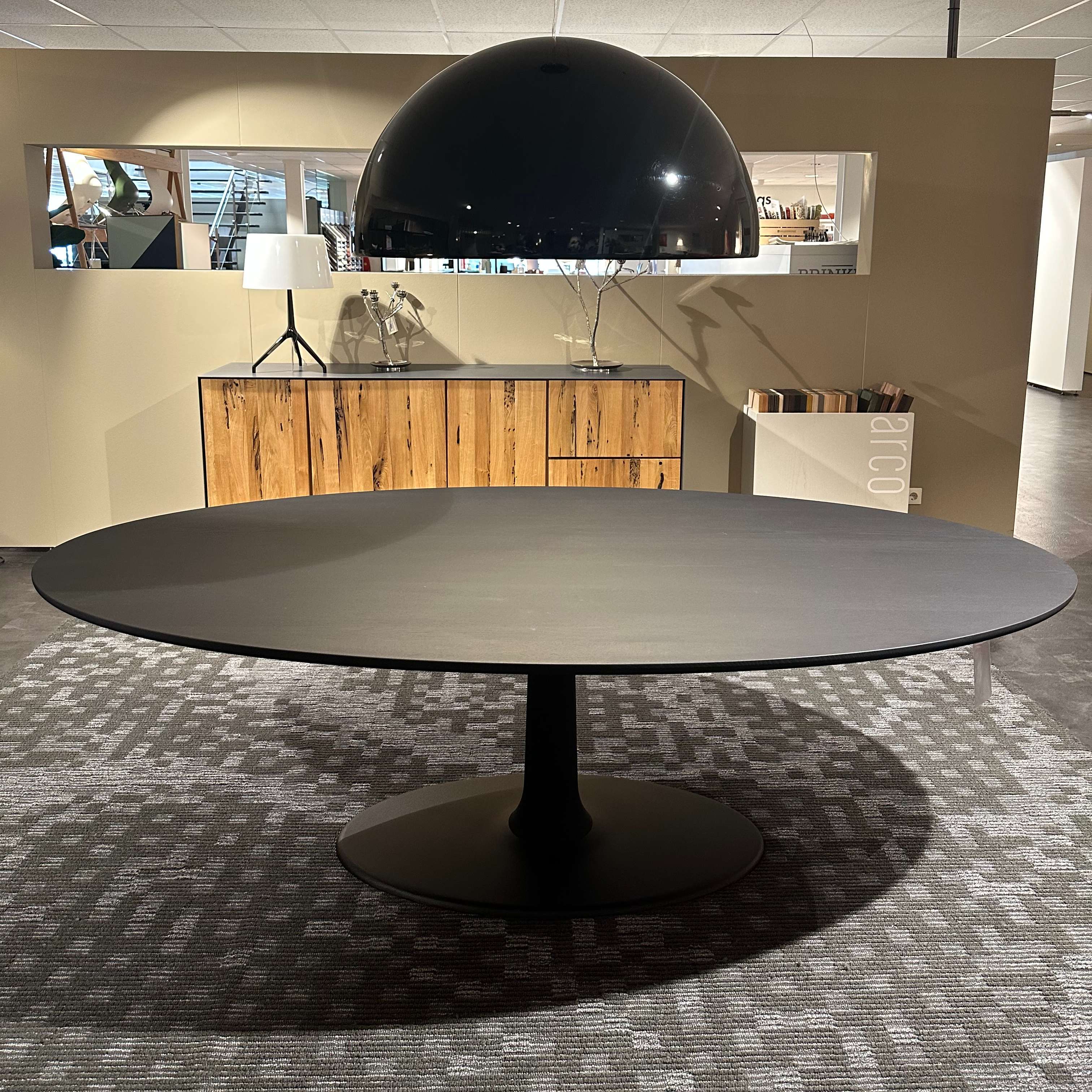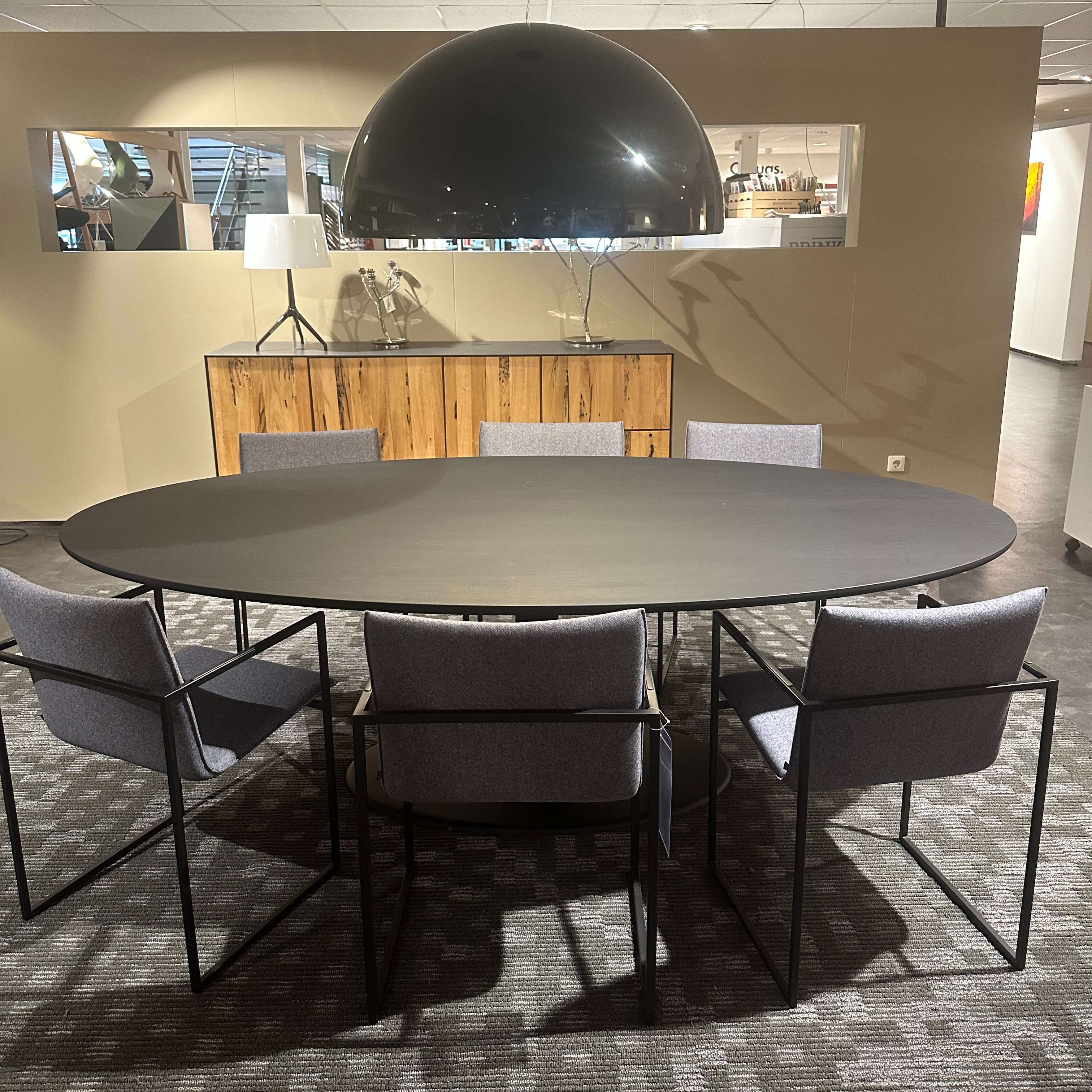 Uitvoering: blad eiken massief C22 carbon kolom N-lak, voet epoxy zwart RAL 9005 fine texture