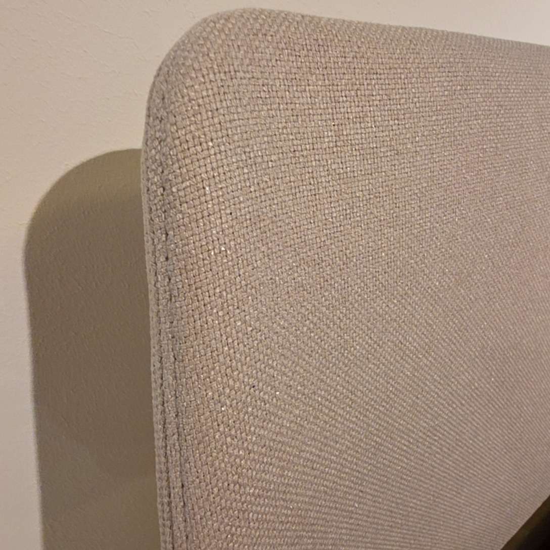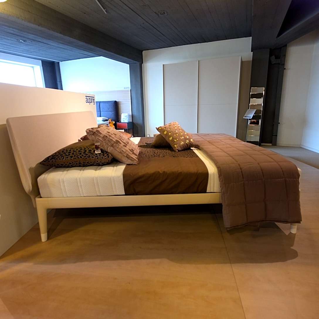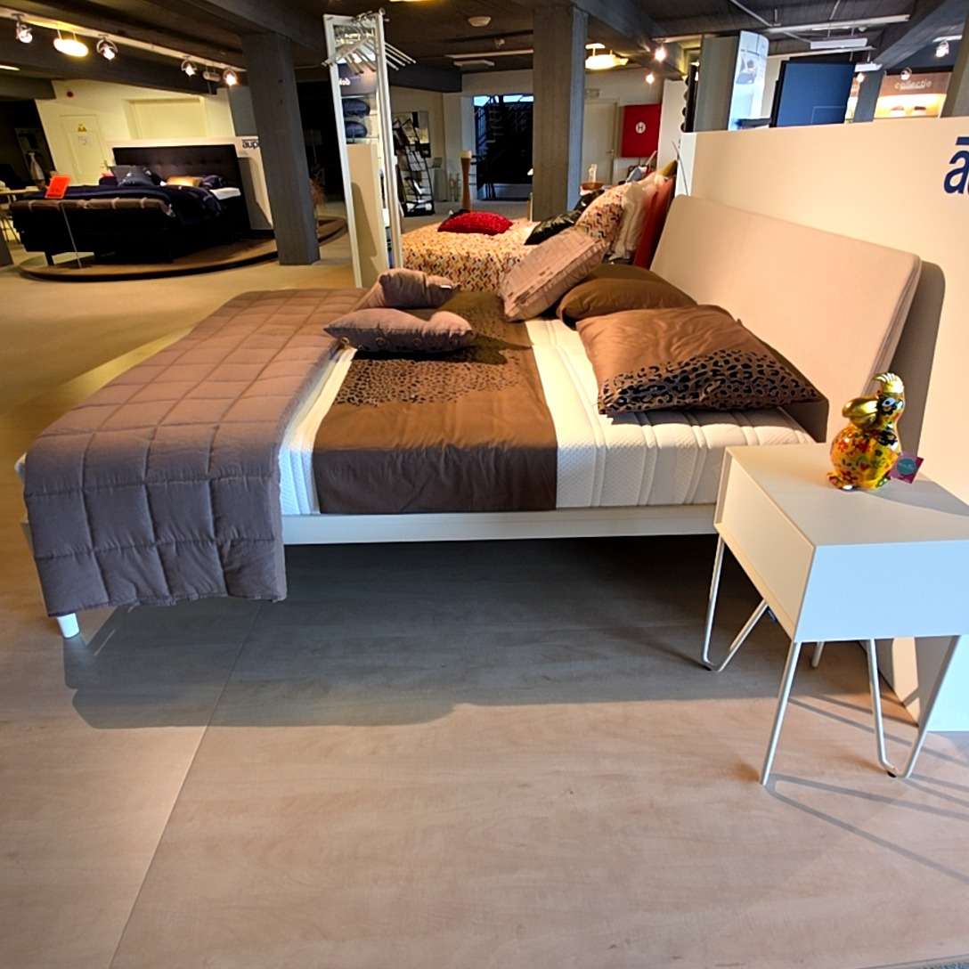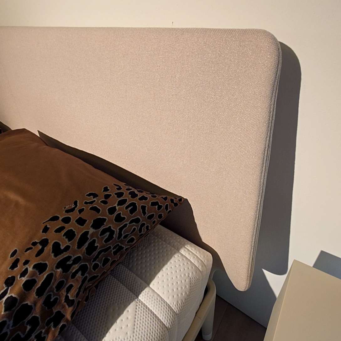 Auping Criade 180x200 met 2 vlakke spiraalbodems in de kleur sjieke Sand beige en een gestoffeerd hoodbord