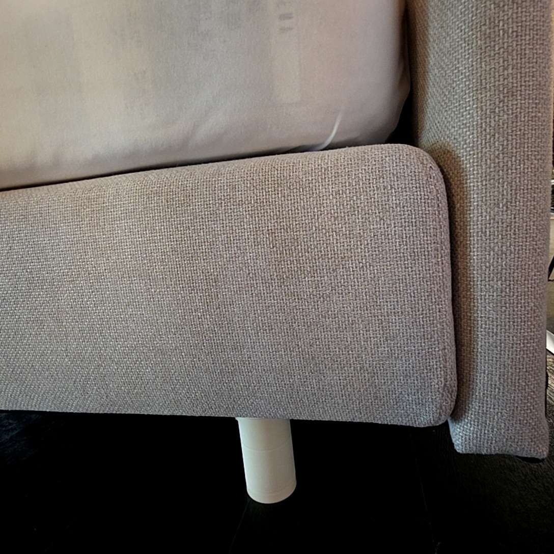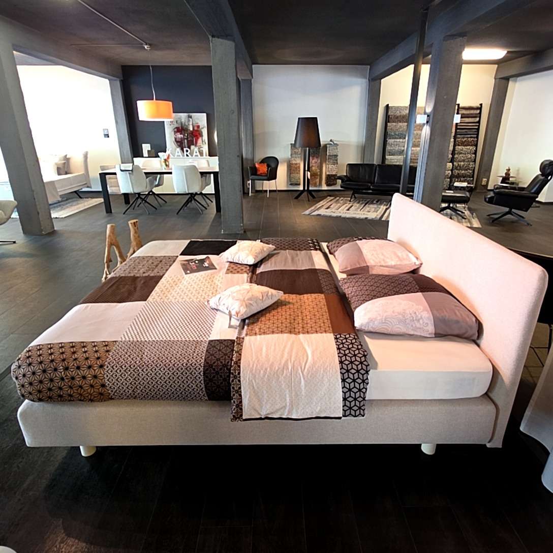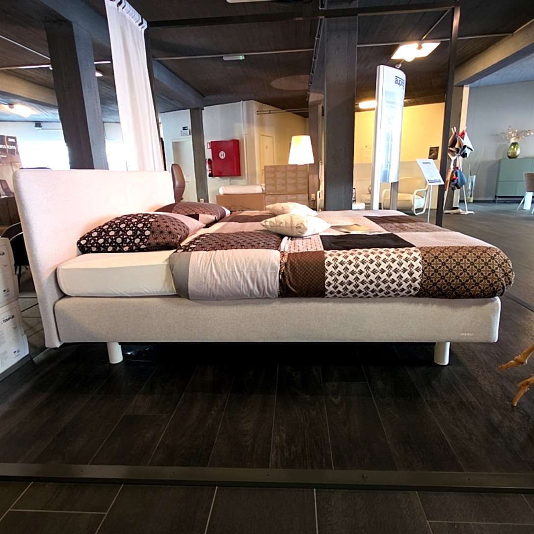 In de afmetingen 180x200 en fijne stof grid natural met poten en frame in sand beige.