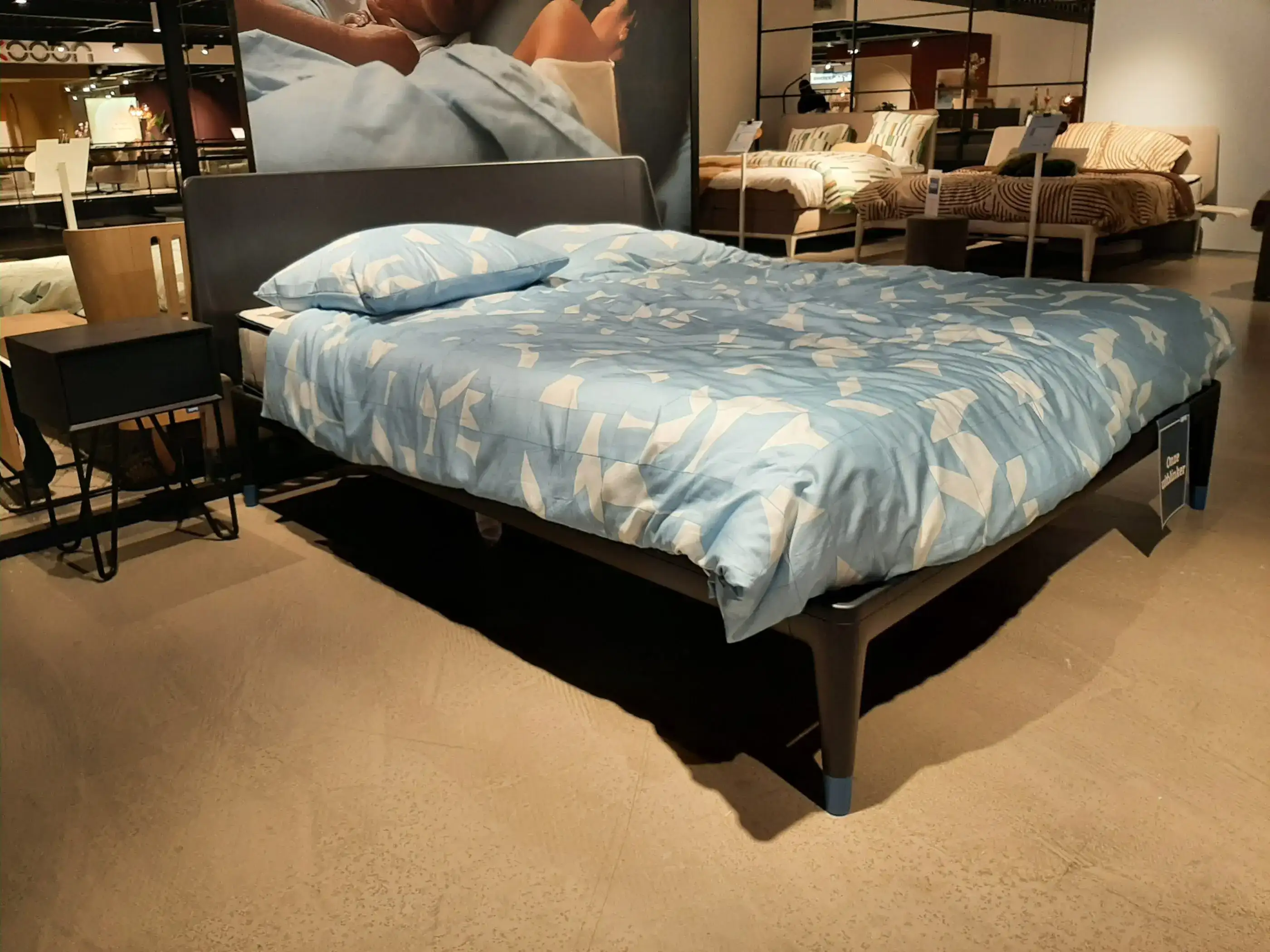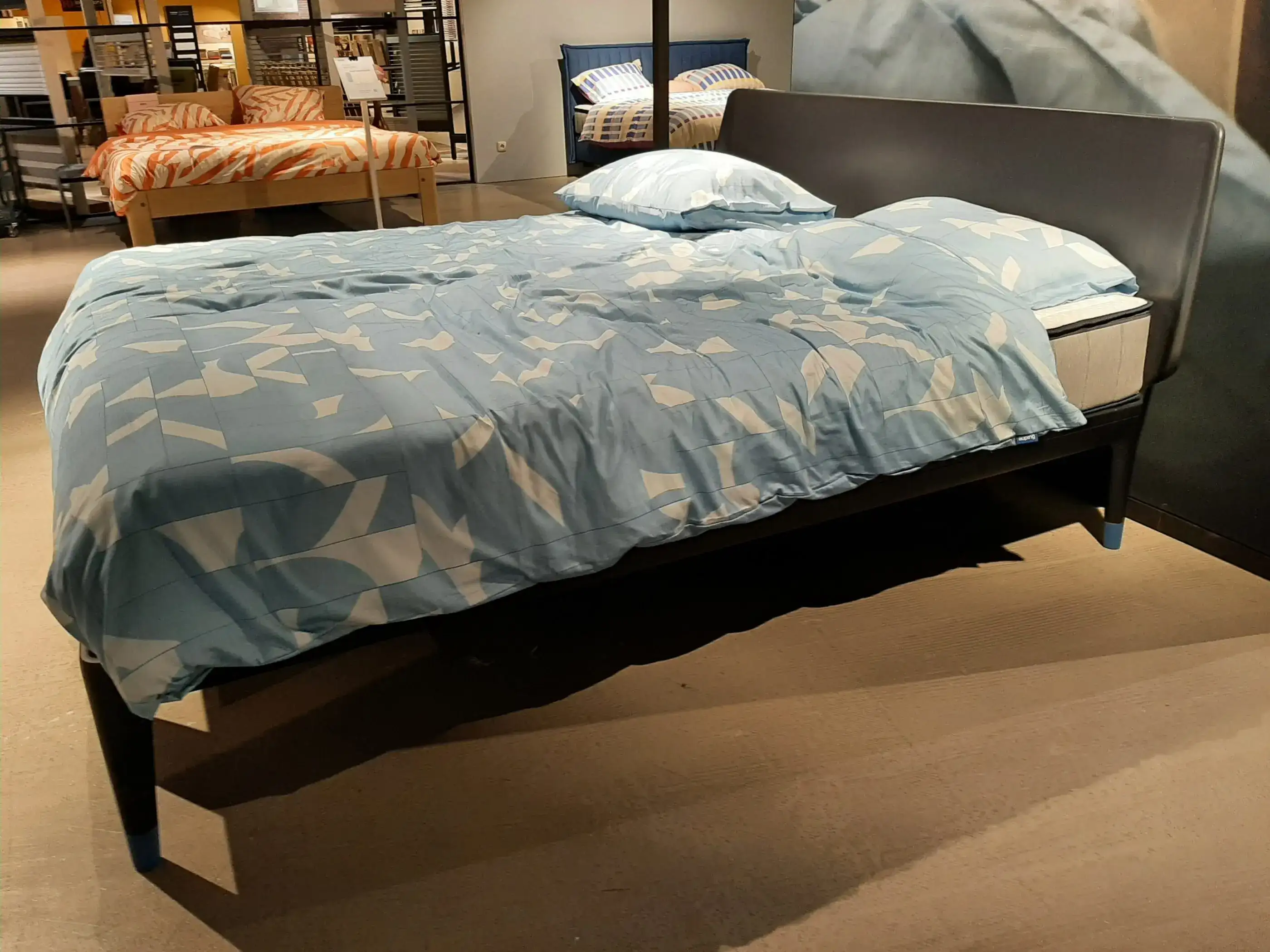 Het ledikant Essential van Auping is uitgevoerd in de afmeting 180×210 cm en de kleur night blue, met hoofdbord Essential, verhogingset royal blue, 2x spiraalbodem 90×210 vlak en 1x nachtkastje Pixel night blue.