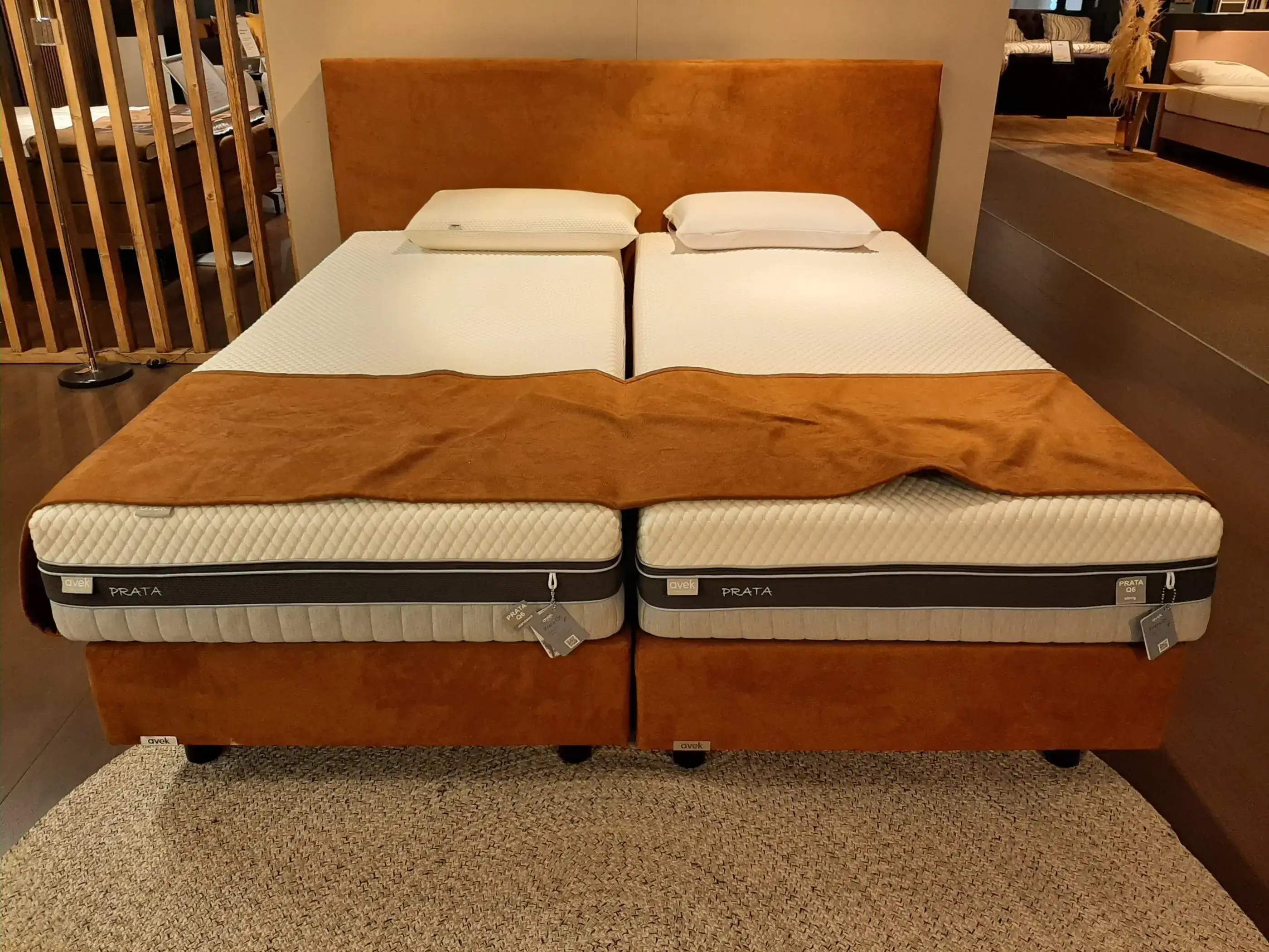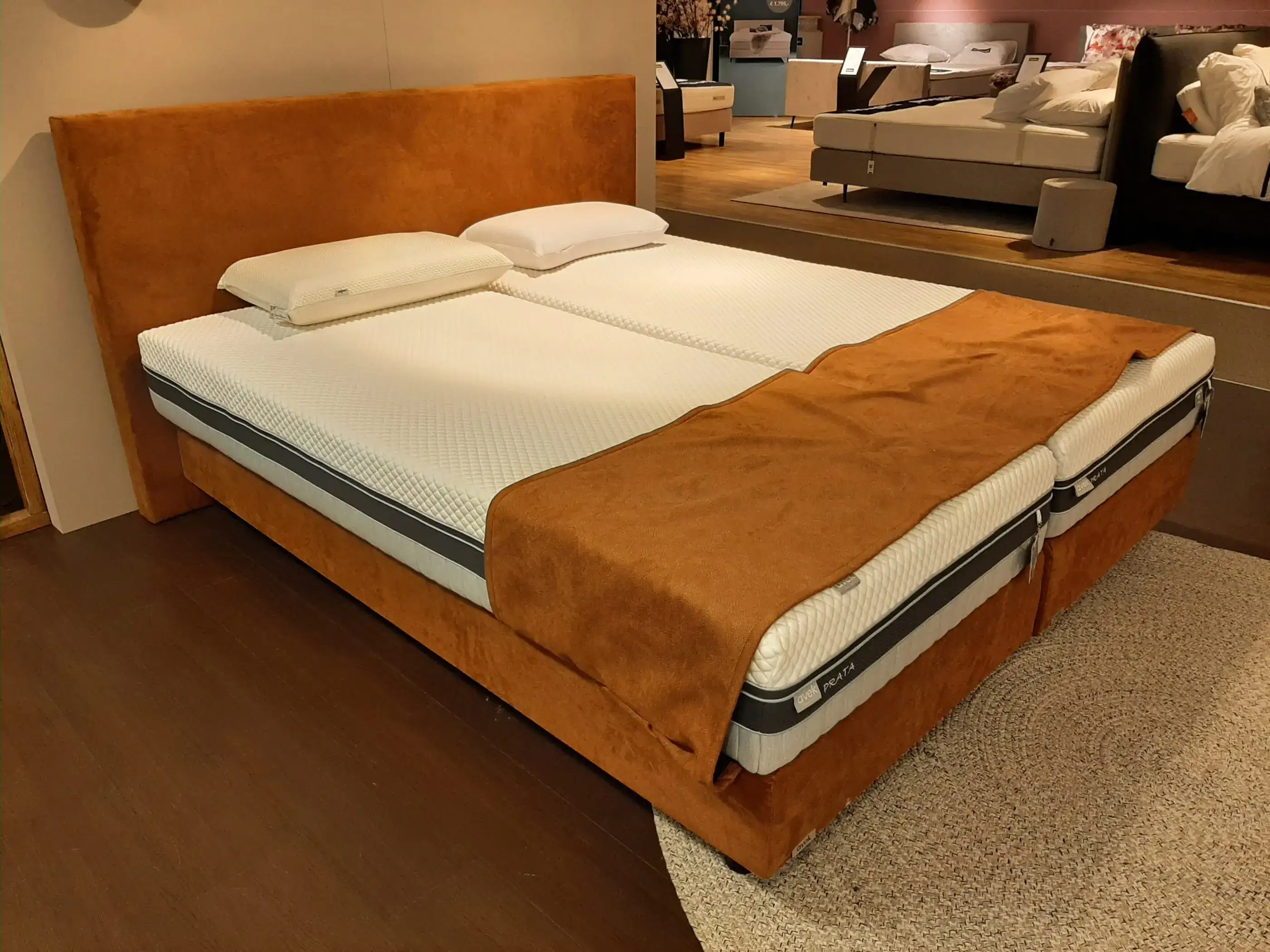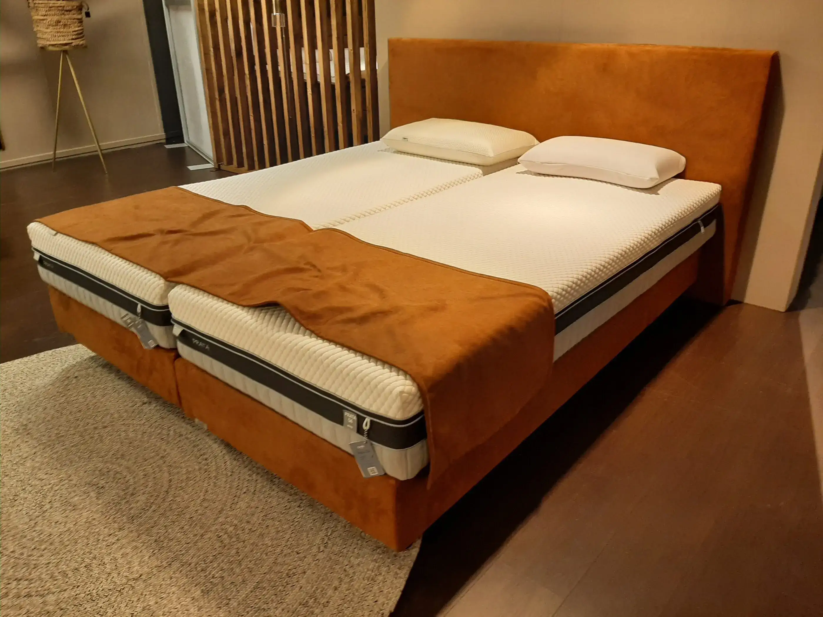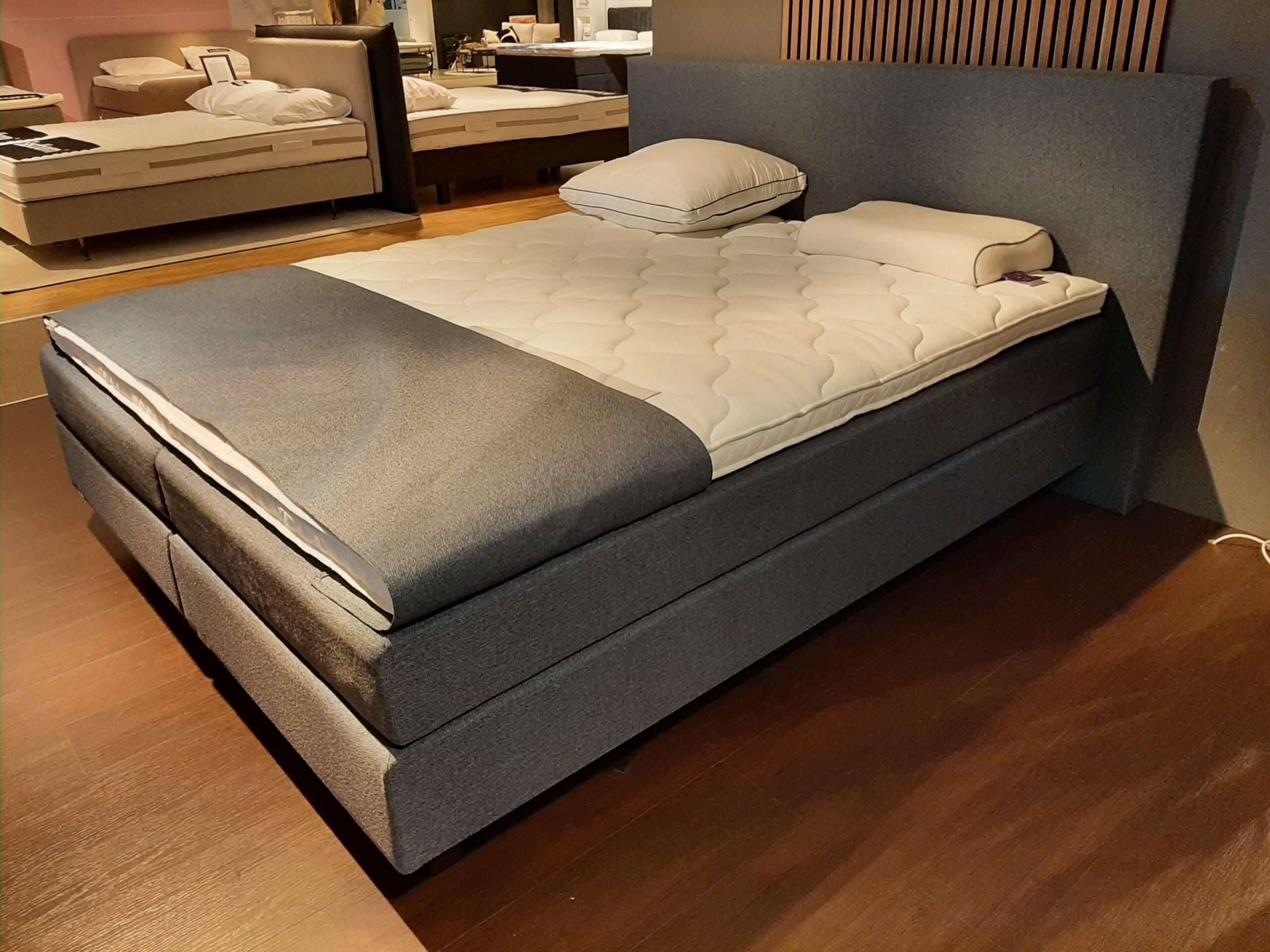 De 1927 boxspring is met vakmanschap en zorg vervaardigd. De boxspringcombinatie is uitgevoerd met het Original hoofdbord (200x110cm), een natuurlatex topdekmatras, 1 stevig en 1 extra stevig matras. Uitgevoerd in de afmeting: 180×210 cm.