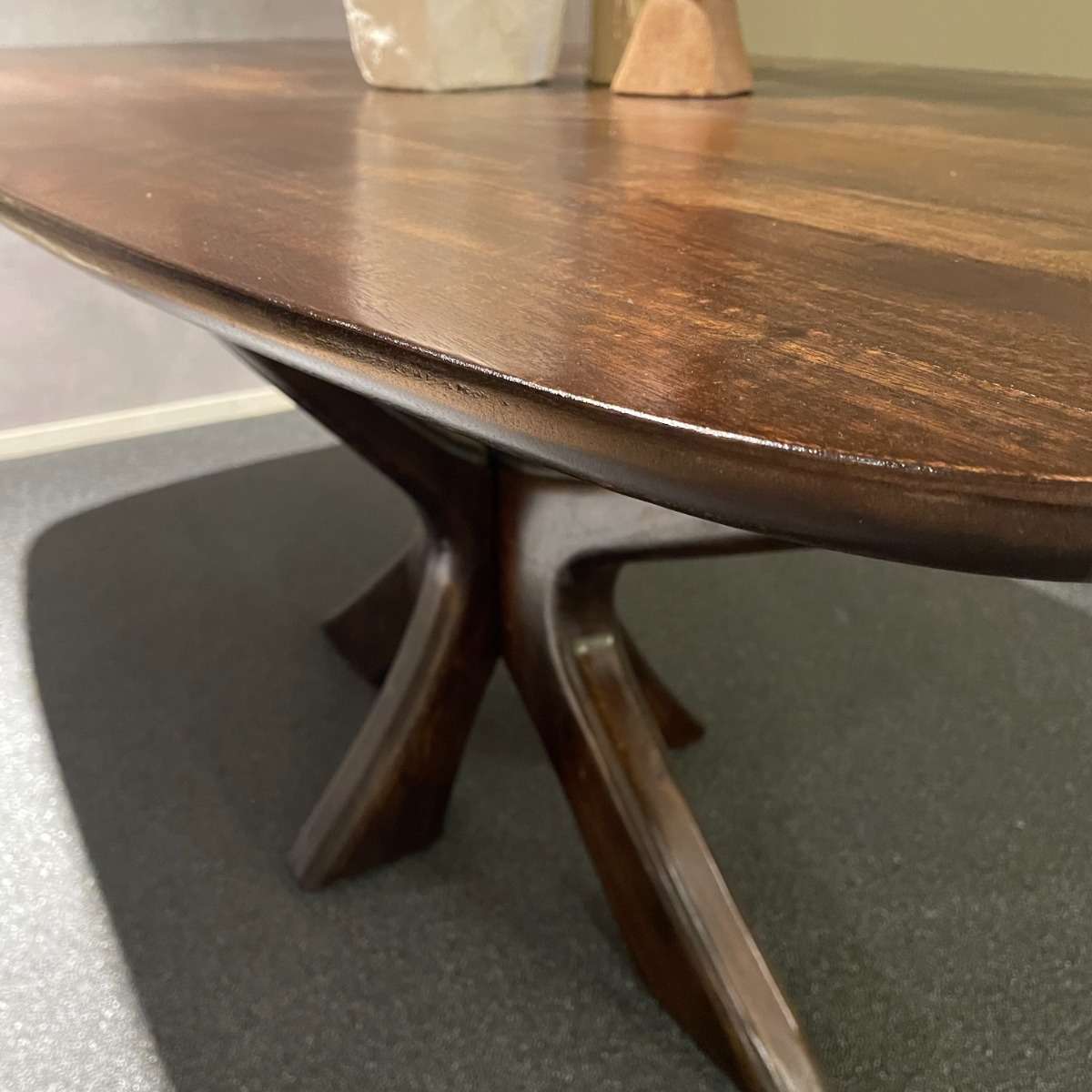 Eettafel Bridge - Showroommodel Zeer robuust eettafeldesign - Met grove kruispoot - Vervaardigd uit mangohout De Bridge eettafel komt uit de collectie van het Nederlandse interieurmerk BePureHome. Het grove design in combinatie met de warmgekleurde walnootfinish geeft een stoere, robuuste uitstraling aan het artikel. De massieve kruispoot biedt ruimte om vrij te zitten aan de tafelranden, wel zo praktisch! Een bolt statement! Materiaal Mangohout staat bekend om de warme goudbruine kleur, duurzame groei en lange houdbaarheid. Mangohout wordt ook gekenmerkt door duidelijk zichtbare nerven en kleurnuances. De nerven, een gele gloed of donkere lijnen en knoesten zorgen ervoor dat elk mangohouten item uniek is. Onderhoud Mangohouten meubelen zijn gemakkelijk in onderhoud. Je houdt ze eenvoudig stof- en vlekvrij met een lichtvochtige, schone doek. 180x100x76 cm