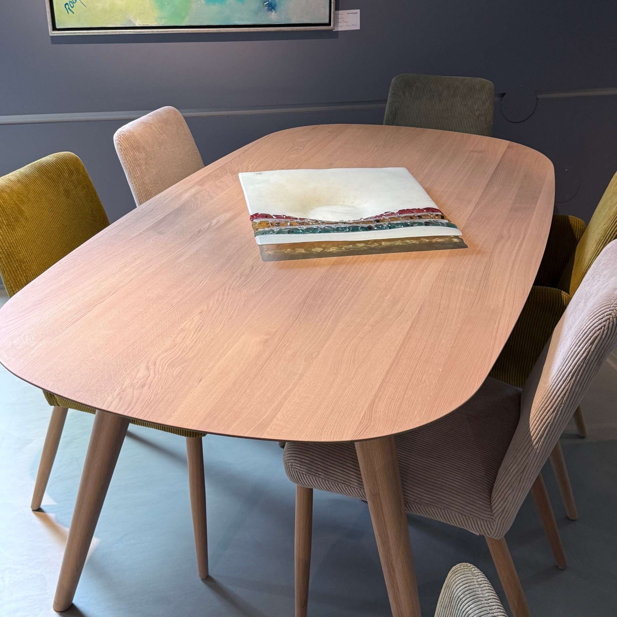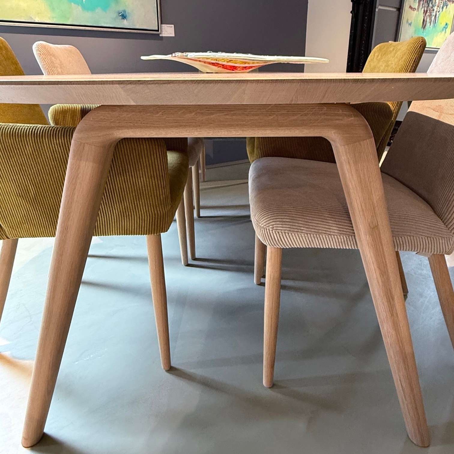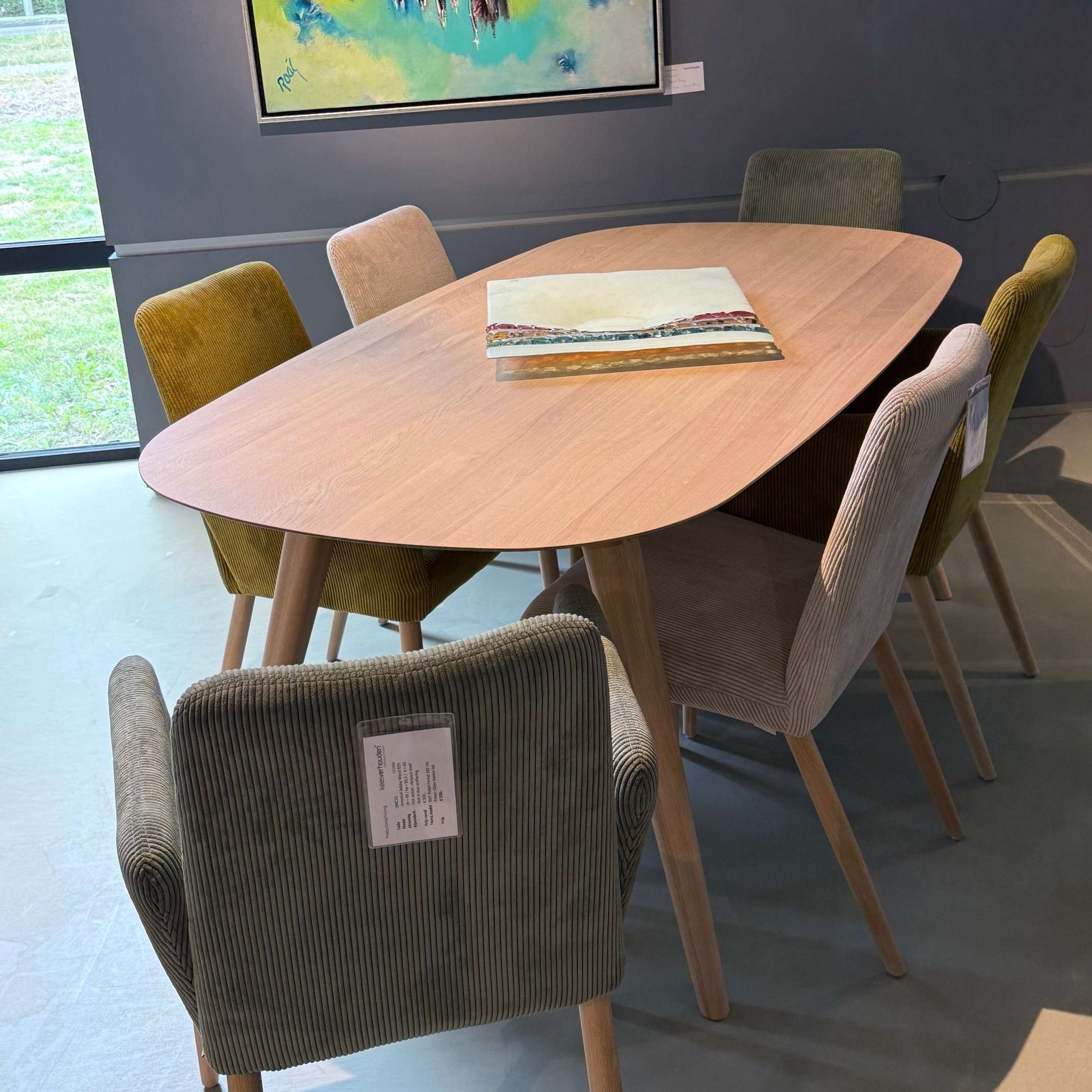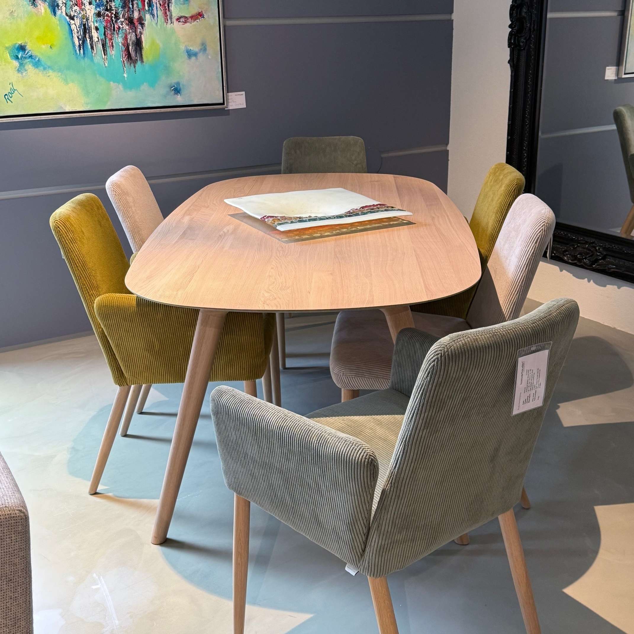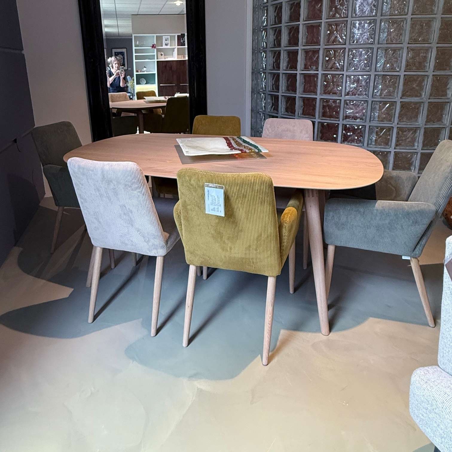 Dankzij zijn nosag-veren en rijke opbouw zit stoel Bobby wood o zo comfortabel. Door zijn toegankelijke design en de vele stofferingsmogelijkheden past hij in ieder interieur. Nu 6 stoelen in de outlet, 4 met armleuning en 2 zonder armleuning in een hele mooie ribstof in 3 kleuren. Daarbij de schitterende eetkamertafel Pitcher met een Deens ovaal blad. Een schitterende set die ook past in wat kleinere woonkamers.