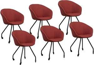 Ervaar luxe en comfort met de Bree's New World Dolce eetkamerstoelen set van 6 stuks. Deze elegante stoelen zijn bekleed met hoogwaardige Ploegwool rode stof en voorzien van zwarte poten op wielen. Dit zorgt niet alleen voor flexibiliteit, maar ook voor een moderne uitstraling. De set past perfect in een eigentijds interieur en creëert een uitnodigende sfeer aan iedere eettafel. Kies voor duurzaamheid en tijdloos design met deze exclusieve set en ontdek het verschil dat de Bree's New World Dolce eetkamerstoelen maken in uw eetkamer.