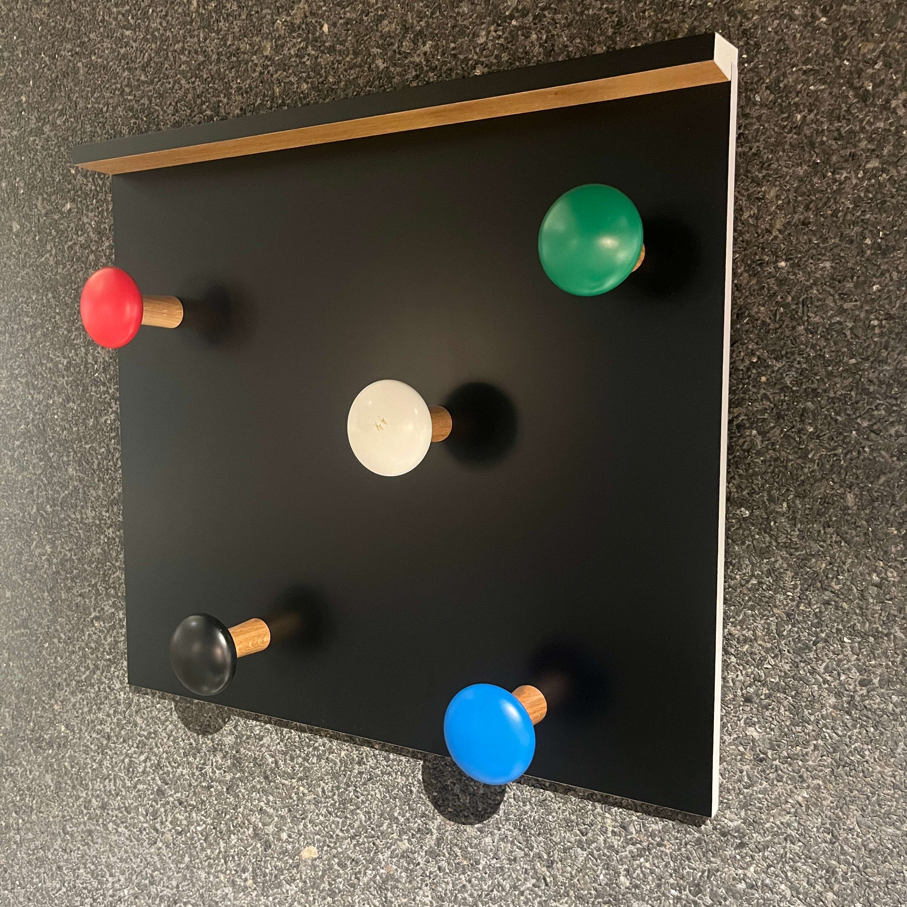 De Portemanteau kapstok, opnieuw uitgebracht door Cassina in 2010, is een iconisch ontwerp van Le Corbusier uit 1957. De kapstok is gemaakt van massief eikenhout met paddenstoelvormige haken die op verschillende hoogtes zijn geplaatst volgens de Modulor-schaal, waardoor functionaliteit en esthetiek perfect samenkomen. Oorspronkelijk ontworpen voor het Cabanon, zijn zomerhuis aan de Côte d’Azur, combineert dit heruitgaveontwerp de heldere, speelse kleuren die kenmerkend zijn voor compacte en minimalistische ruimtes, zoals de cabine van een cruiseschip. De kapstok is uitgevoerd in eikenhout met een matte zwarte basis, terwijl de knoppen in wit, zwart, rood, groen en blauw zijn uitgevoerd. Met zijn tijdloze design en kleurrijke uitstraling is de Portemanteau kapstok een opvallend en functioneel statement voor ieder interieur.