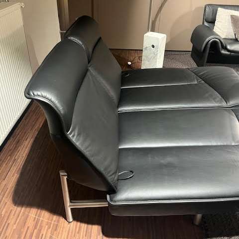 De DS-450 combineert een doordachte constructie met hoogwaardig zitcomfort en een stijlvol design. De basis bestaat uit metaal en plaatmateriaal, waarbij zitting en armleuningen zijn voorzien van een dragende comfortschuimkern met een zachte wattenvulling. De rugleuning is vormgeschuimd en versterkt met een metalen inzet. Het onderstel is uitgevoerd in geborsteld roestvrij staal en de bekleding in leder Living zwart. Voor optimaal gebruiksgemak beschikt de DS-450 over handmatig verstelbare armleuningen met rastermechanisme en een zitting met draaimechaniek. Bovendien kan de armleuning eenvoudig als voetsteun worden gebruikt en is de rugleuning traploos verstelbaar met een gasveer. Daarbij zijn hoogte, diepte, breedte én zitdiepte volledig aanpasbaar aan de persoonlijke voorkeur van de gebruiker.