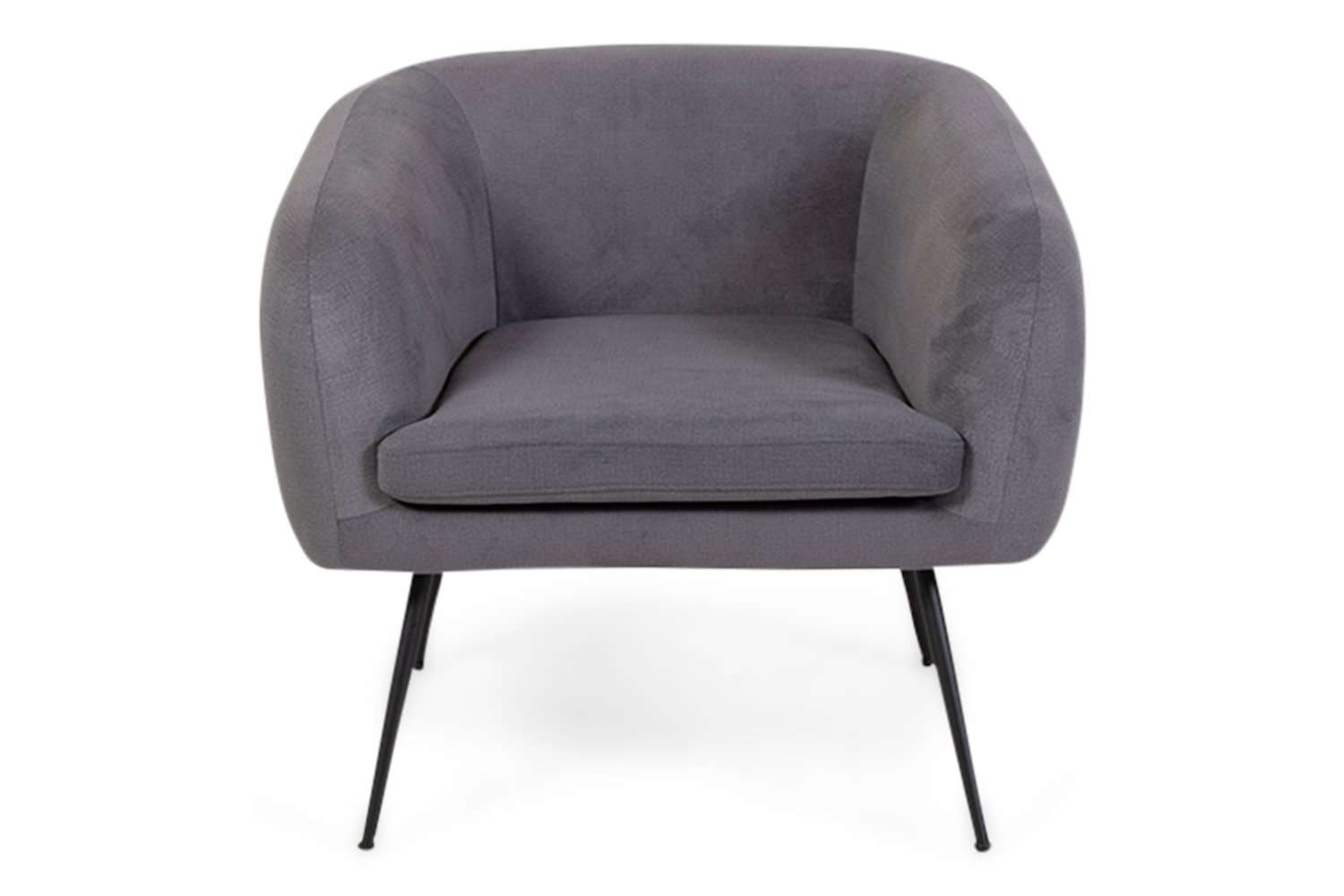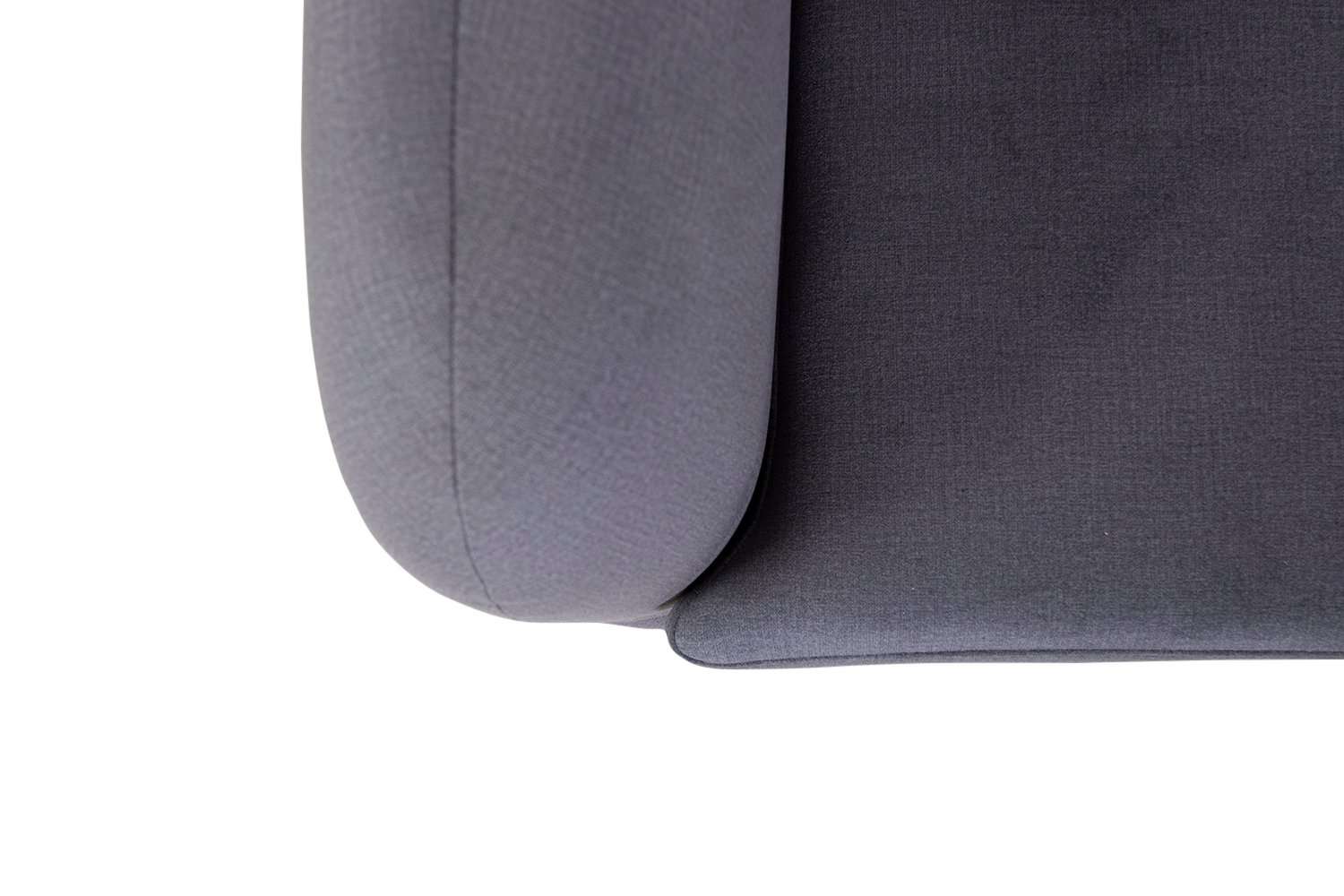 Deze fauteuil, bekleed in de stof Janda 19 Antraciet, biedt een luxueuze zitervaring.