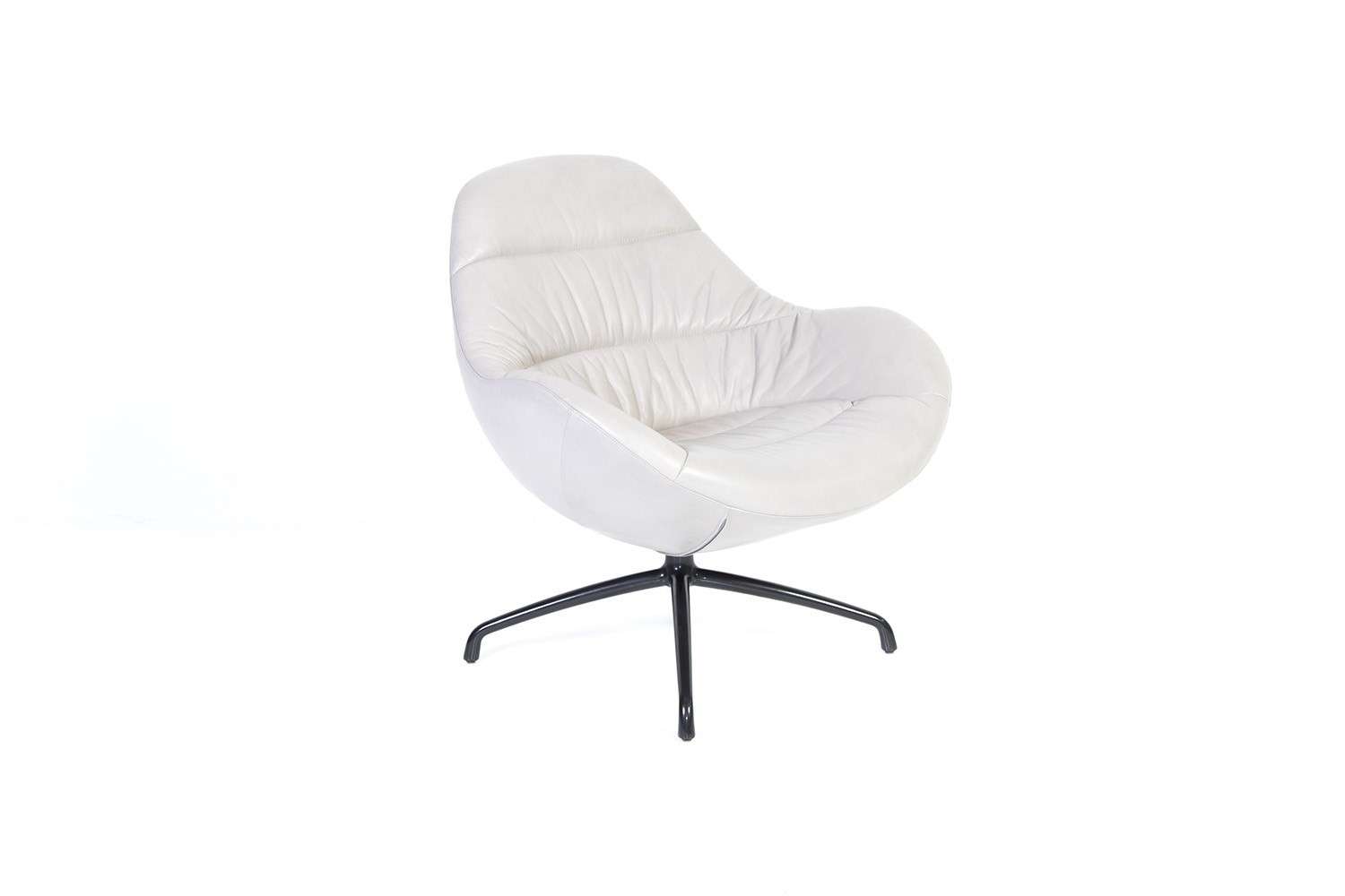 De Nylo draaifauteuil biedt uitstekend zitcomfort dankzij de hoekige overgang tussen zitting en rug. Uitgevoerd in Loxton 3706 Glacier met een donkere voet, is deze fauteuil een stijlvolle aanvulling op elk interieur.
