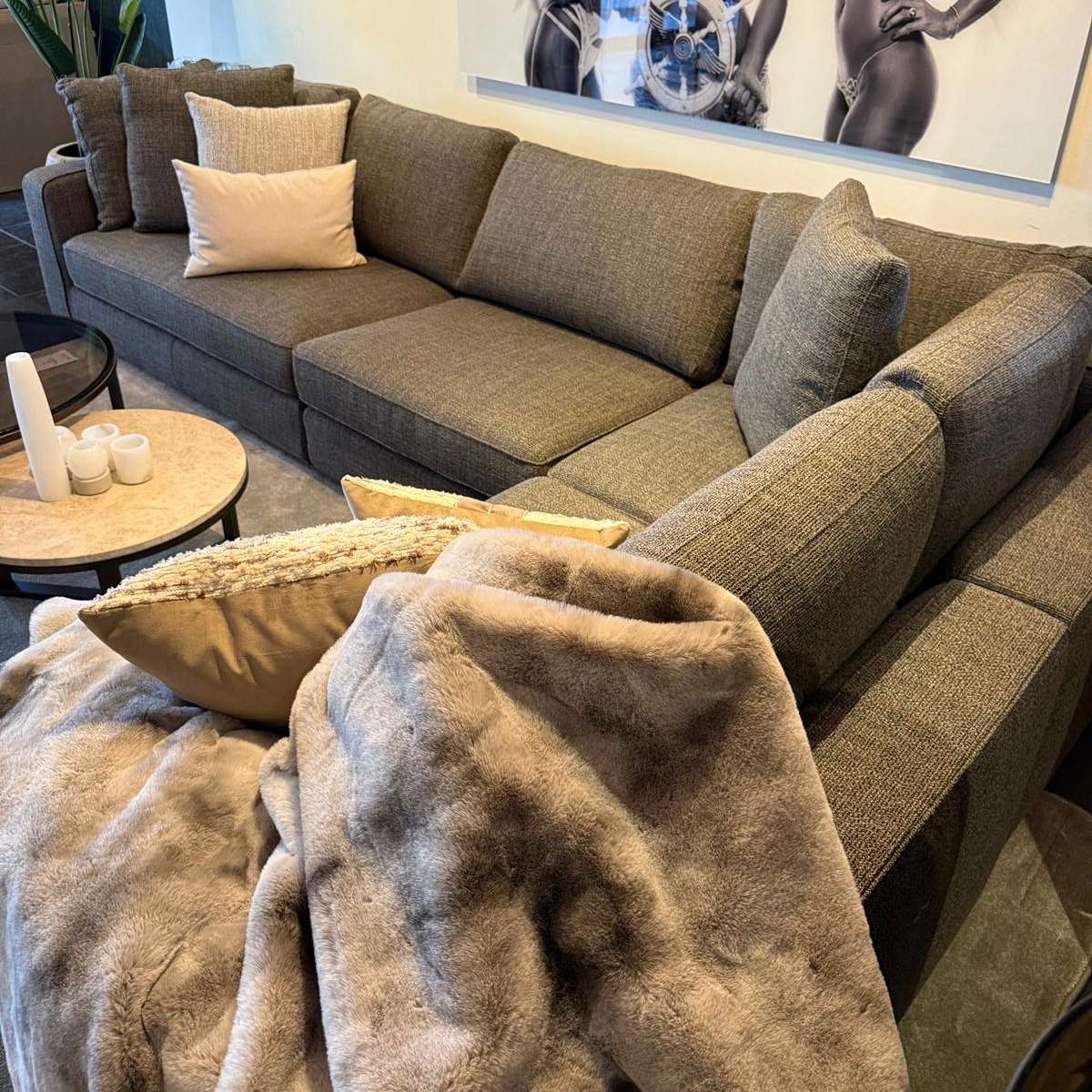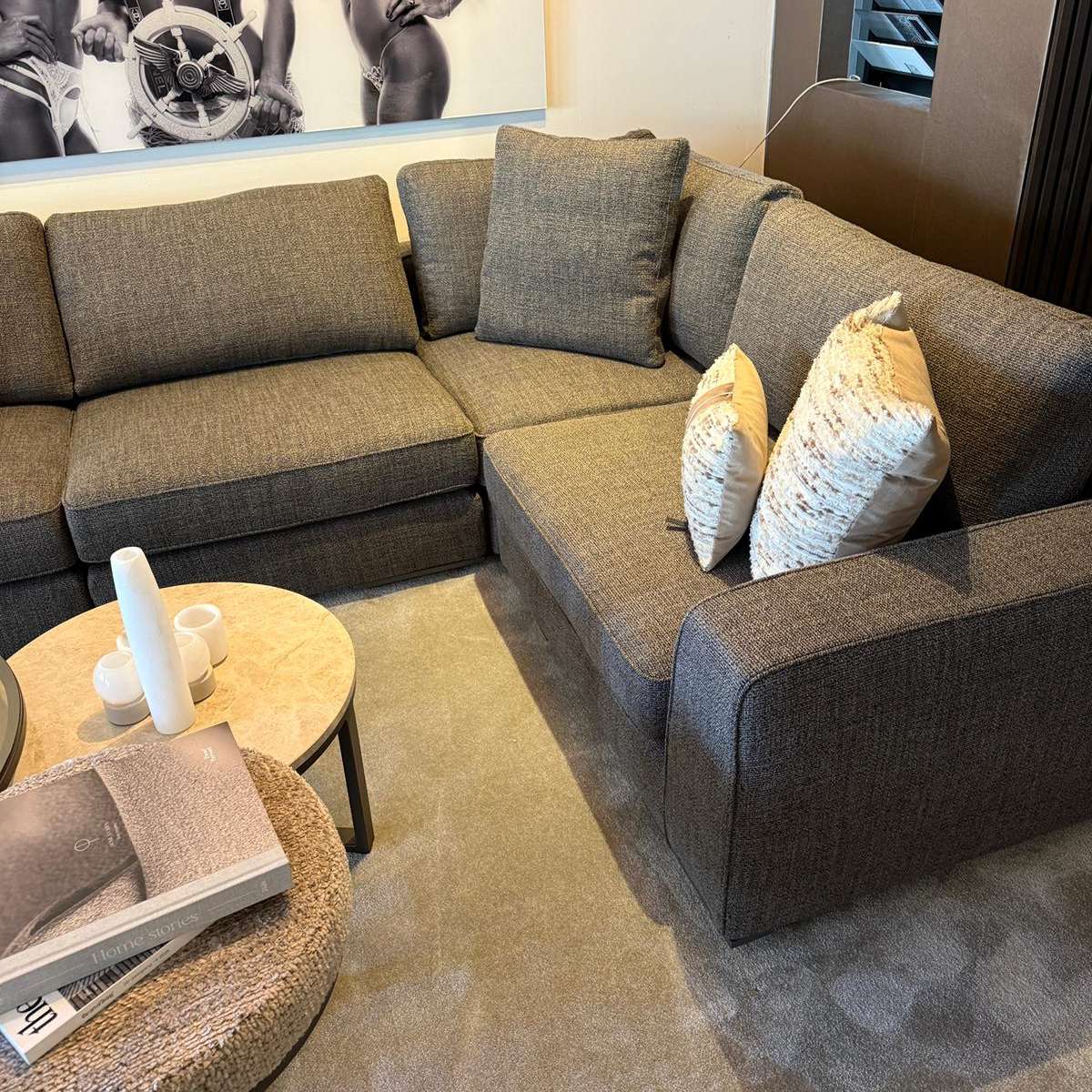 Nieuw uit de doos gehaald wegens een klant faillisement. Bankstel Loman van Ditre Italia uitgevoerd in een hoekopstelling. Stof: Pablo 168.