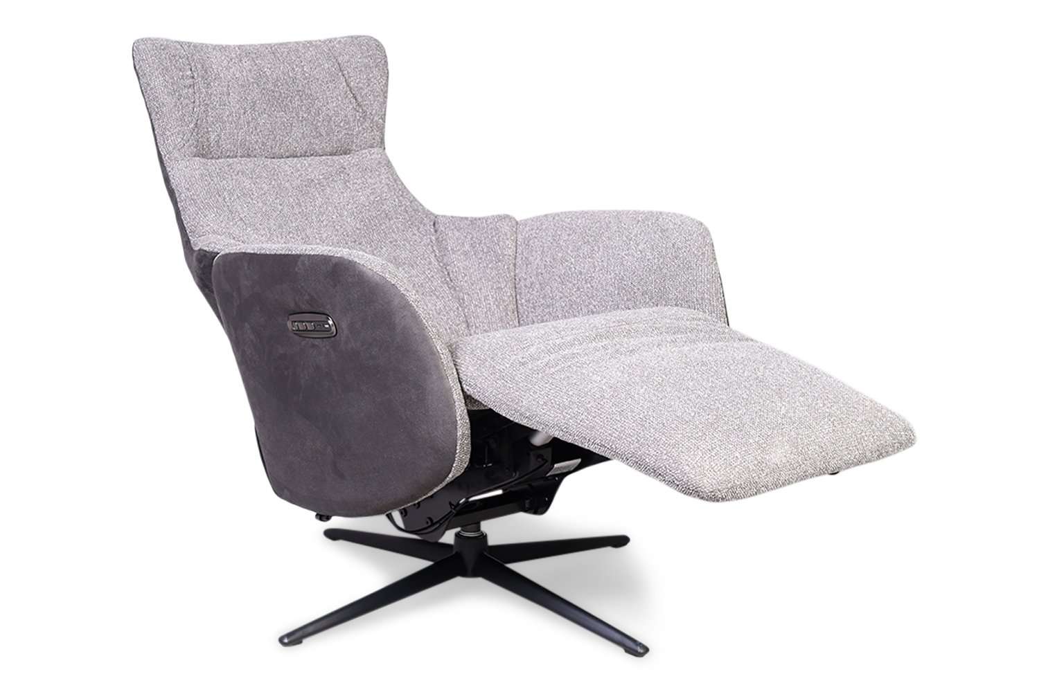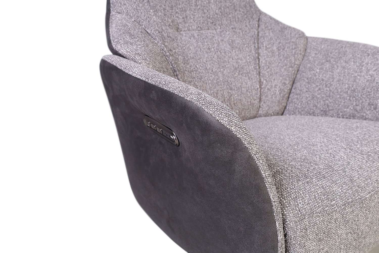 Relaxfauteuil Arun van DMO collection / zwart metalen draaivoet (300° draaibaar) met ingebouwde stopfunctie / leder buitenkant Bull 67 antracite / stof binnenkant sneak 65 grey / oplaadbare en afneembare batterij, 2-motorig systeem, verstelbare rugleuning en voetensteun, manueel verstelbare hoofdsteun De getoonde afbeeldingen zijn de werkelijke weergave van het product.