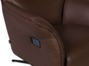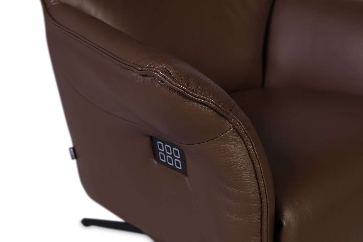 Relaxfauteuil Globe van DMO collection / zwart metalen draaivoet (300° draaibaar) met ingebouwde stopfunctie / leder Ebano / 3-motorige relax, verstelbare rugleuning en voetensteun, handmatig verstelbare hoofdsteun, oplaadbare batterij De getoonde afbeeldingen zijn de werkelijke weergave van het product.