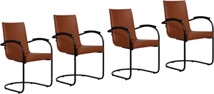 De Dutch Originals GT 412RH sledestoel set van 4 stuks is een stijlvolle toevoeging aan ieder interieur. Met hun luxe bruine leder en het hoogglans chromen frame stralen deze stoelen klasse en elegantie uit. Of je nu een moderne eetkamer, een klassiek kantoor of een eigentijdse vergaderruimte wilt inrichten, deze sledestoelen zorgen voor een comfortabele zitervaring en een exclusieve uitstraling. Dankzij de vloerglijders blijven je vloeren beschermd en kun je de stoelen moeiteloos verplaatsen.