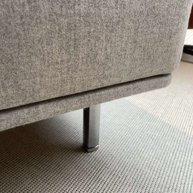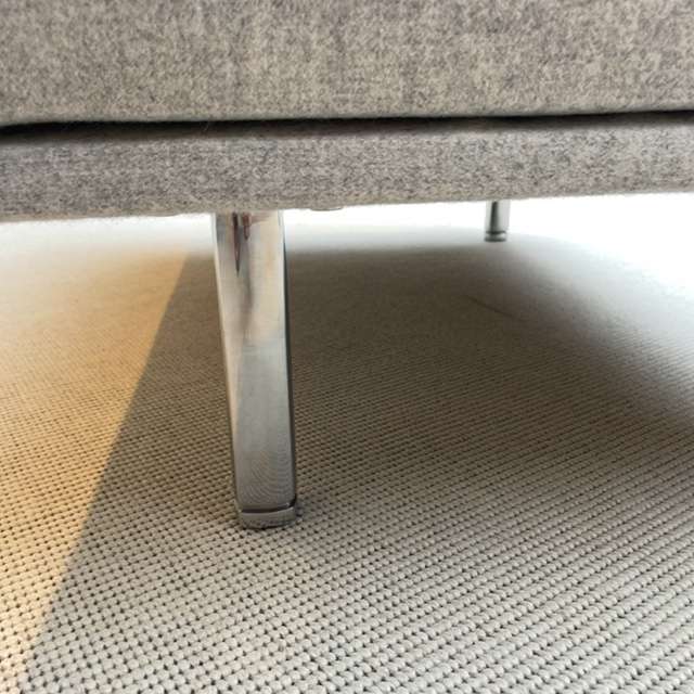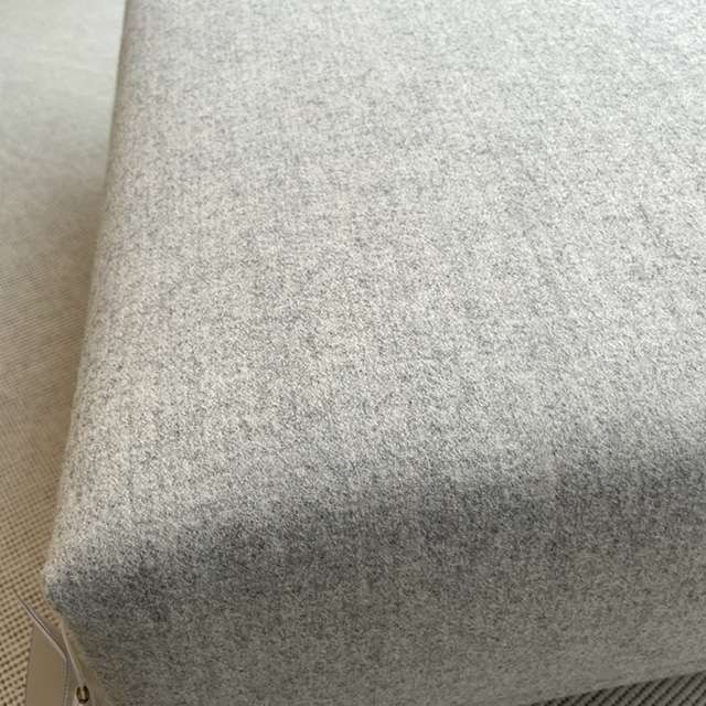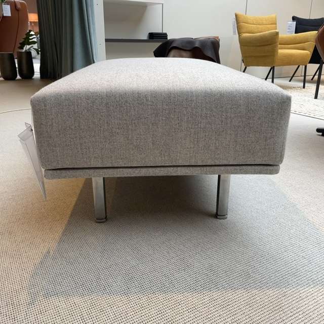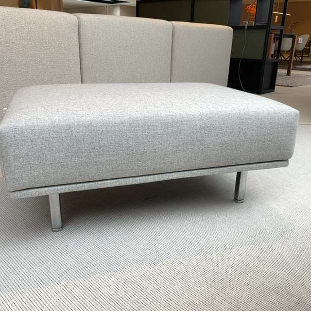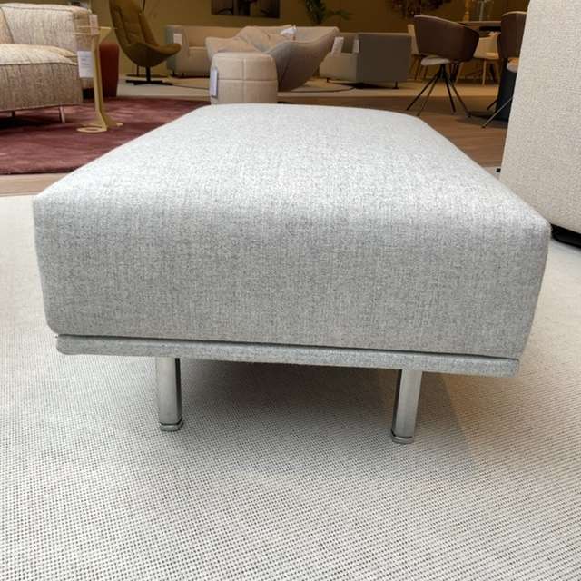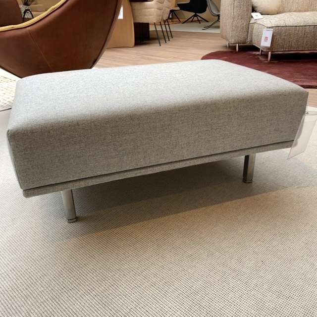 Mooie poef van Eyye, model Dura. De poef is uitgevoerd in stof Synergy Serendipty met poten in aluminium.