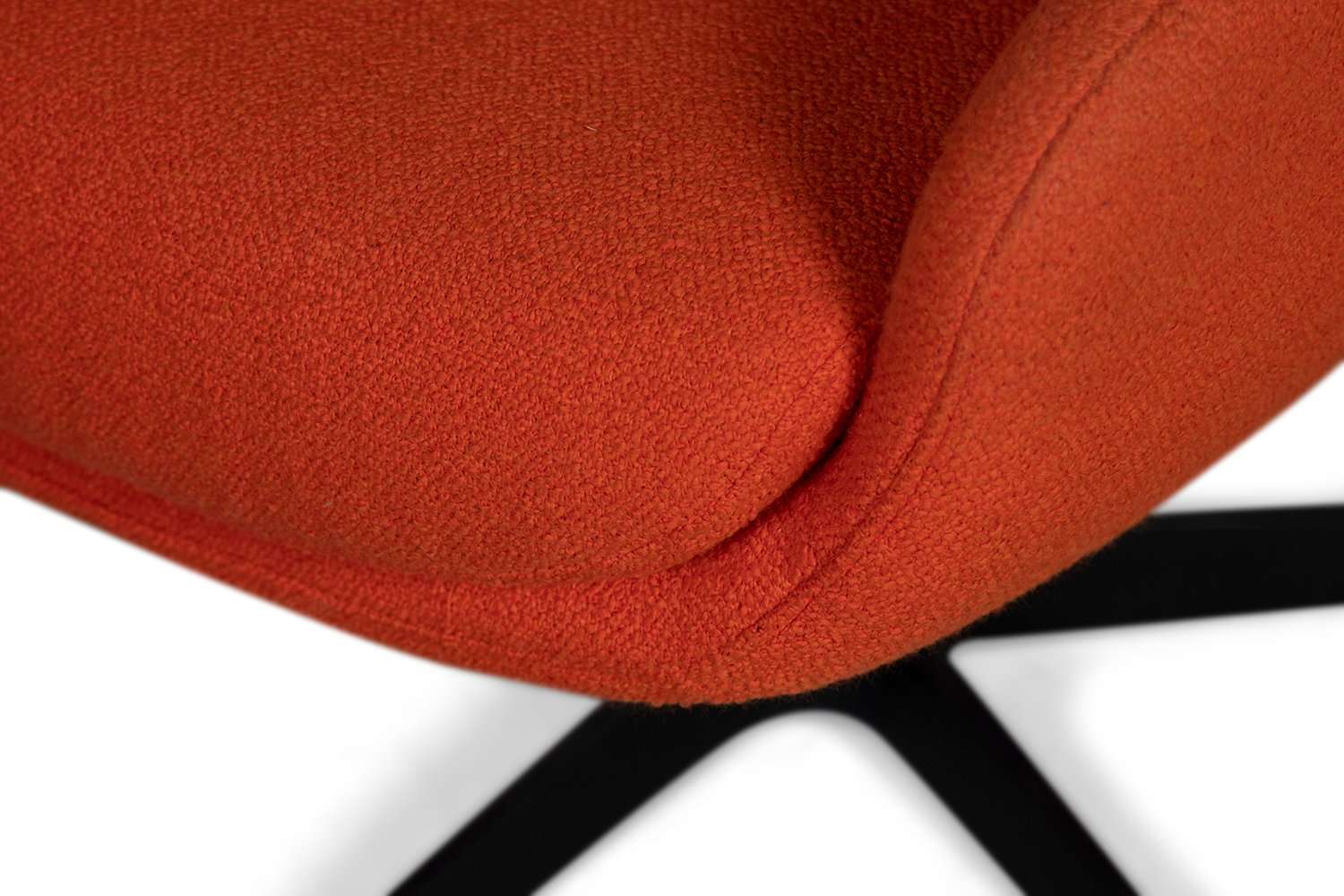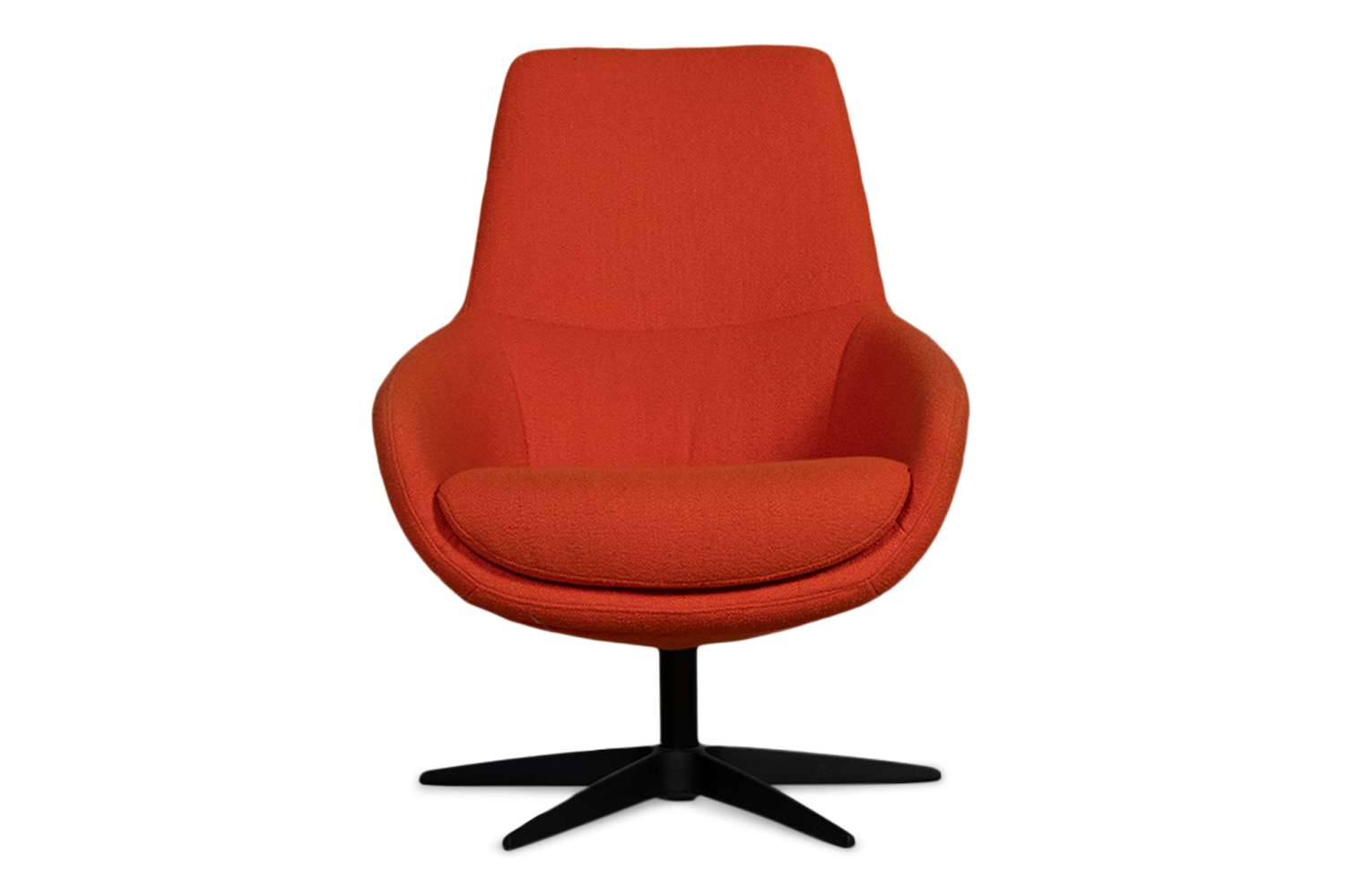 De Gealux Mookait medium draaifauteuil is bekleed in stof in de kleur oranje, en staat op een X-60 voet in de kleur zwart.