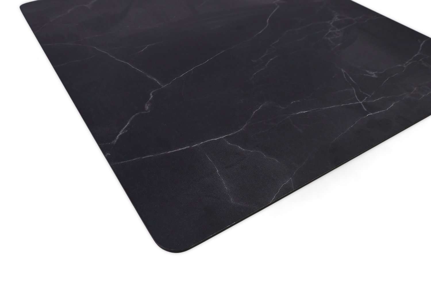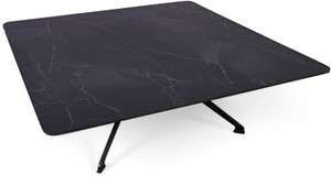 Deze salontafel is uitgevoerd in HPL marmer 3452 zwart, wat zorgt voor een luxueuze uitstraling. De zwarte spinpoot voegt een modern tintje toe aan het klassieke design.