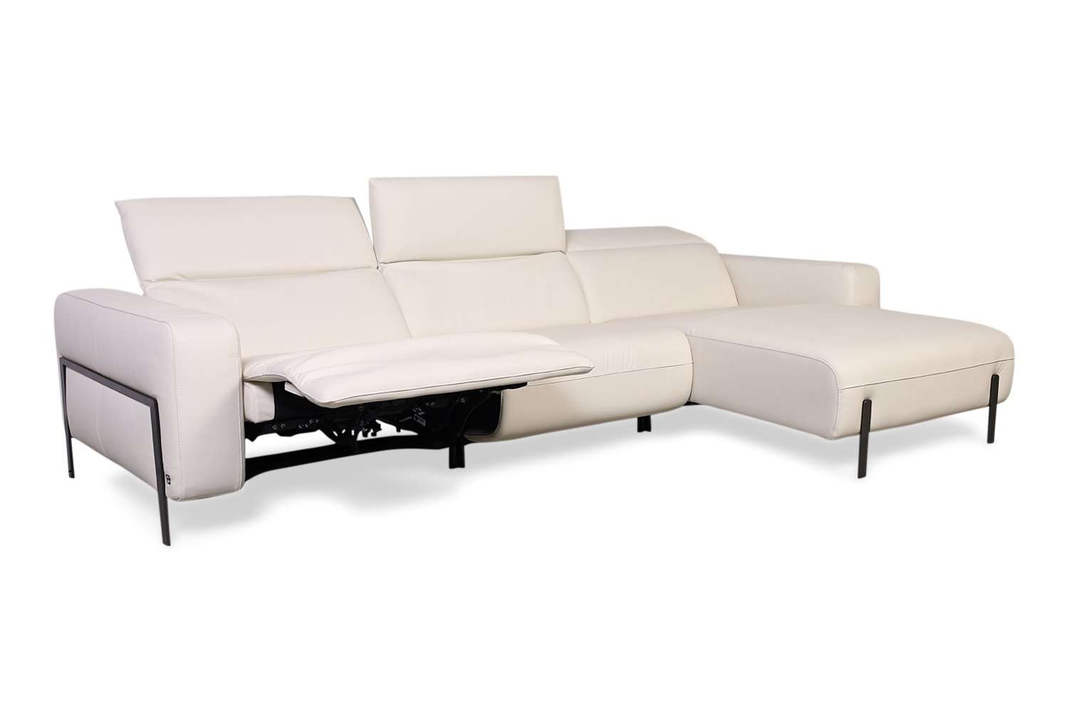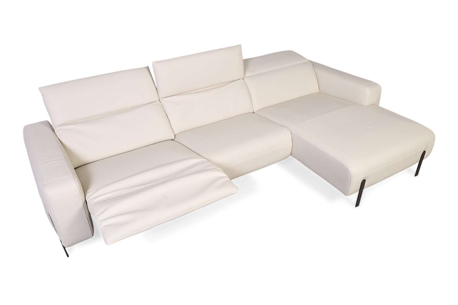 Hoekbank Morandi van Gorini electrsich verstelbaar bestaande uit een element large arm links en een relax large poef links / leder Cat E col 851 De getoonde afbeeldingen zijn de werkelijke weergave van het product.