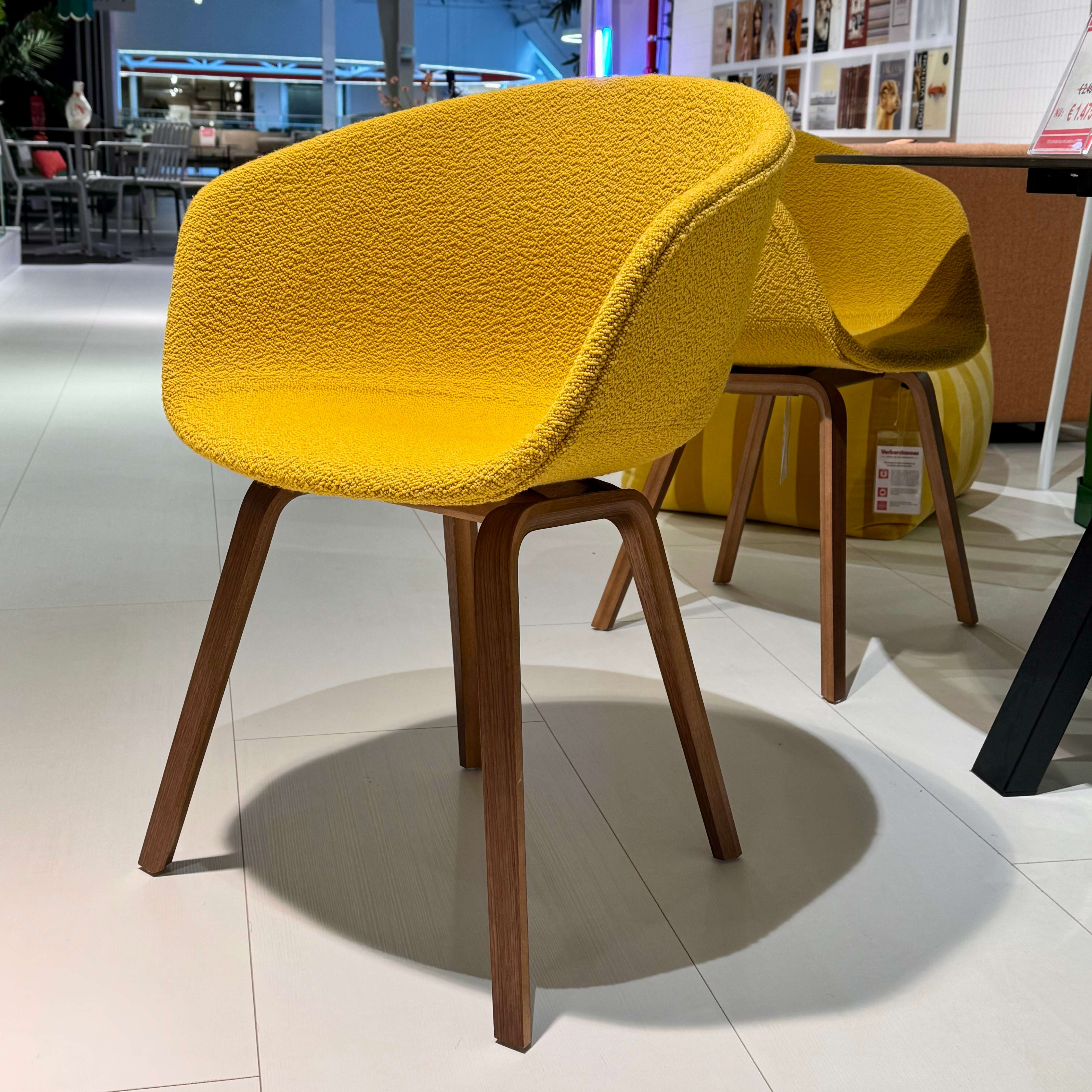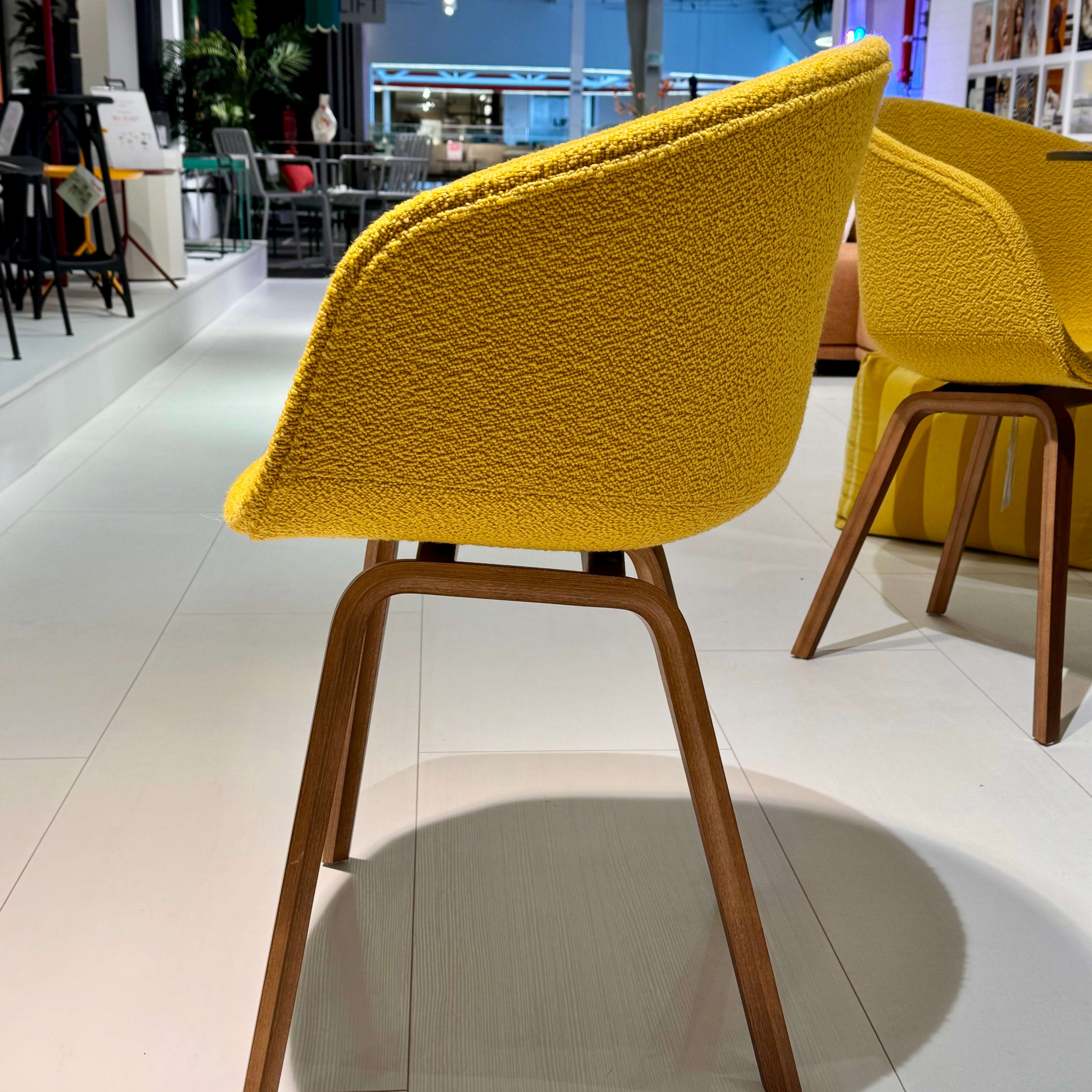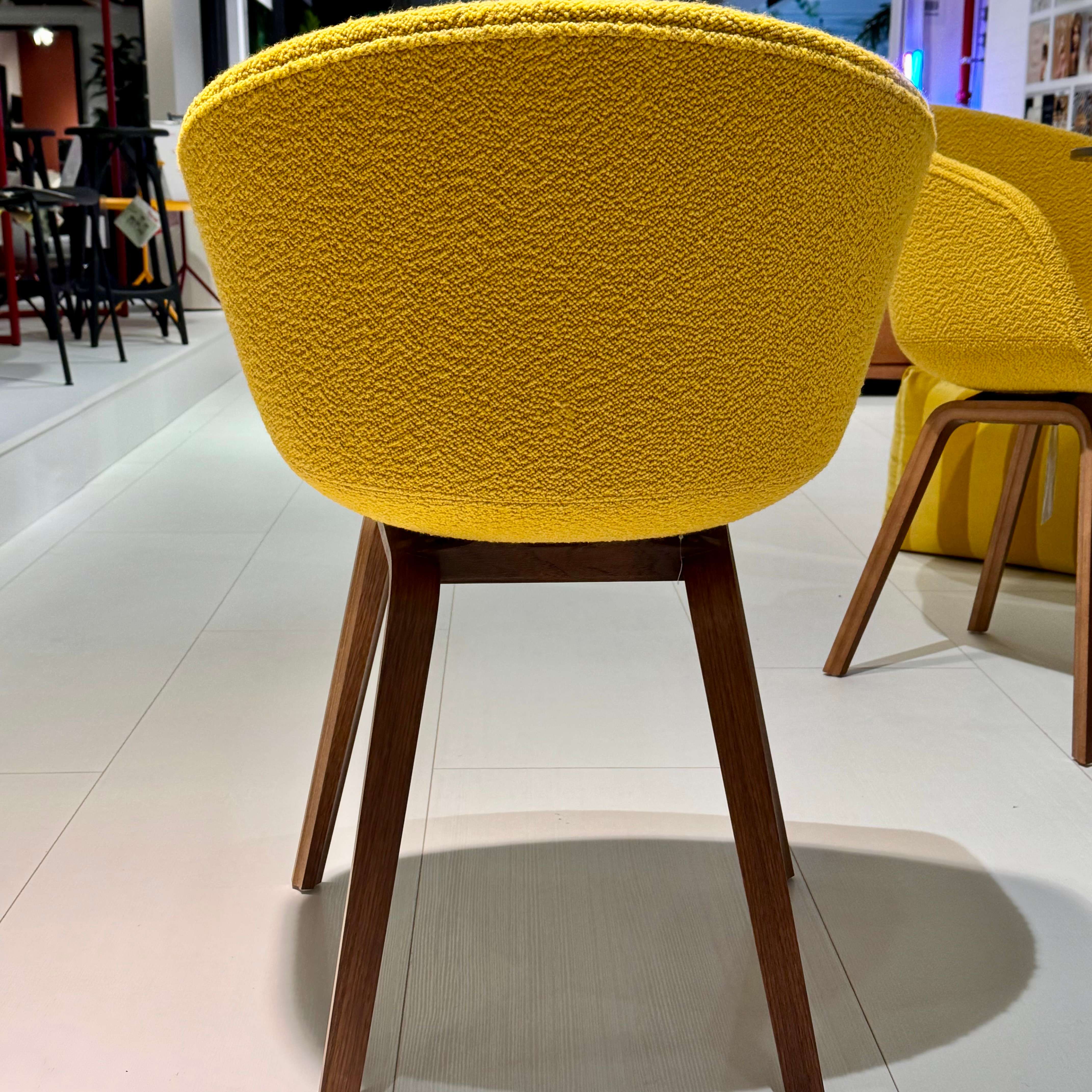 De Hay AAC 234 is een luxueuze designstoel die verfijning en comfort uitstraalt. Volledig gestoffeerd in de hoogwaardige Flamber-stof in de zonnige kleur Mimosa, straalt hij warmte en elegantie uit. De elegante poten in walnoot versterken het luxueuze karakter en geven de stoel een tijdloze uitstraling. Dankzij de ergonomische vorm en royale stoffering biedt deze stoel uitzonderlijk zitcomfort, ideaal voor zowel de eetruimte als stijlvolle vergader- of loungeomgevingen.