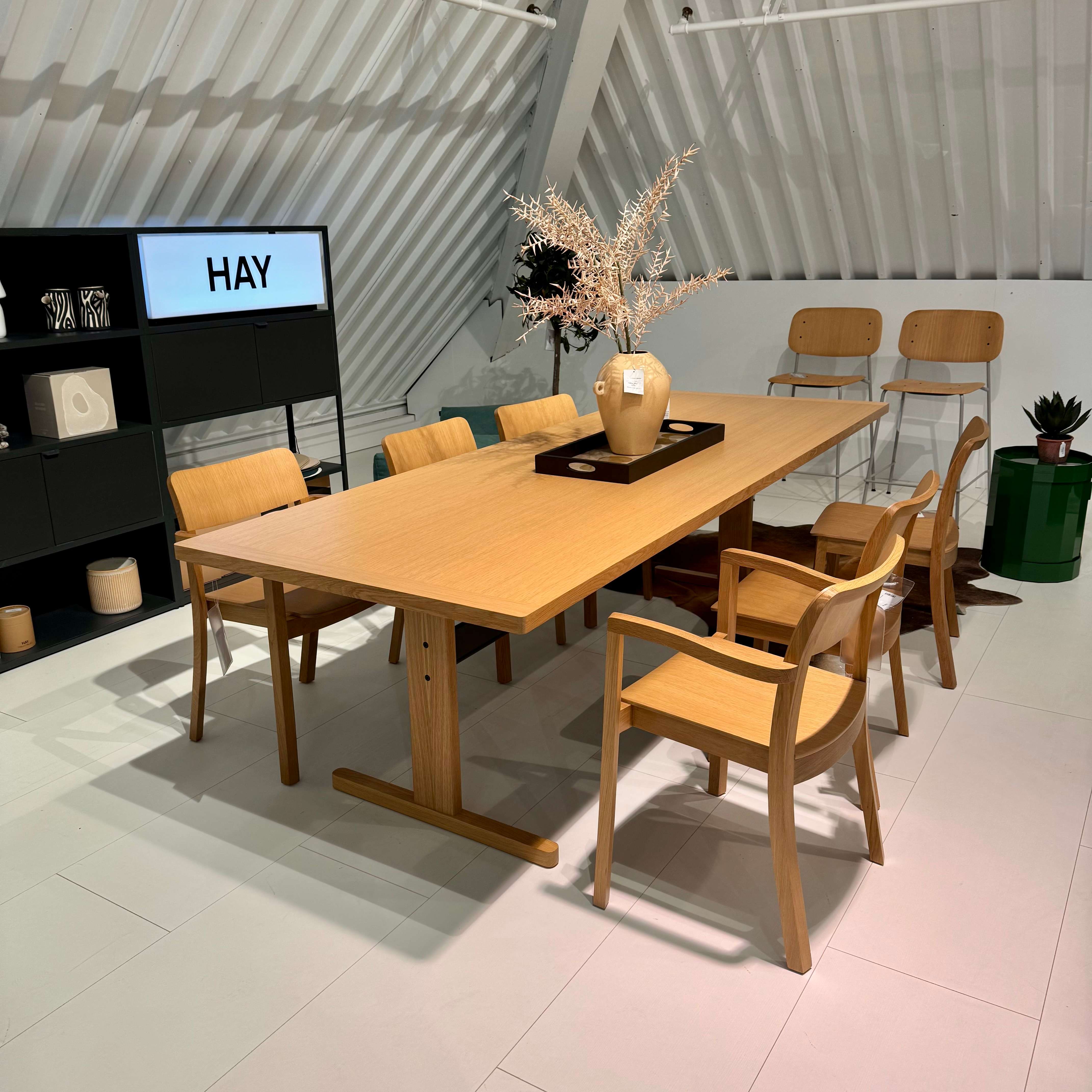 Deze eetkamerset is de perfecte balans tussen functionaliteit en esthetiek. De warme uitstraling van eiken fineer gecombineerd met het doordachte design van HAY maakt dit een duurzame en tijdloze keuze voor iedere woonruimte. bezorgkosten zijn niet inbegrepen