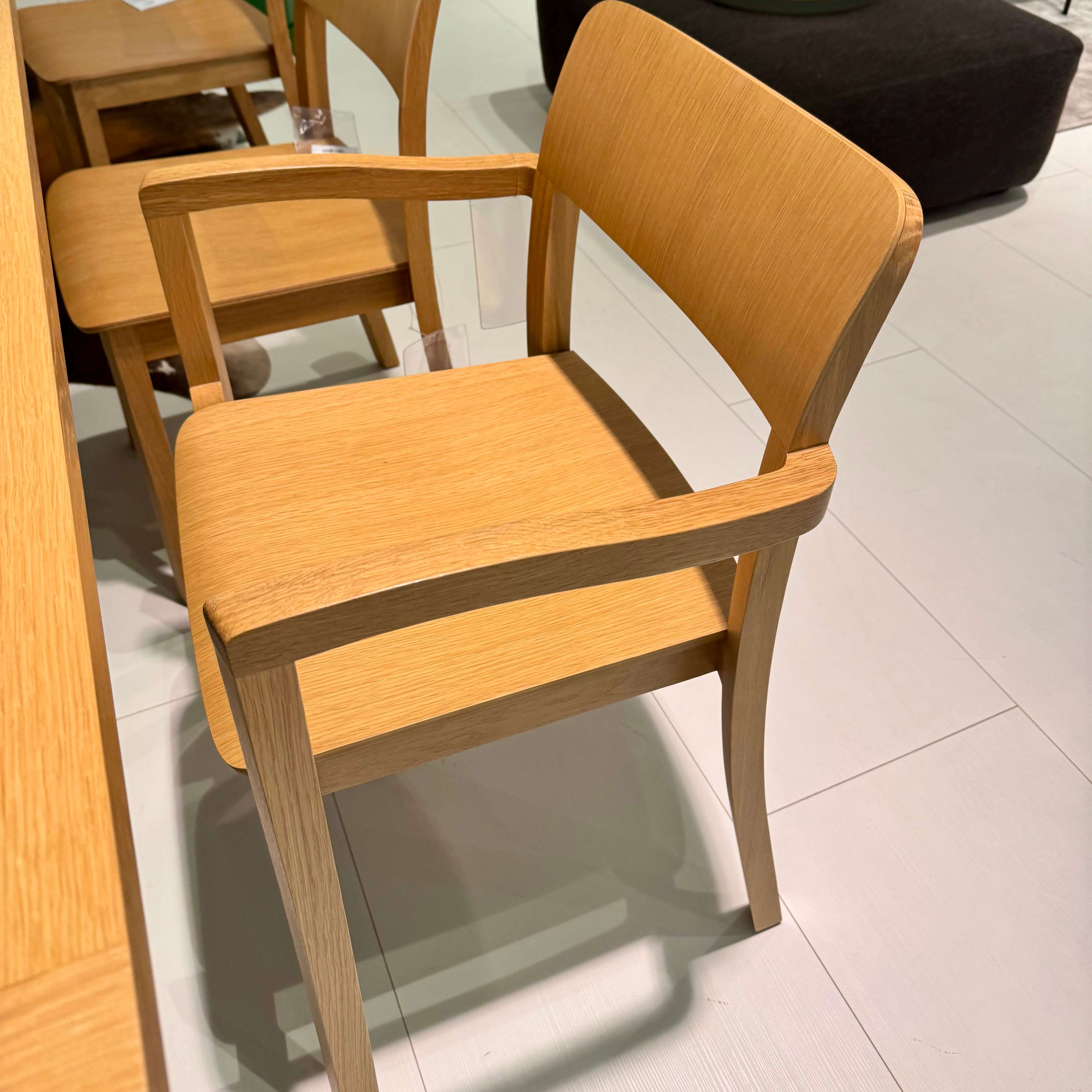 Afgewerkt in hoogwaardig eiken fineer, wat zorgt voor een natuurlijke en tijdloze uitstraling. De ergonomische vorm en subtiel gebogen rugleuning bieden verrassend comfort