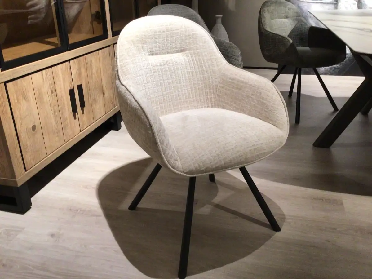 - 4 armstoelen draaibaar Clint - Wave chenille - Olijf - 100% polyester - 2 armstoelen draaibaar Clint - Wave chenille - Crème - 100% polyester