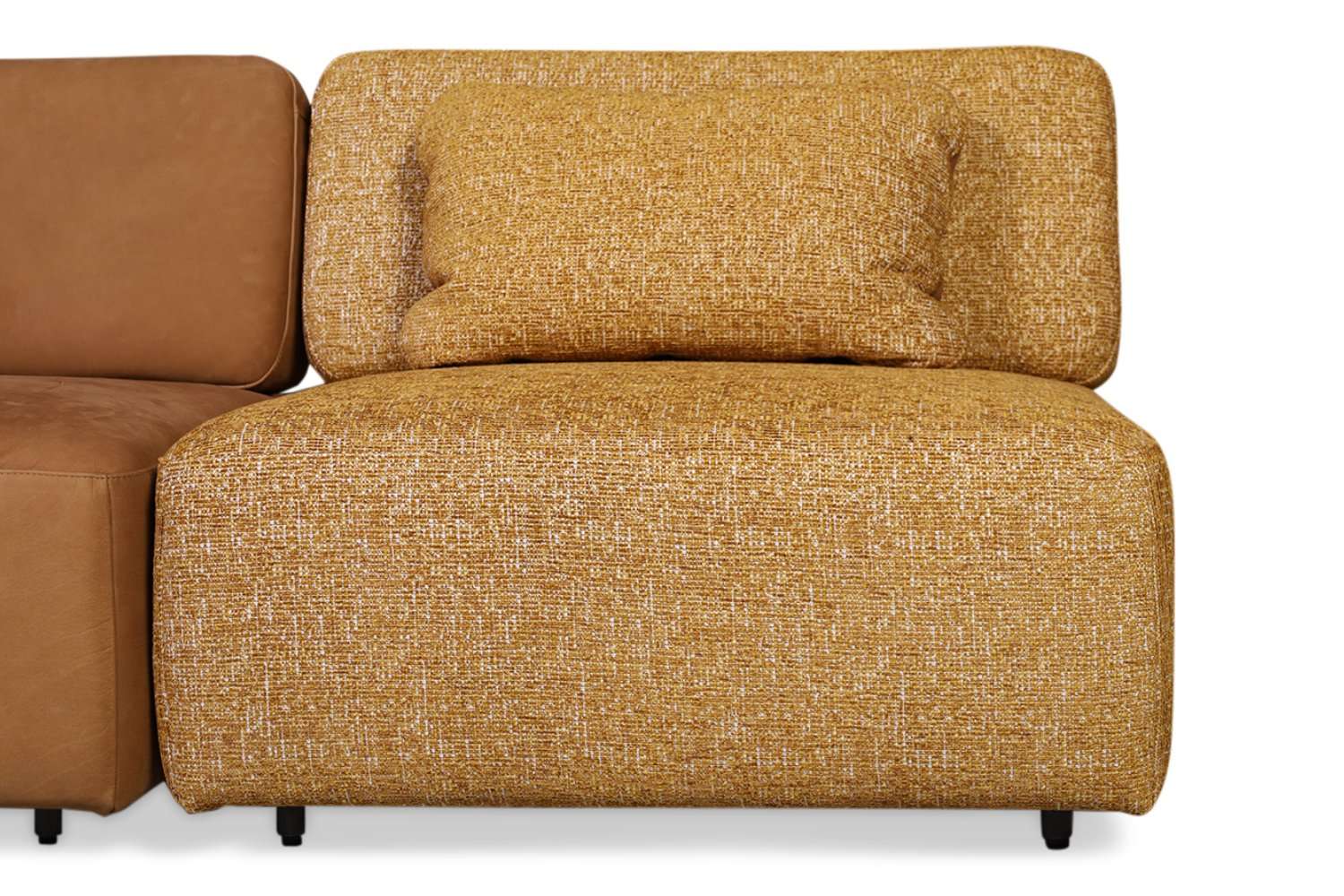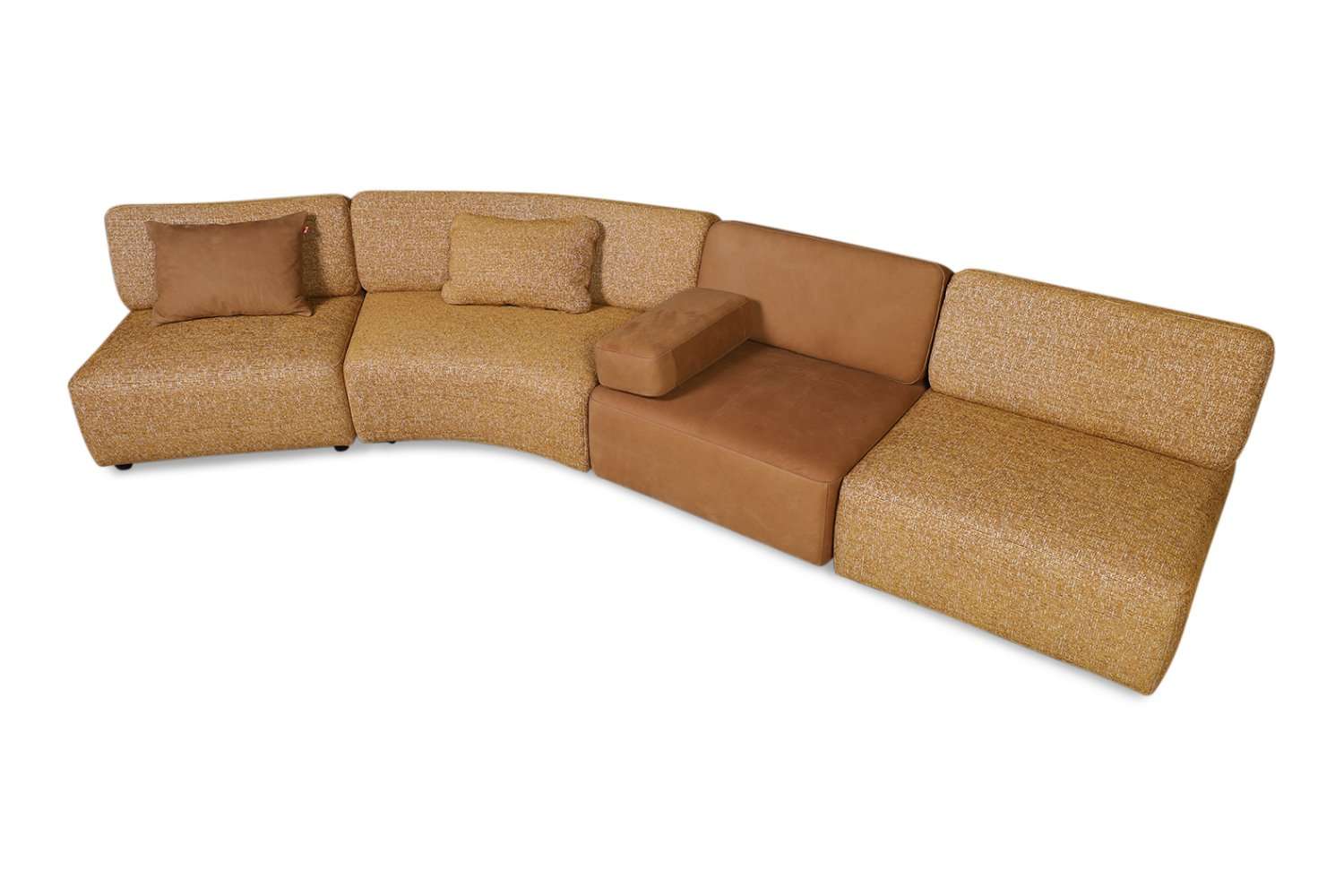 Zitcombinatie Infinity van Jess bestaande uit 2x Element 90 cm met rug en 1x element rond 153 cm in stof Milan, element 90 cm met rug in leder Aurula, 1x armsteun leder Aurula De getoonde afbeeldingen zijn de werkelijke weergave van het product.