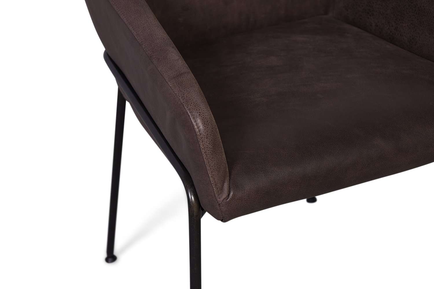 Eetkamerstoel Jolly met armen van Jess / afm. 60x66x87 hg / achterzijde leder Aurula old link, stof Milan old link / frame verkoperd De getoonde afbeeldingen zijn de werkelijke weergave van het product.