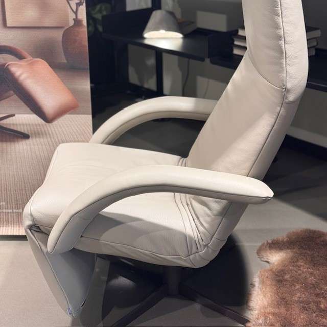 Met zijn medium maat is deze relaxstoel de perfecte keuze voor wie luxe en comfort zoekt in een stijlvol, compact design. Het zachte, natuurlijke leder Lipano in een lichte beige tint geeft een tijdloze, rustige look die gemakkelijk te combineren is met elke interieurstijl.