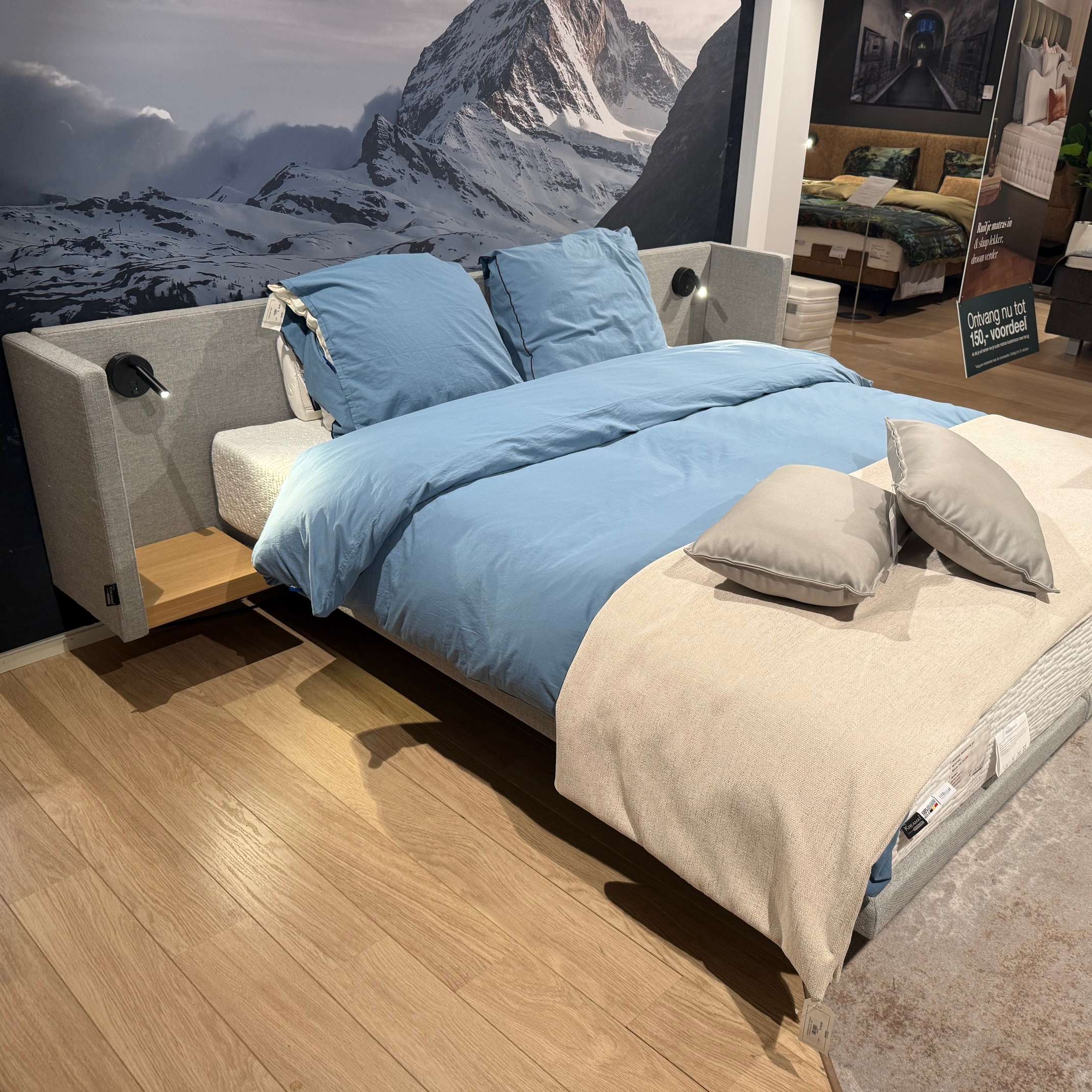 Boxspring Kreamat Pan 180*210cm vlak, uitgevoerd in micro pocketvering 8cm dik met drukverlagende schouderzone.