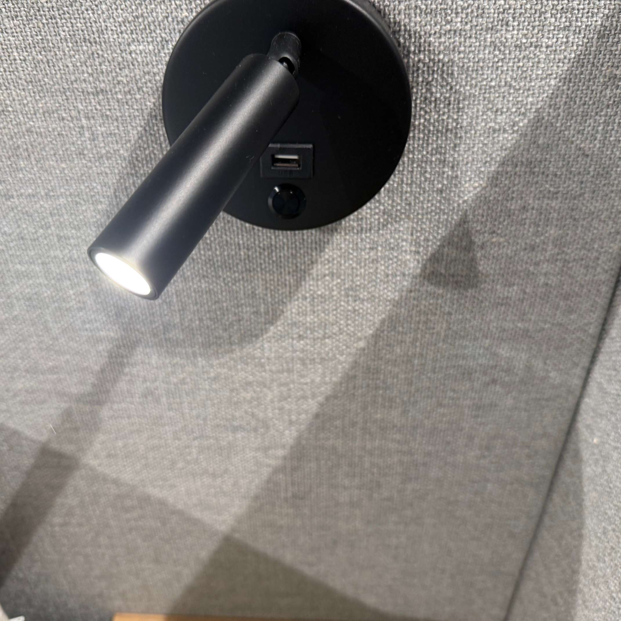 Hoofdbord Pan met zijpanelen voor geluidsdemping, plankjes en LED lampjes met usb-aansluiting