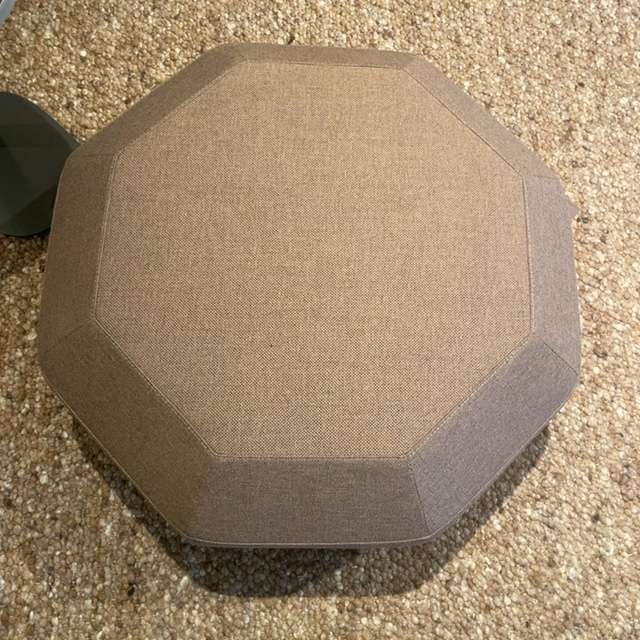 Fijne poef van Leolux. Poef is te gebruiken als extra zitplek maar ook als bijzettafel. De poef is uitgevoerd in stof Re-wool 378 met stiksel ton-sur-ton.