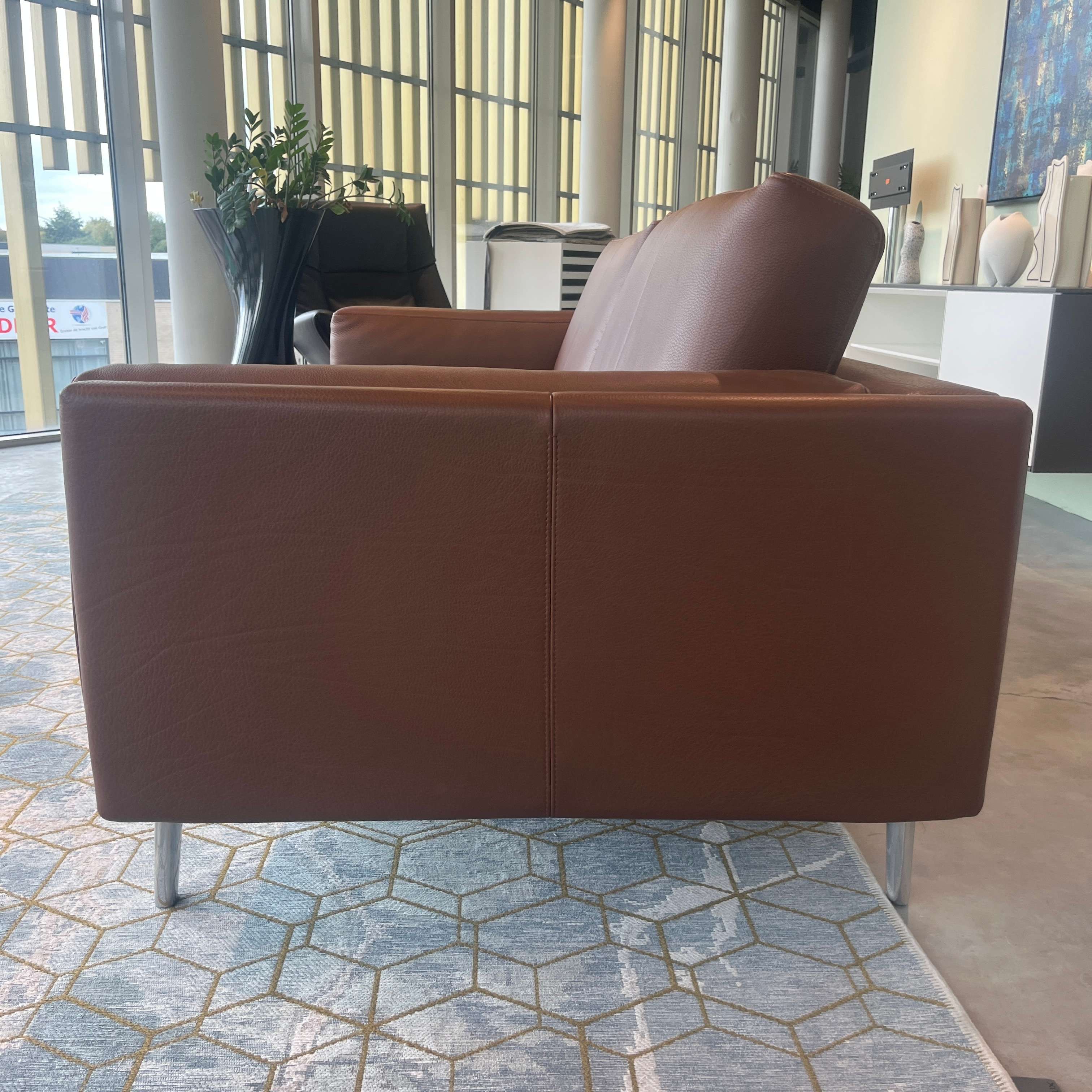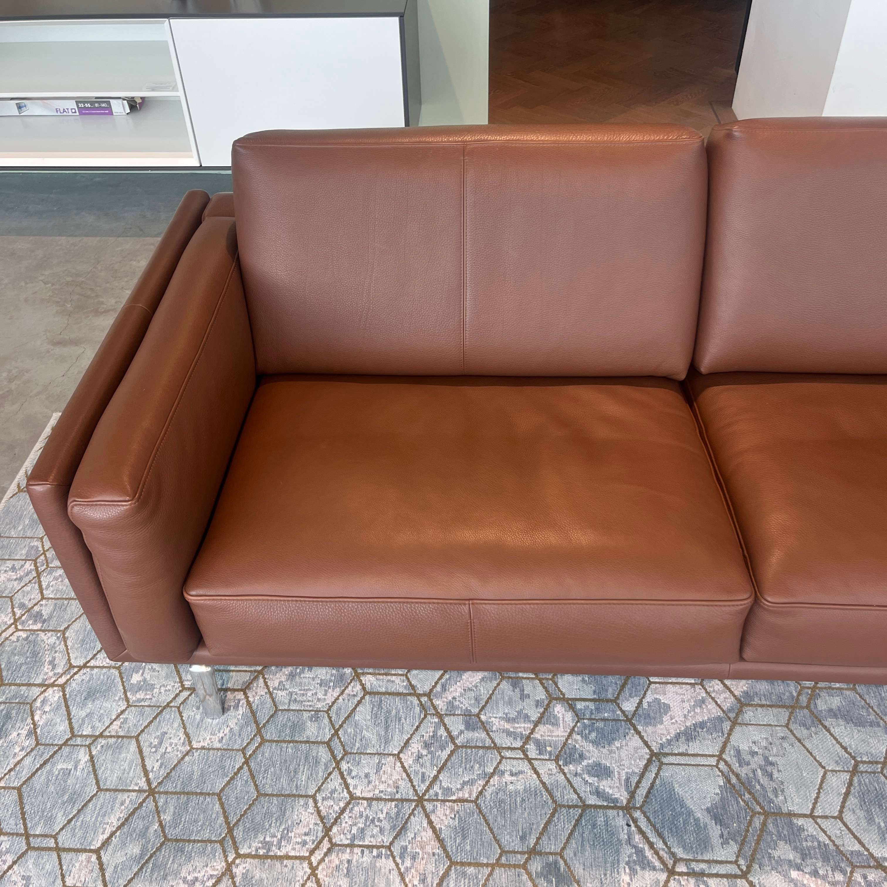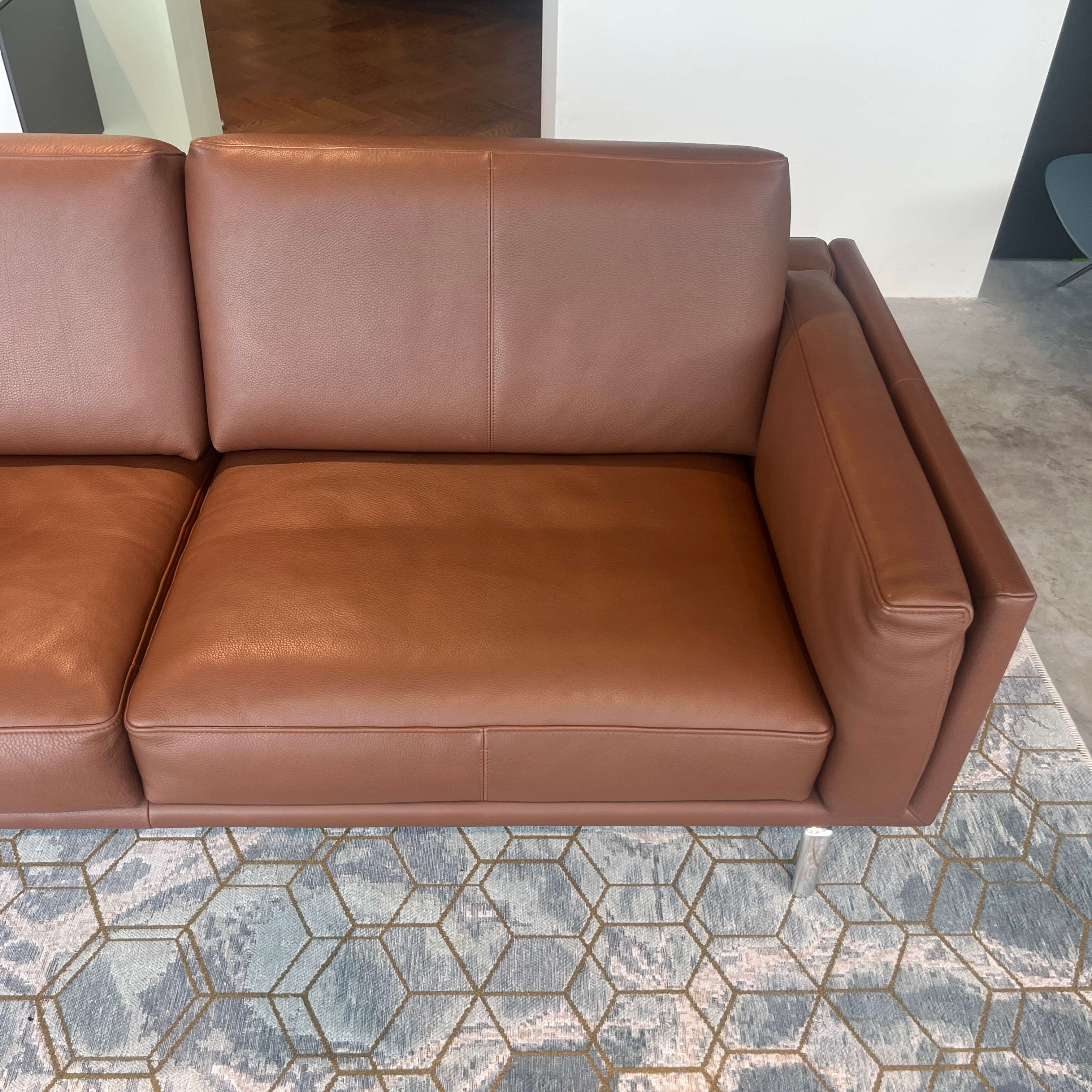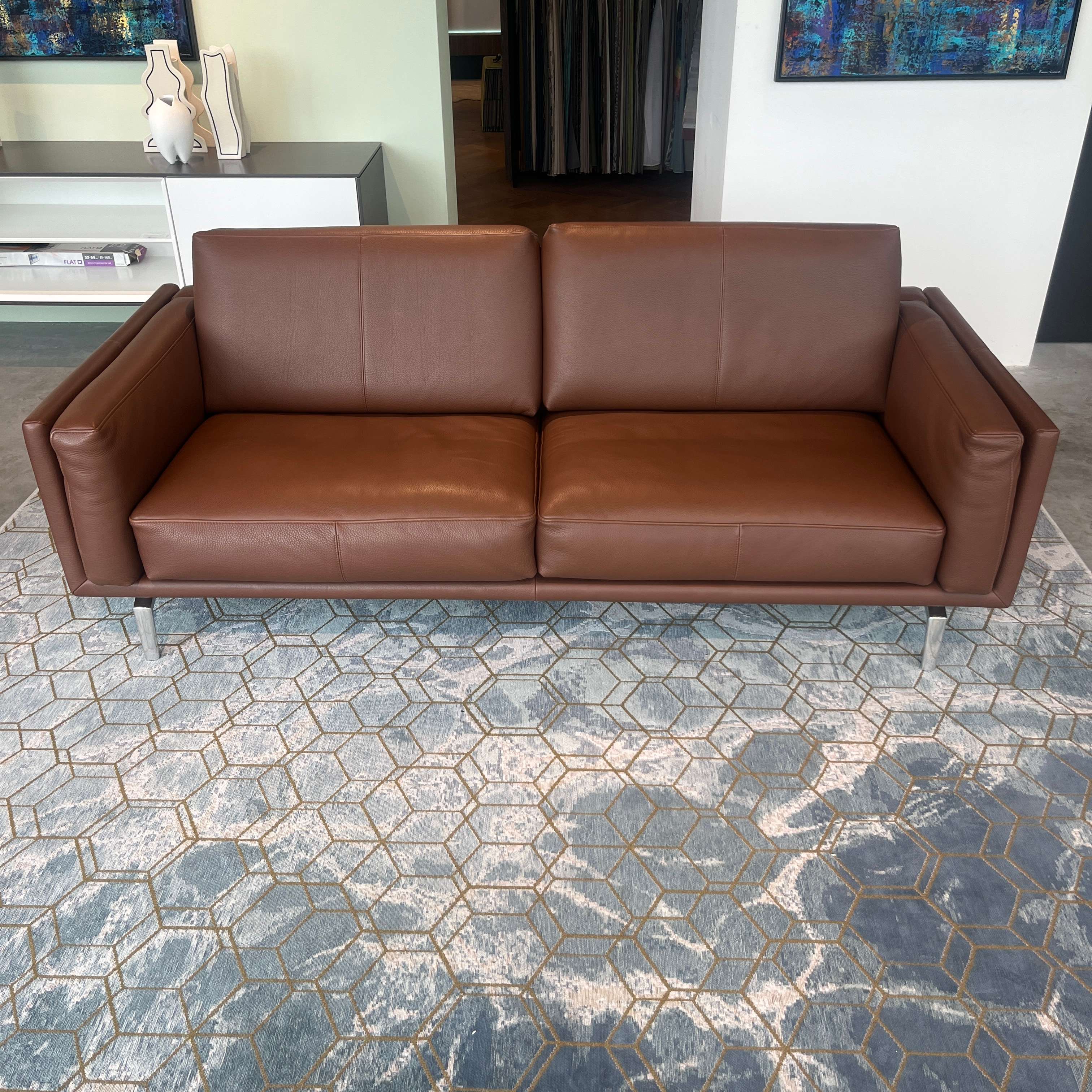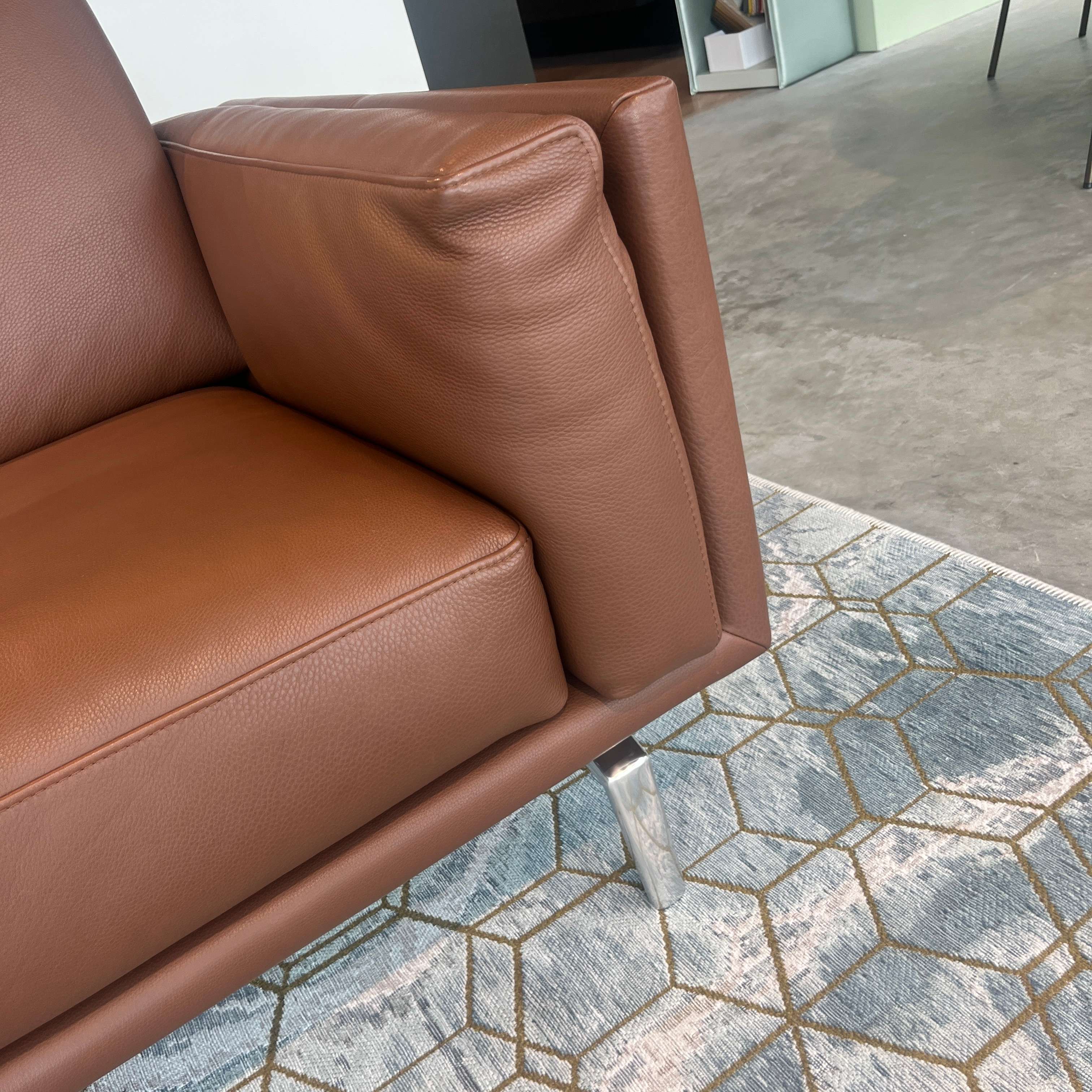 De Bellice bank van Beck Design (2017) is een verfijnd staaltje eigentijds vakmanschap dat elegantie en comfort op harmonieuze wijze samenbrengt. De bank onderscheidt zich door zijn subtiele vormgeving, perfect uitgebalanceerde proporties en ambachtelijke details, zoals de met de hand afgeknoopte siernaden die de contouren prachtig accentueren. De bank is uitgevoerd in leder Negev 226 Duna, wat zorgt voor een rustige, natuurlijke uitstraling, terwijl het gepolijste aluminium Fino-onderstel het ontwerp een lichte, moderne touch geeft. De smalle, hoge armleuningen versterken het verfijnde silhouet, en de zorgvuldig vormgegeven kussens bieden een uitnodigend zitcomfort. Met zijn pure lijnen, hoogwaardige materialen en ingetogen luxe vormt de Bellice een tijdloze blikvanger die elke ruimte verrijkt.