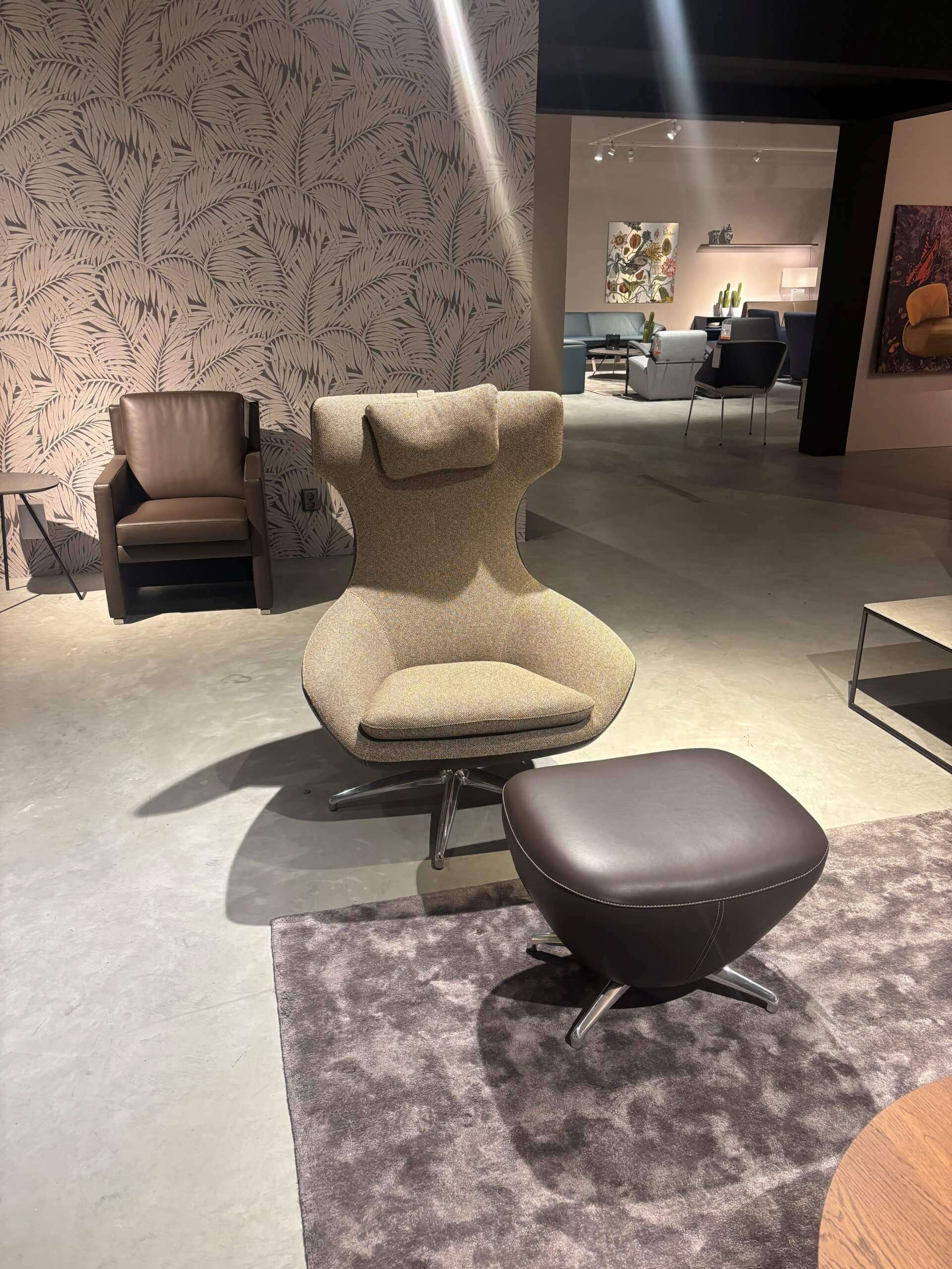 De Caruzzo Fauteuil en poef van Leolux (type 662-100) is een ontwerp van Frans Schrofer dat comfort, esthetiek en vakmanschap combineert. De fauteuil geeft een gevoel van geborgenheid dankzij de hoge rug, wat ondersteuning biedt voor rug en hoofd en zorgt voor een intiemere zitervaring. Hij is draaibaar, wat je de vrijheid geeft om jezelf te positioneren in de ruimte zoals je wil.