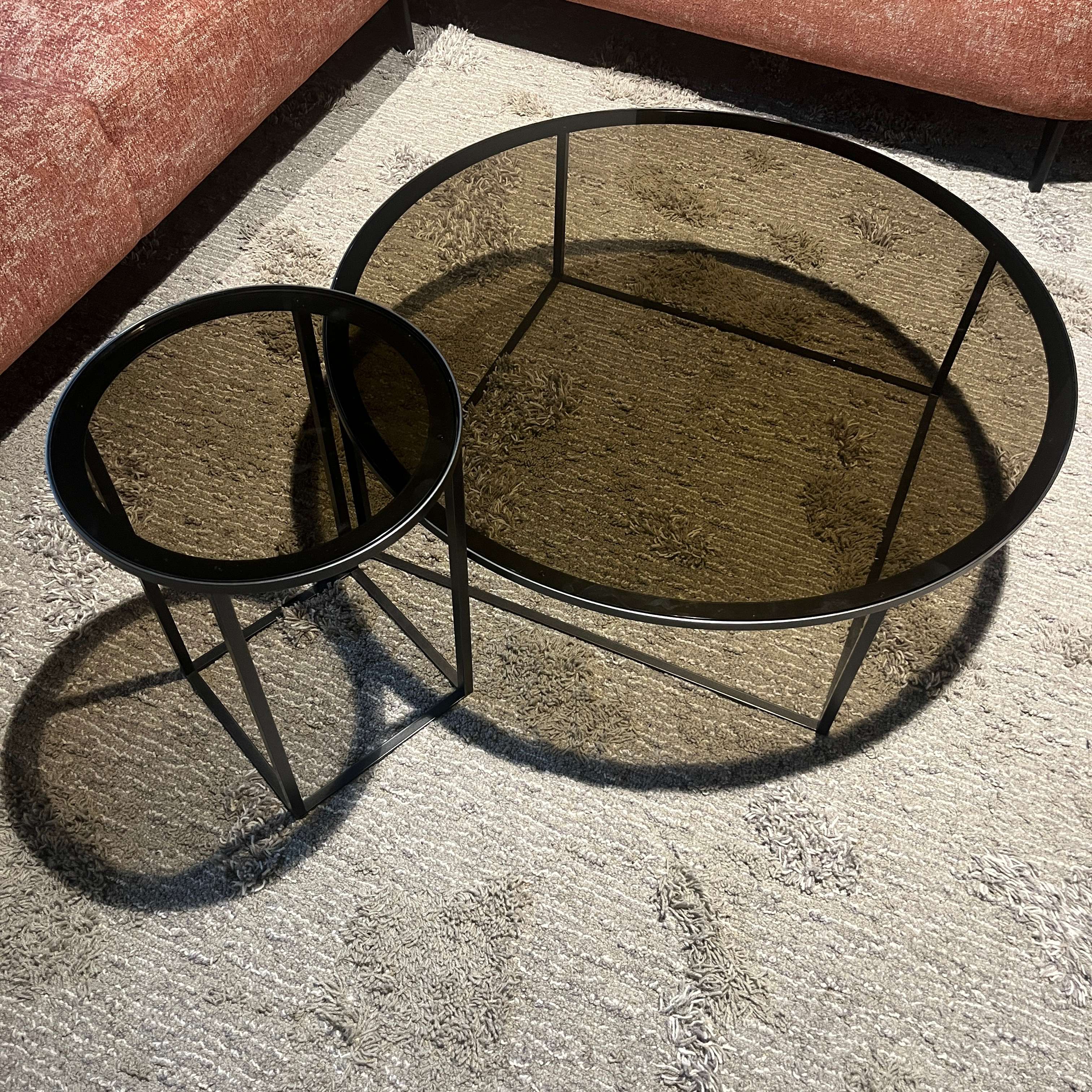 De Prismo salontafelset, ontworpen door Edward van Vliet in 2017, bestaat uit een elegante salontafel en een verfijnde bijzettafel die samen een harmonieus geheel vormen. Het ontwerp speelt met de spanning tussen rechte lijnen en ronde vormen, waardoor subtiele optische illusies ontstaan die het geheel een speels en eigentijds karakter geven. Beide tafels hebben een slank metalen frame in Epoxy E2200 Nuit Silk en een stijlvol glazen blad, wat zorgt voor een perfecte balans tussen lichtheid en stevigheid. De Prismo salontafel (Ø100 cm x H32 cm, uitvoering 641-910) en de Prismo bijzettafel (Ø40 cm x H52 cm, uitvoering 641-914) zijn voorzien van vilt en passen met hun tijdloze uitstraling moeiteloos in interieurs die met zorg, aandacht en liefde voor design zijn ingericht.