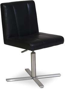 Product: Linteloo Pam-Am eetkamerstoel >Collectie:Verden Kenmerken: Draaibaar, zonder armleggers Gebruik: Eetkamerstoel, bureaustoel Kleur: Zwart Materiaal: Leder Voet: RVS Verstelbaar: In hoogte Design: Linteloo Verden collectie