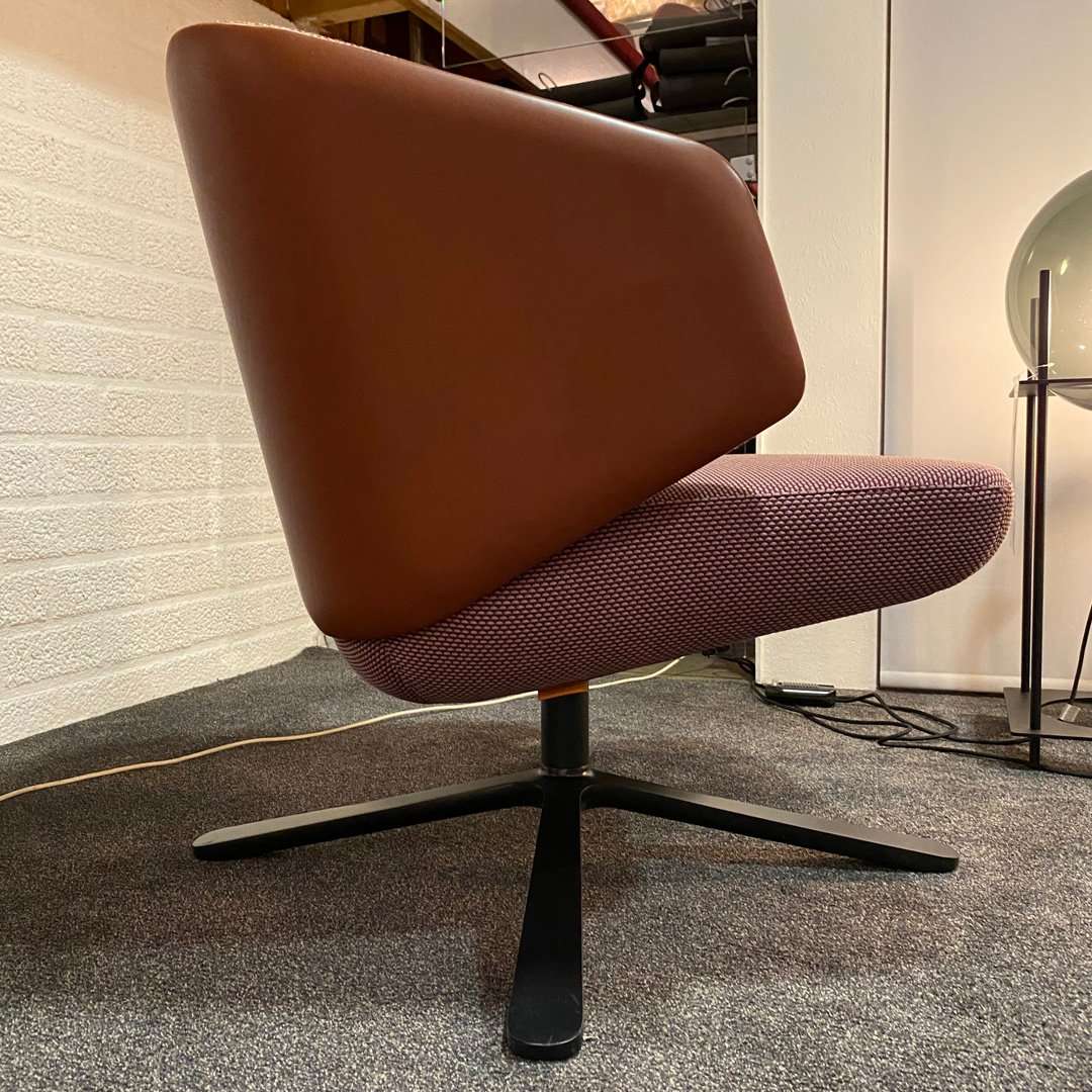 Ervaar het ultieme comfort met de Montis BMU fauteuil. Deze fauteuil, met zijn bekleding van Febrik Drop stof en lederen buitenrug in Rancho Castanya, biedt een ongeëvenaarde zitervaring.