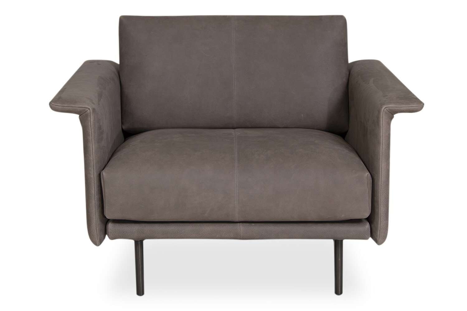 De Montis Otis loveseat is bekleed in leder Trinidad Taupe en staat op poten in titanium