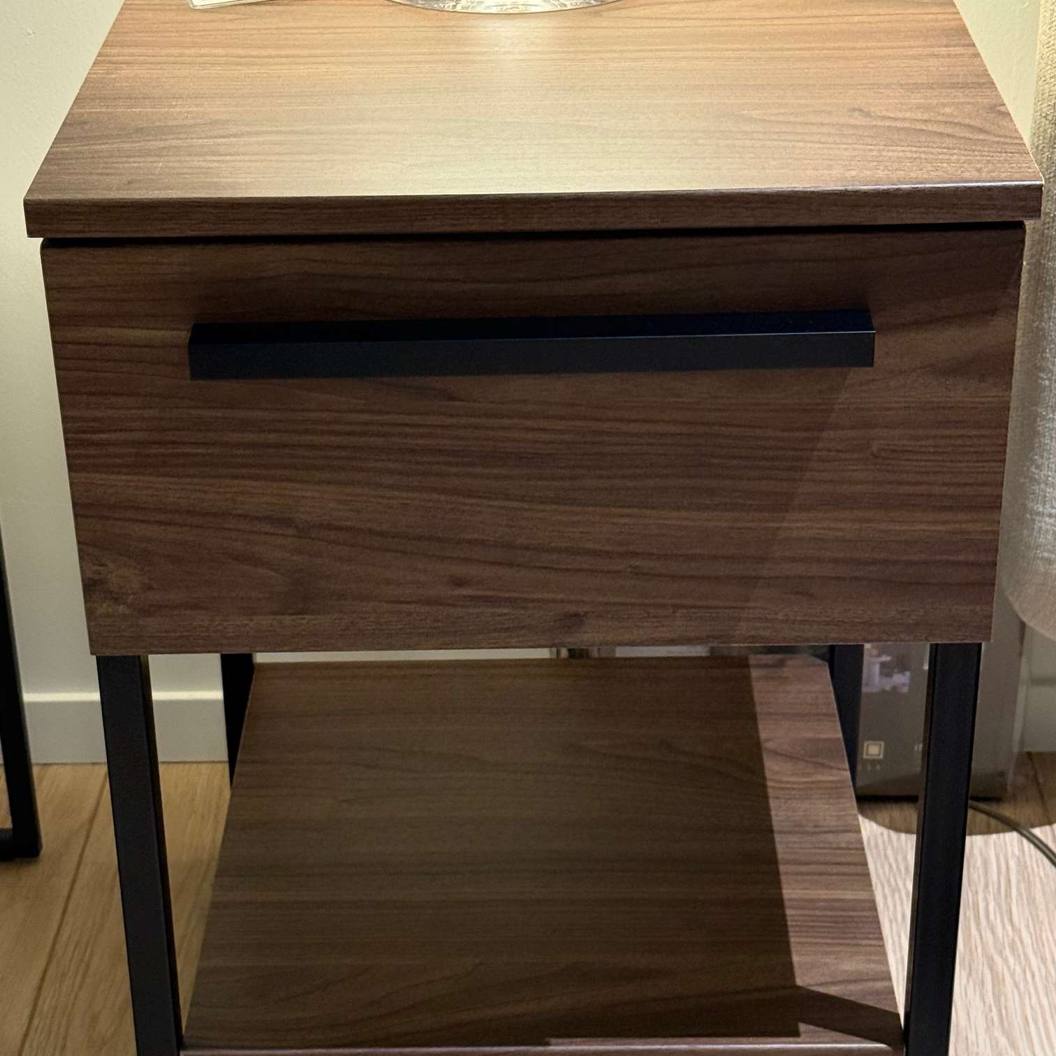 set nachtkastjes walnoot met 1 lade, legplank en zwart stalen frame