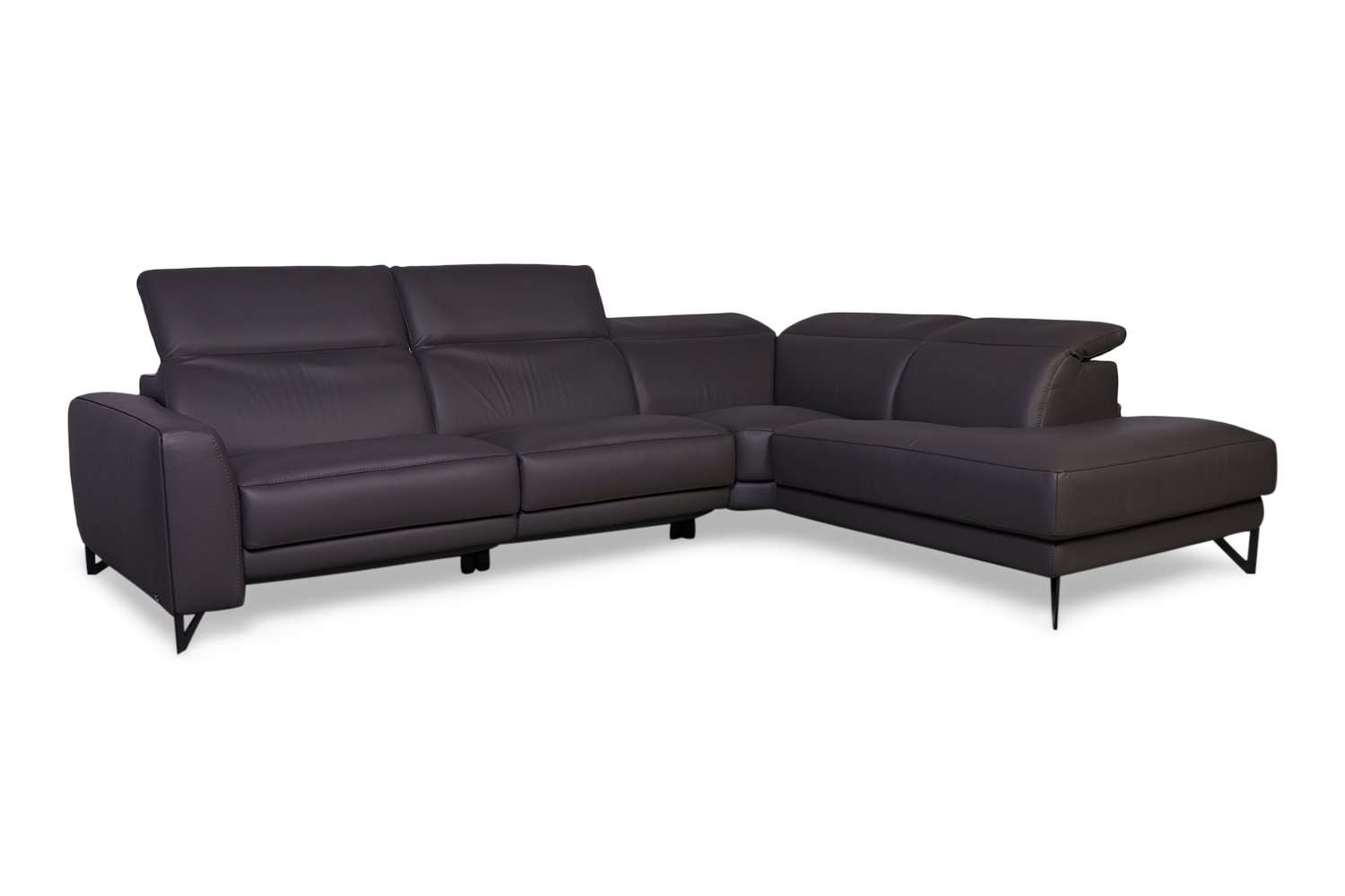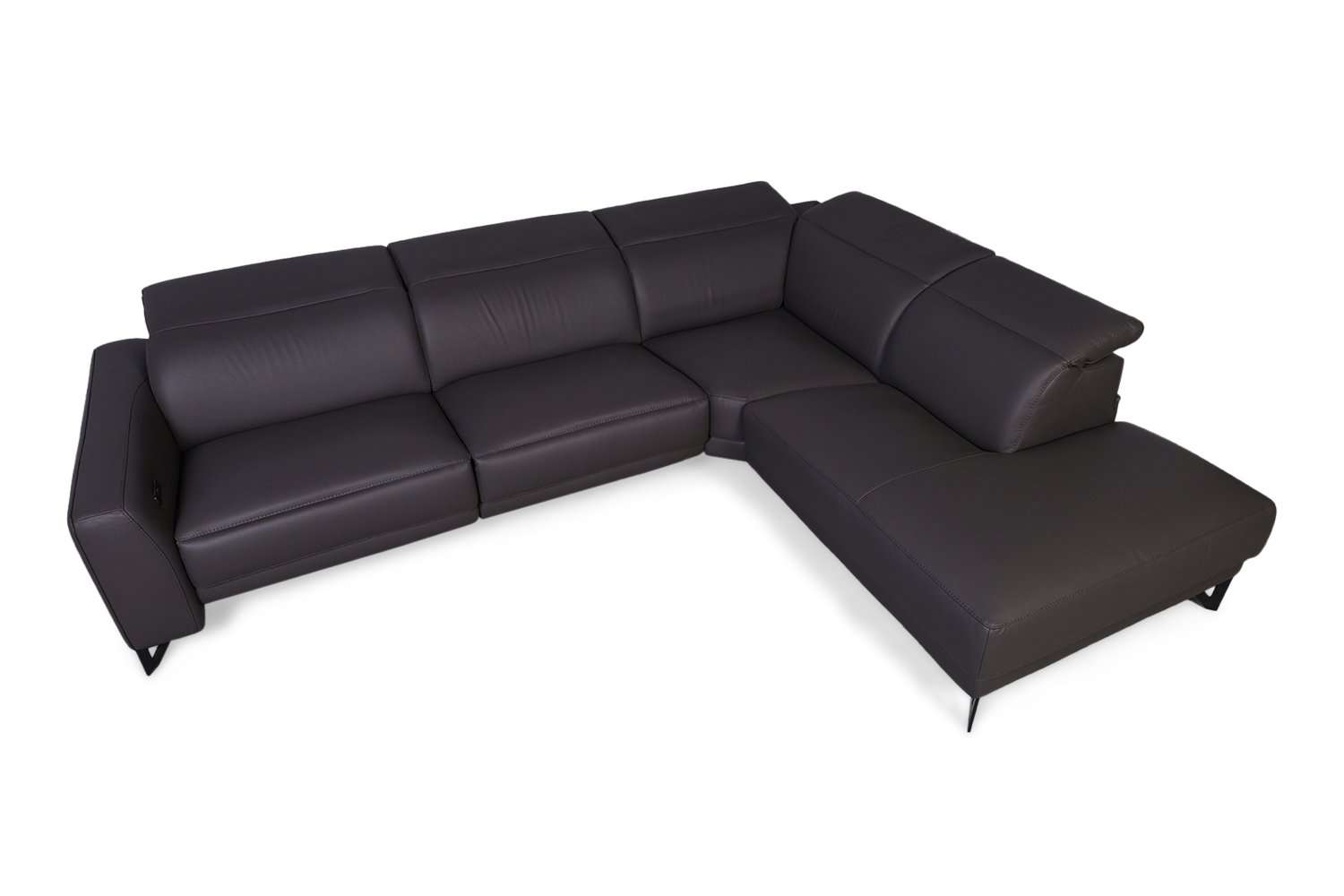 Hoekank Lagon met elektrische hoofdsteun van Olta / leder grijs/bruin cat E kleur 862, bies cat E kleur 854 De getoonde afbeeldingen zijn de werkelijke weergave van het product.