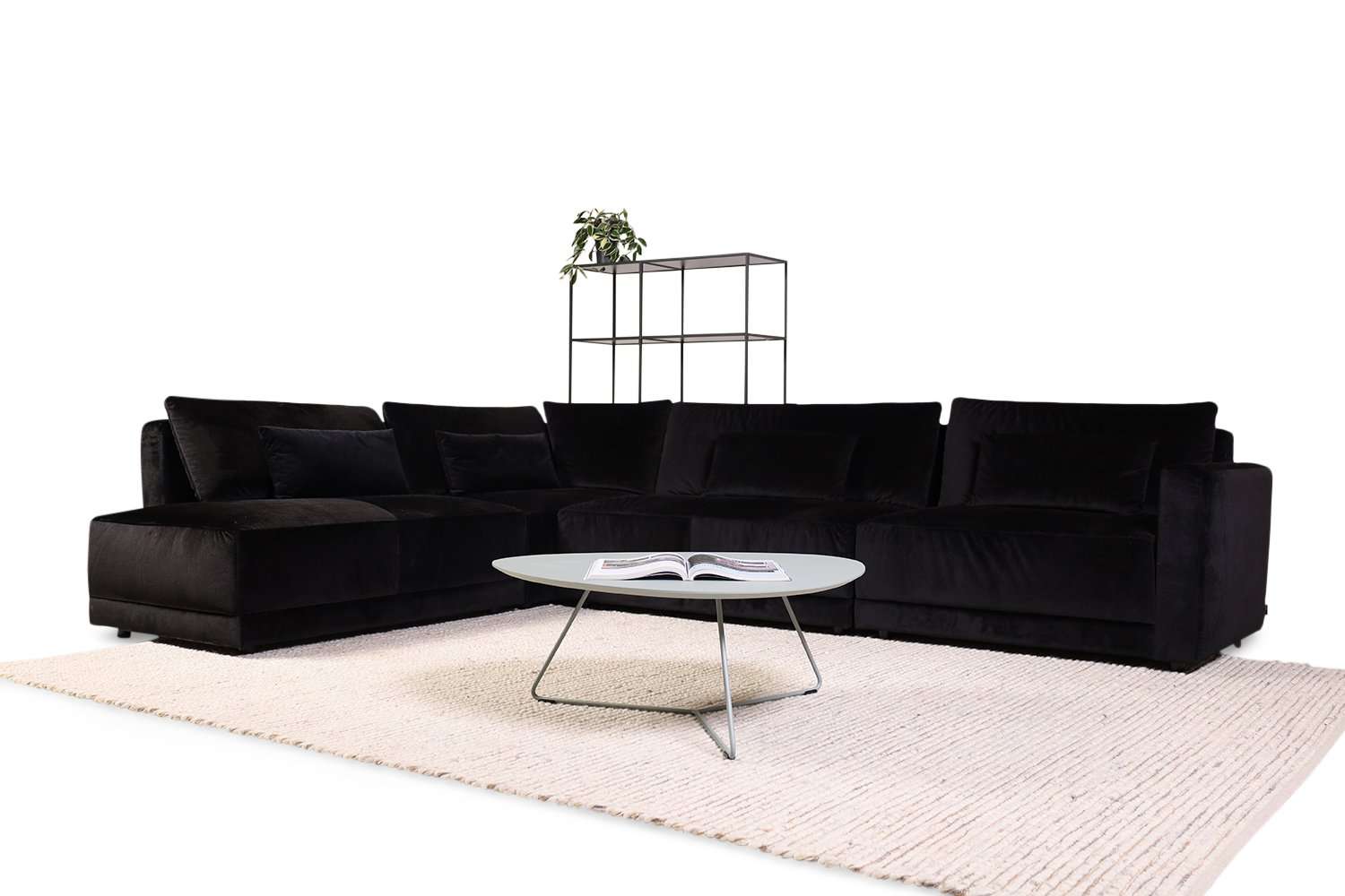 De Pommeline hoekbank bestaat uit een 2-zits terminal links en een 1,5 zits hoek links, aangevuld met een 2-zits zonder arm en een 1,5 zits arm rechts. De harmonieuze afmetingen zorgen voor een uitnodigende zitervaring.