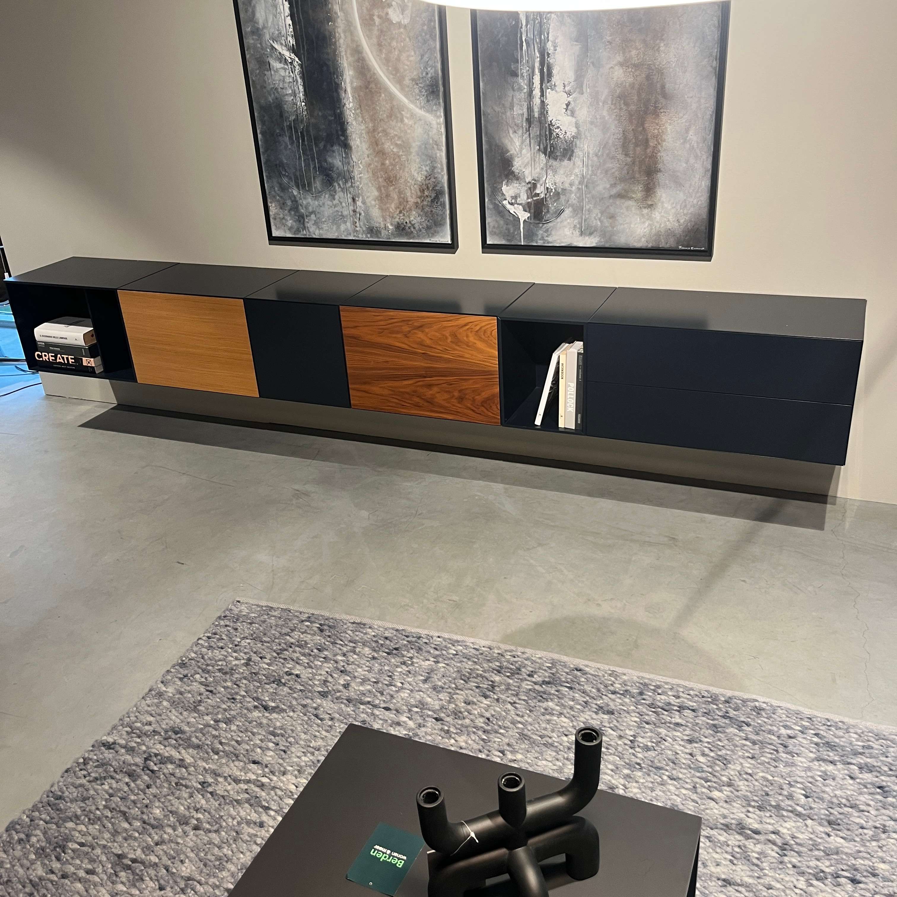 De romp heeft kleur 674 storm. De deurtjes zijn verschillend onder andere 475 naturel walnoot, 470 naturel eiken en 2 open vakken.