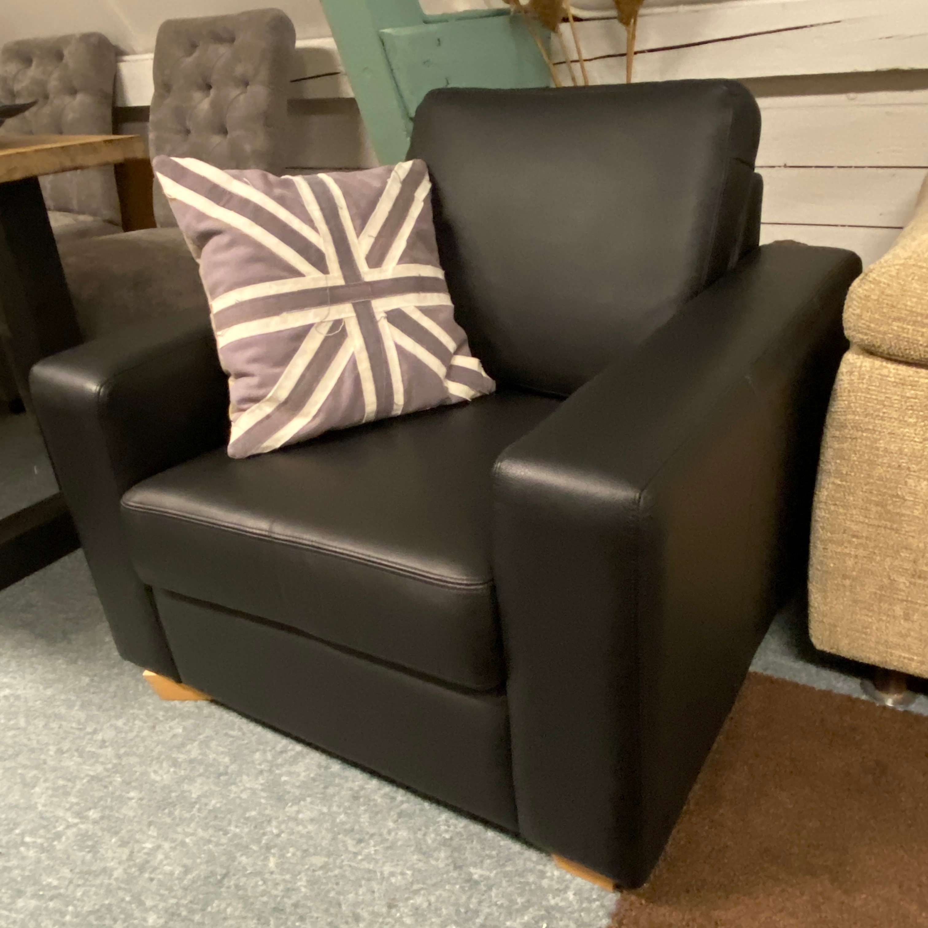 Stoere degelijke chill fauteul die vreselijk lekker zit! Zwart leer, zware kwaliteit.