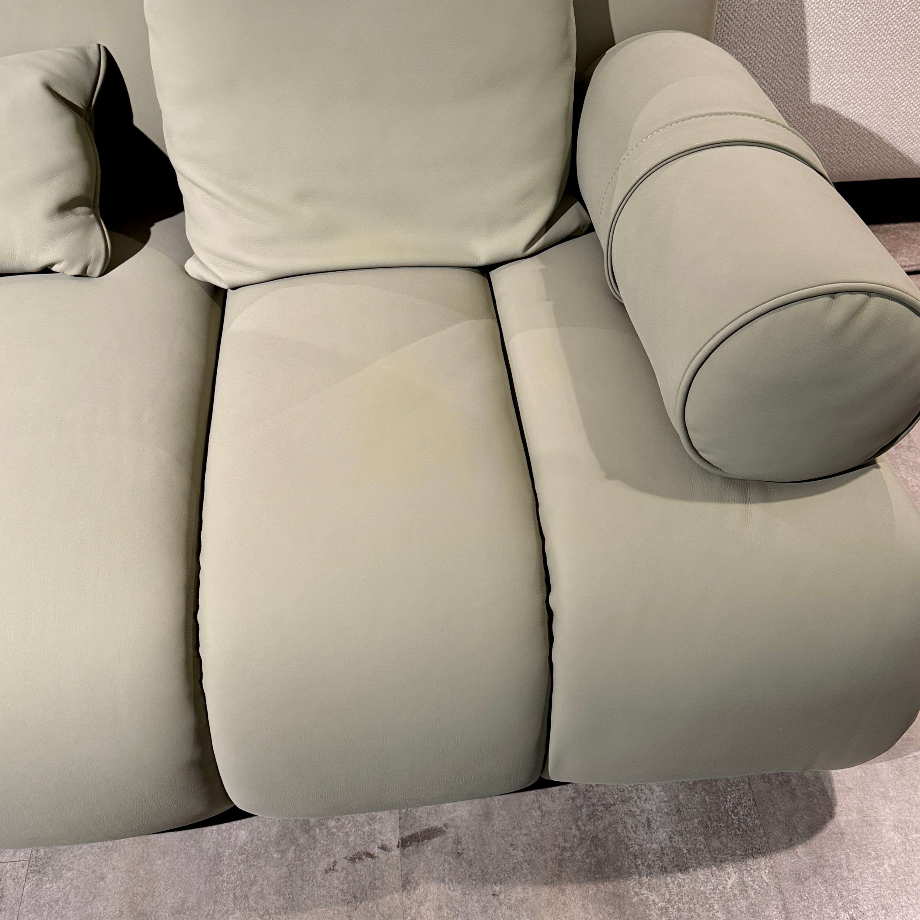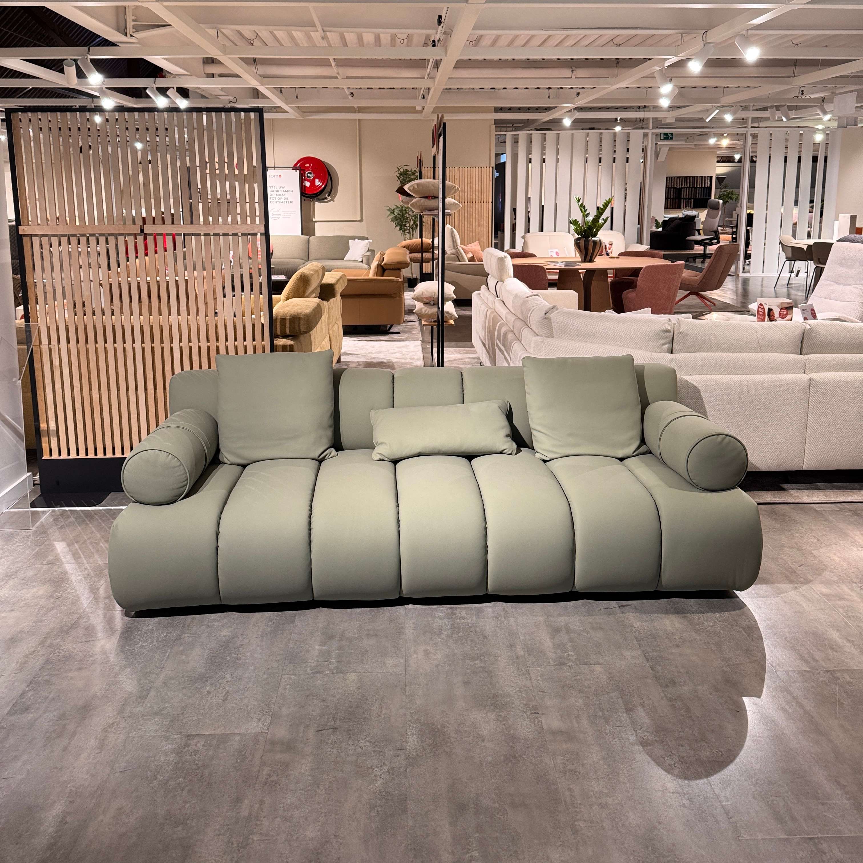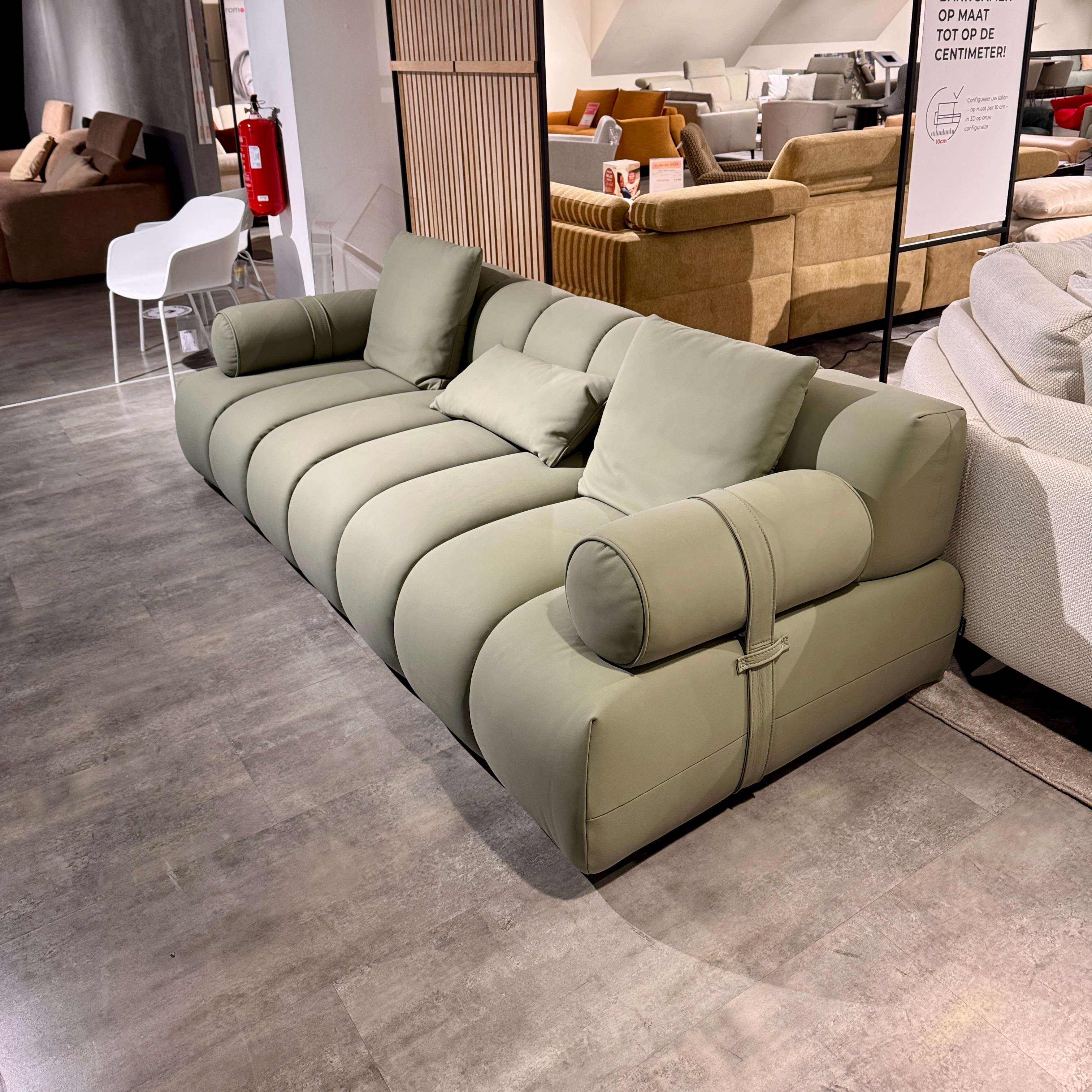Deze exclusieve 3-zit uit onze eigen designcollectie is een statement piece voor wie houdt van eigenzinnige vormgeving en zachte luxe. Uitgevoerd in een uitzonderlijk zacht, mat leder combineert deze zetel comfort met karakter. Het leder is bovendien onderhoudsvriendelijk, wat deze zetel niet alleen mooi maakt, maar ook praktisch in gebruik.