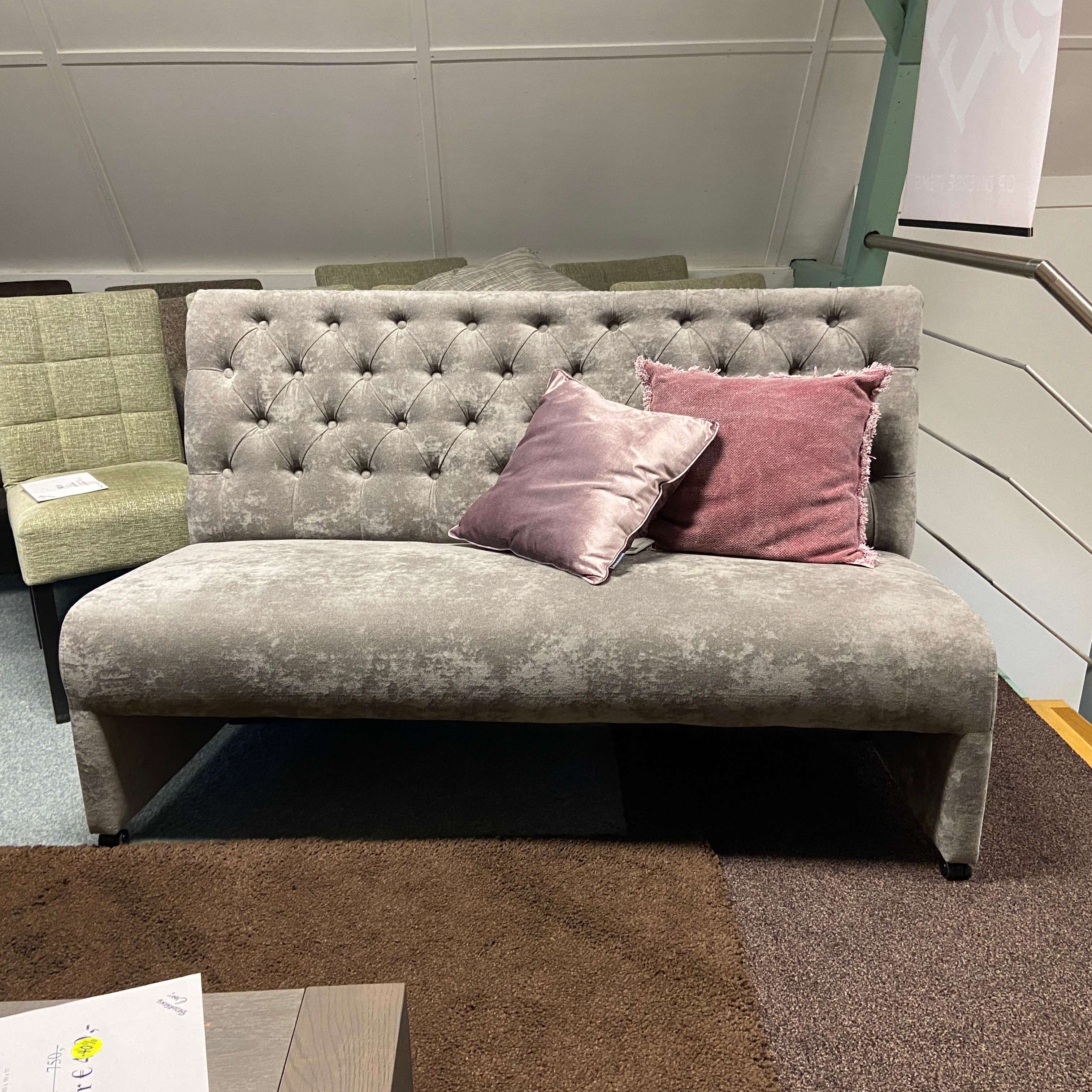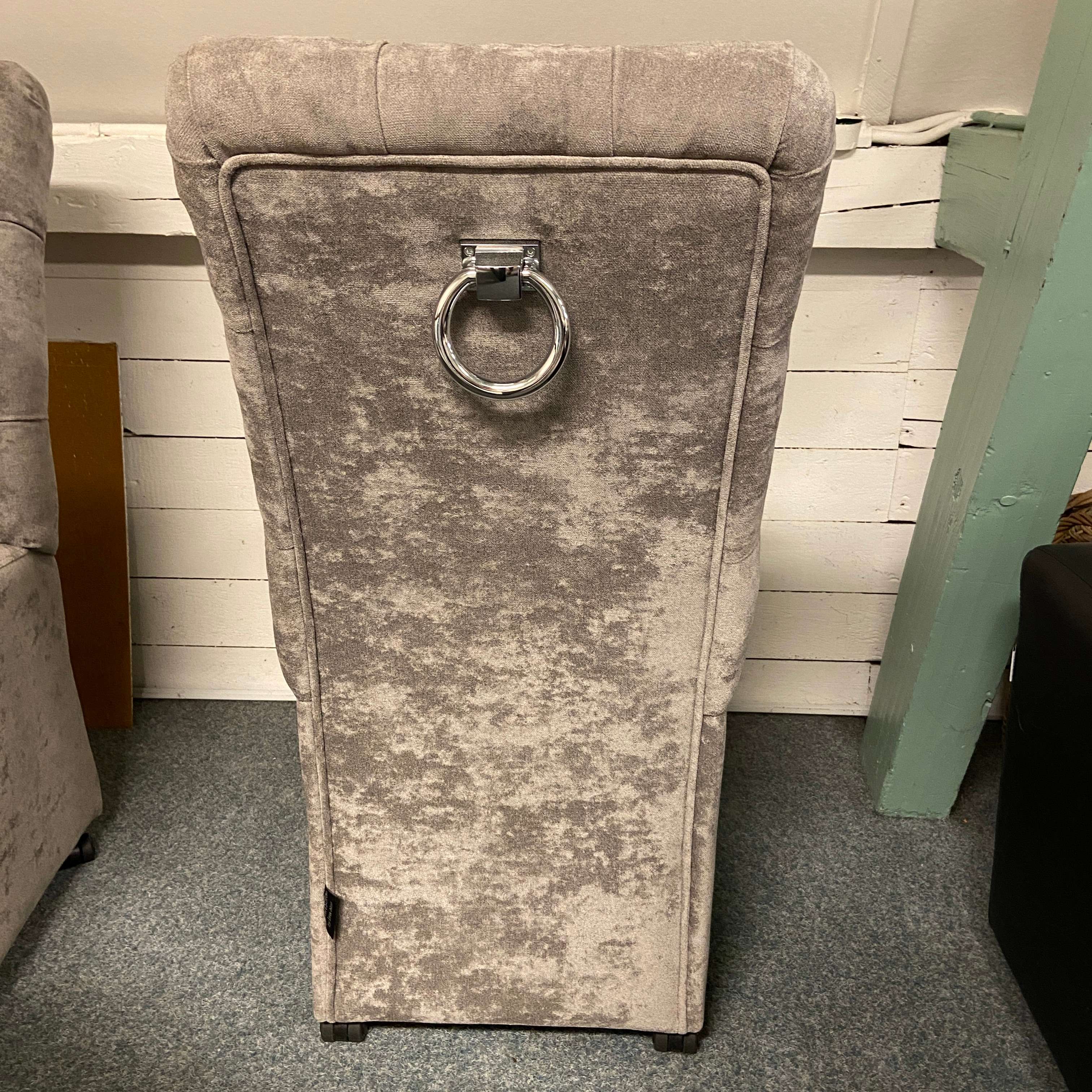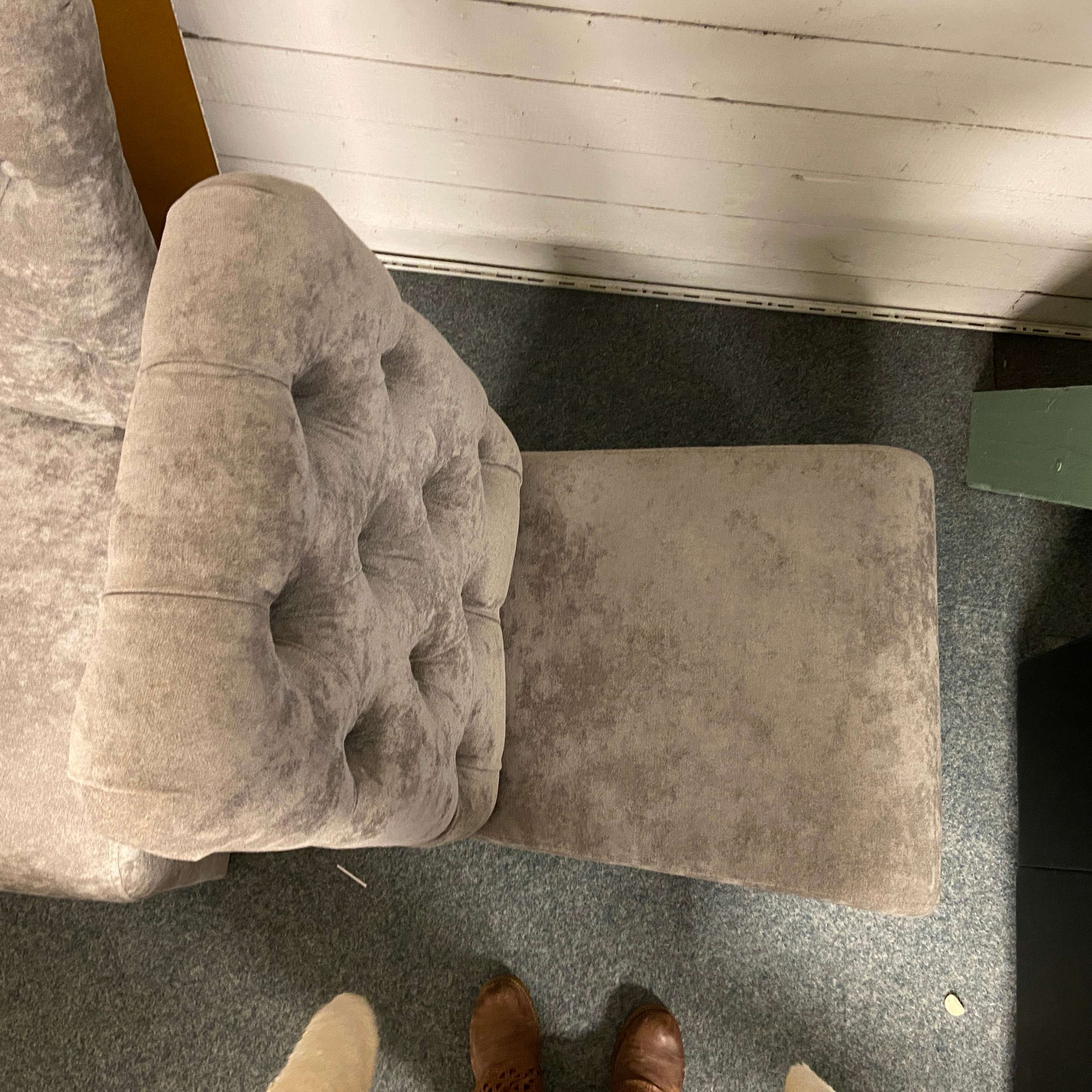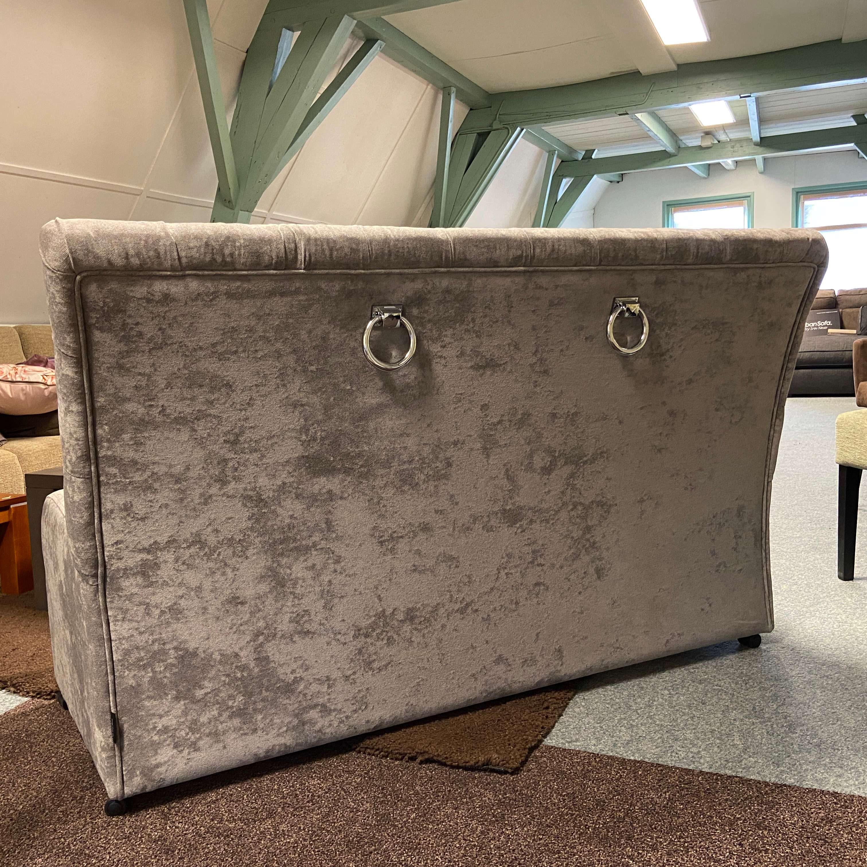 Stof zeer aaibaar. Fluweel. Castello grey. Achterkant bevat een zilveren metale ring.