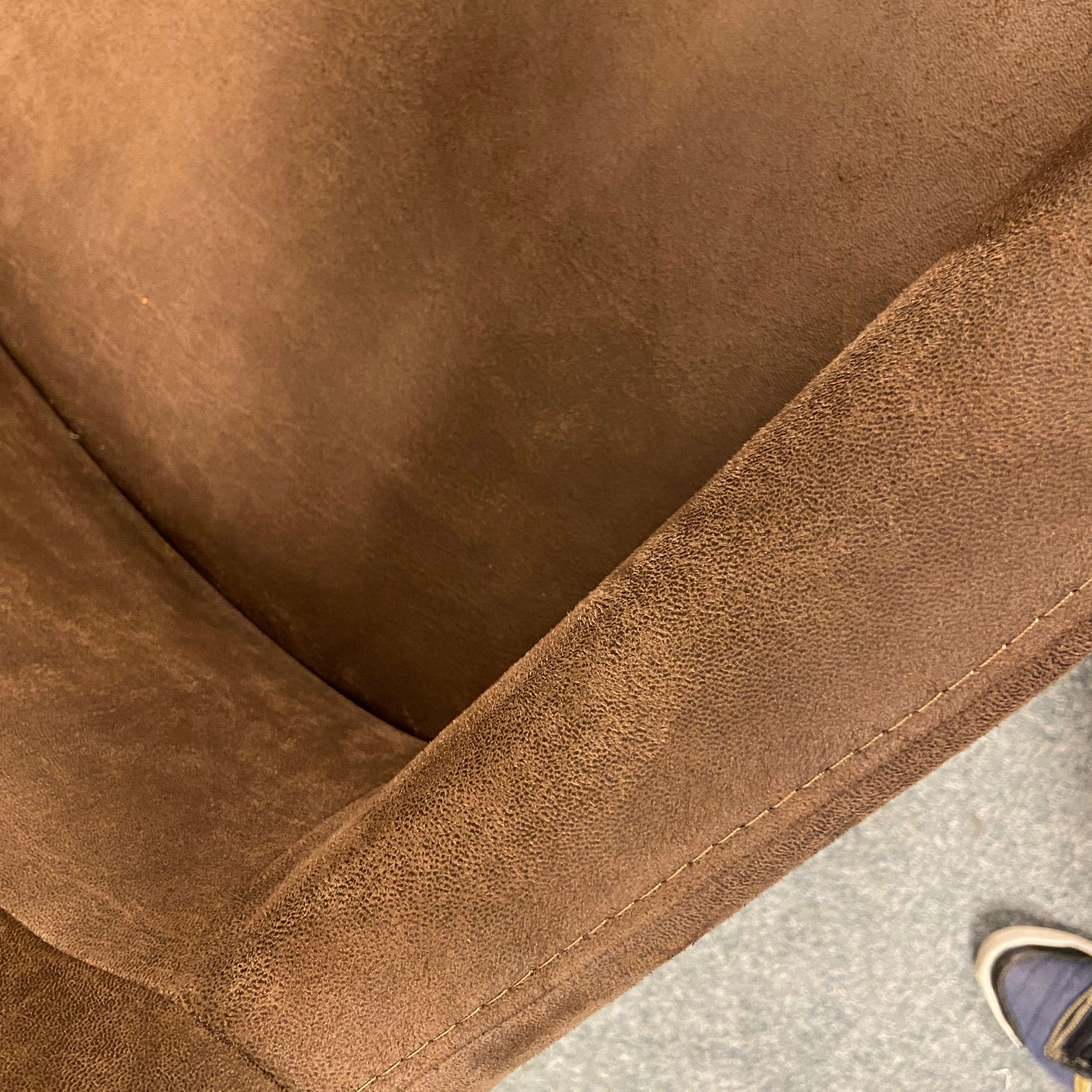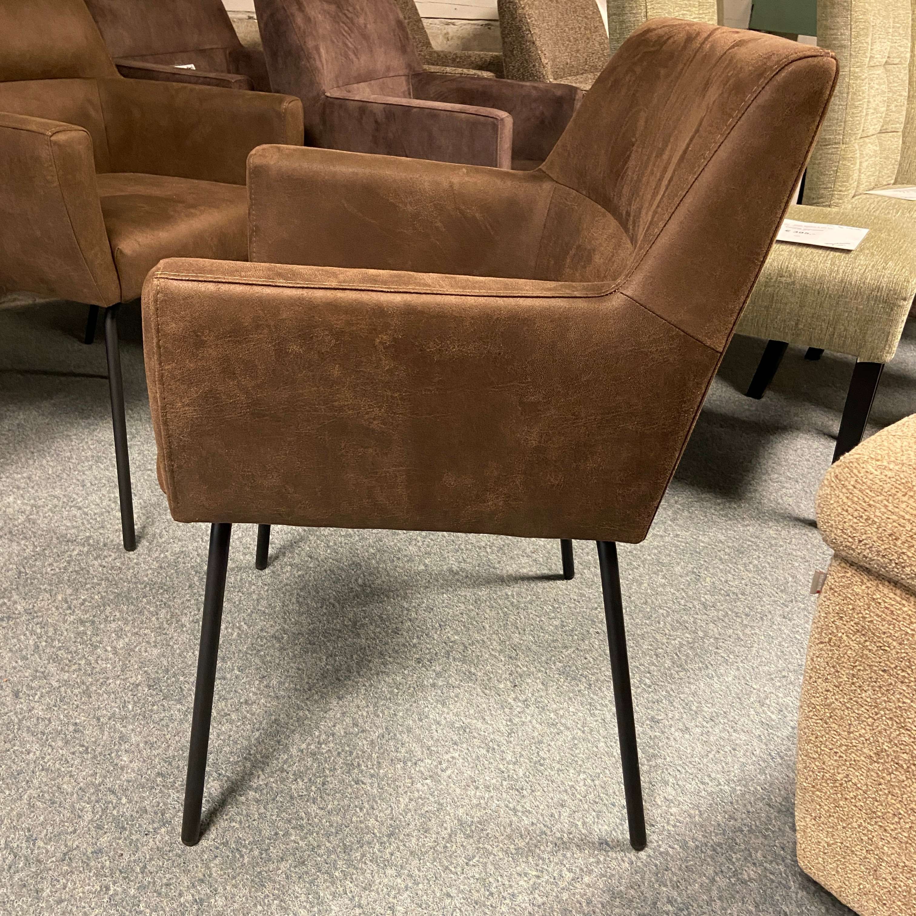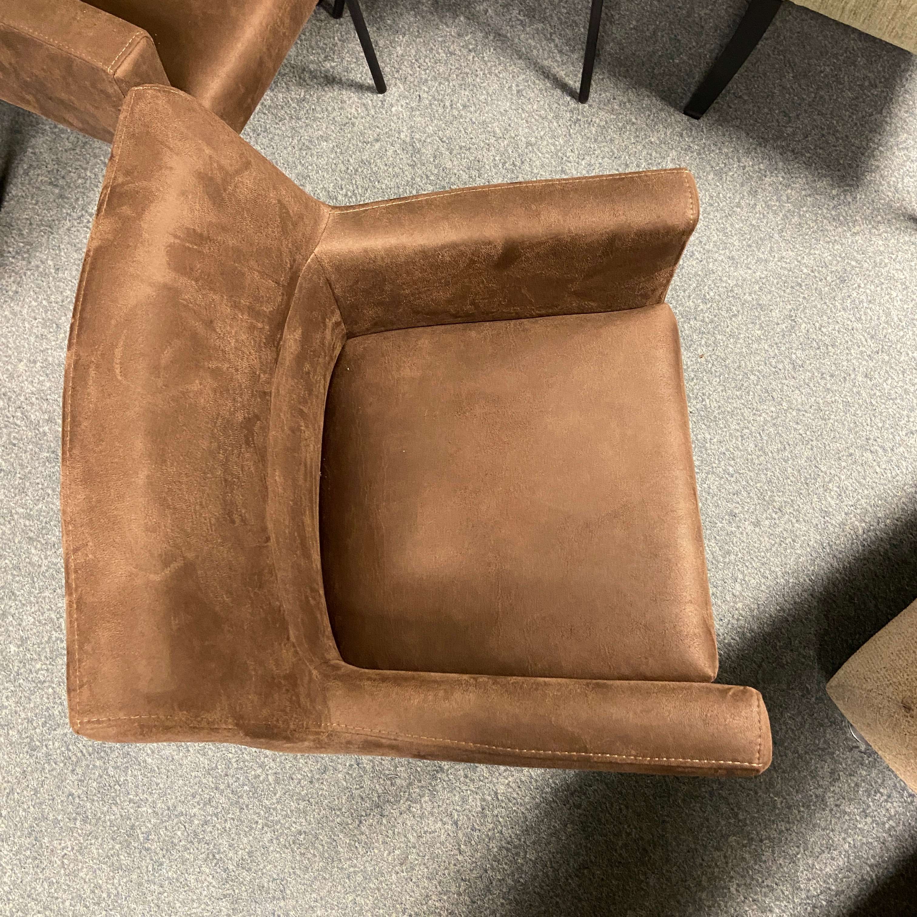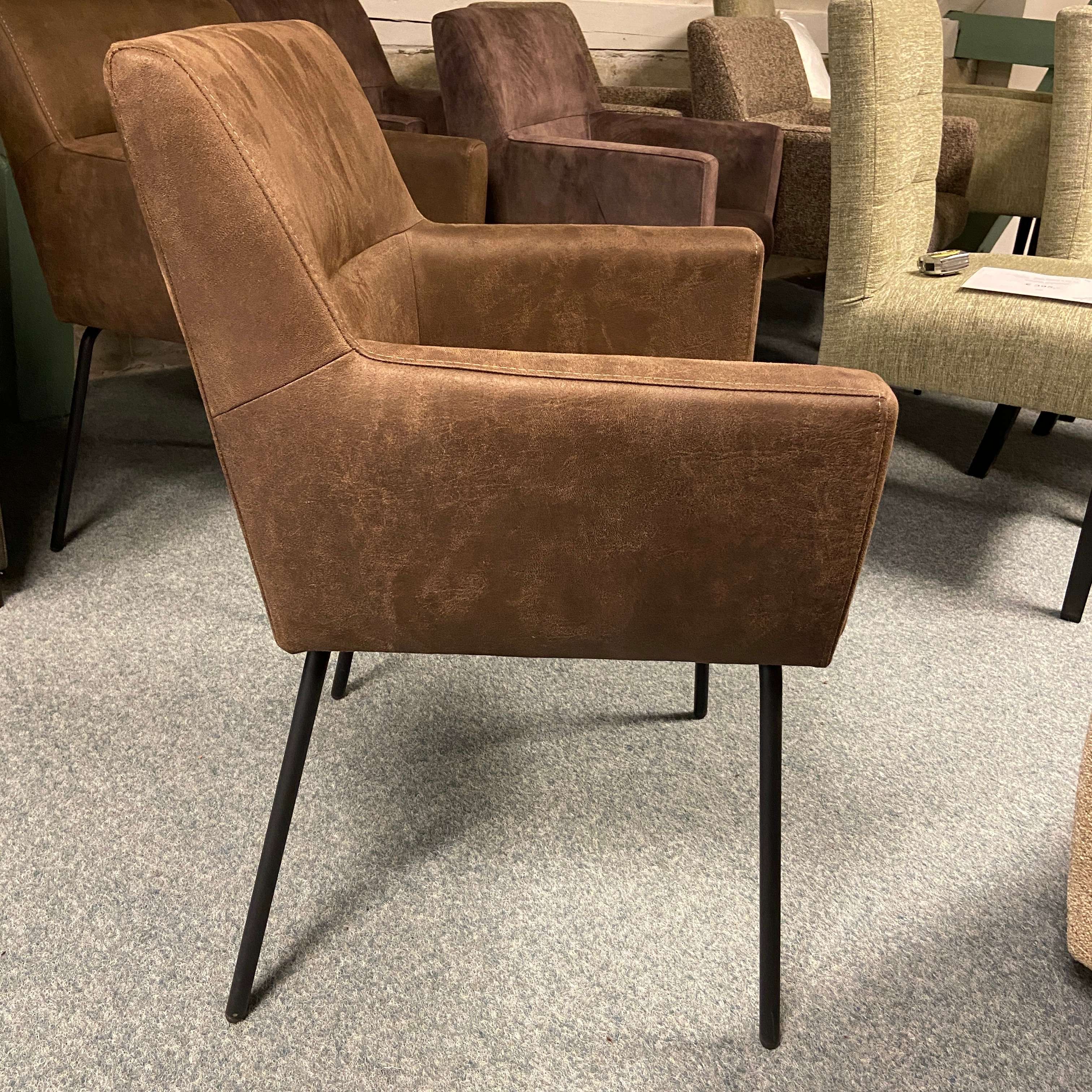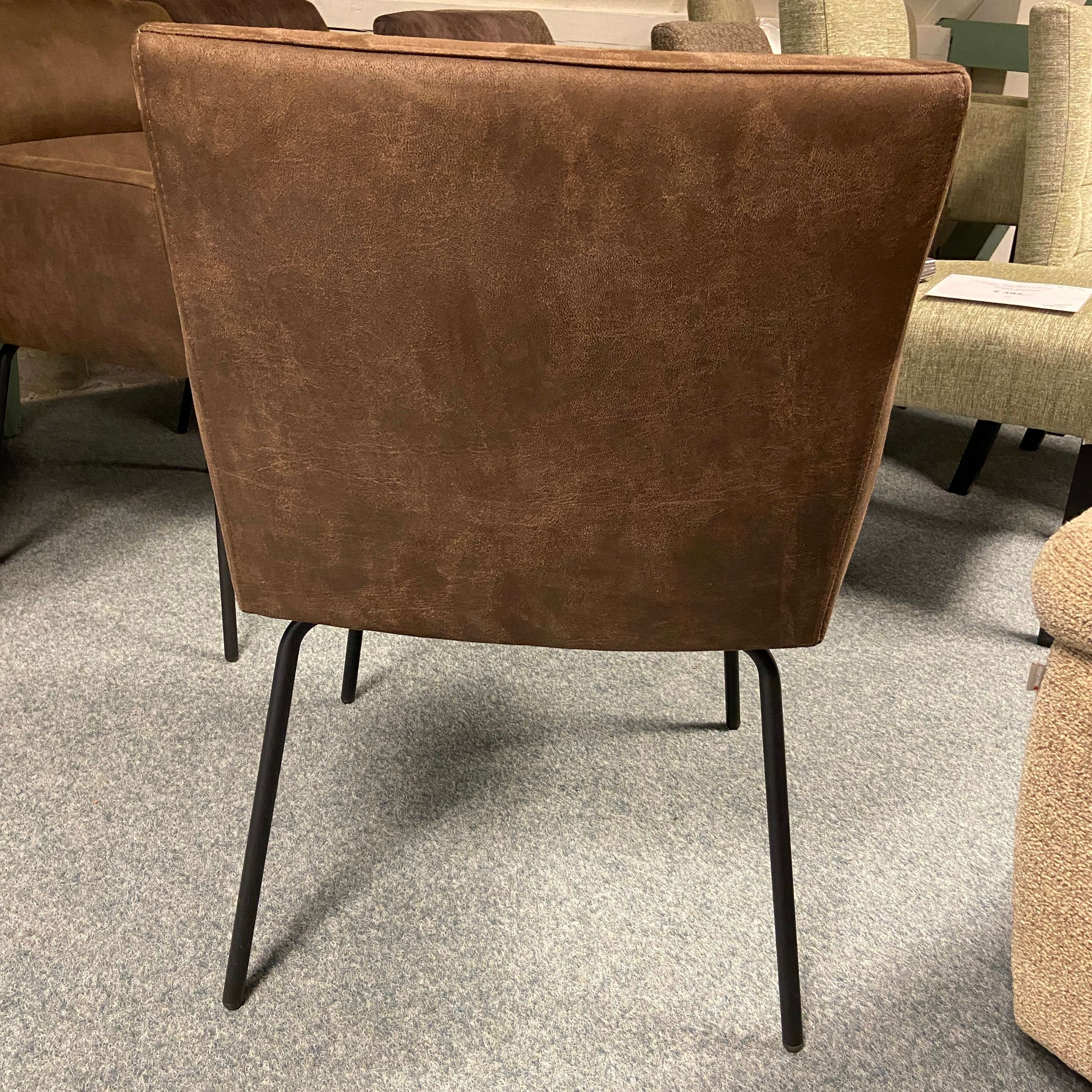 Hippe lekkerzittende stoelen in de neutrale kleur bruin. (roodbruin) Ogen mooi klein. Zwarte metale poten.