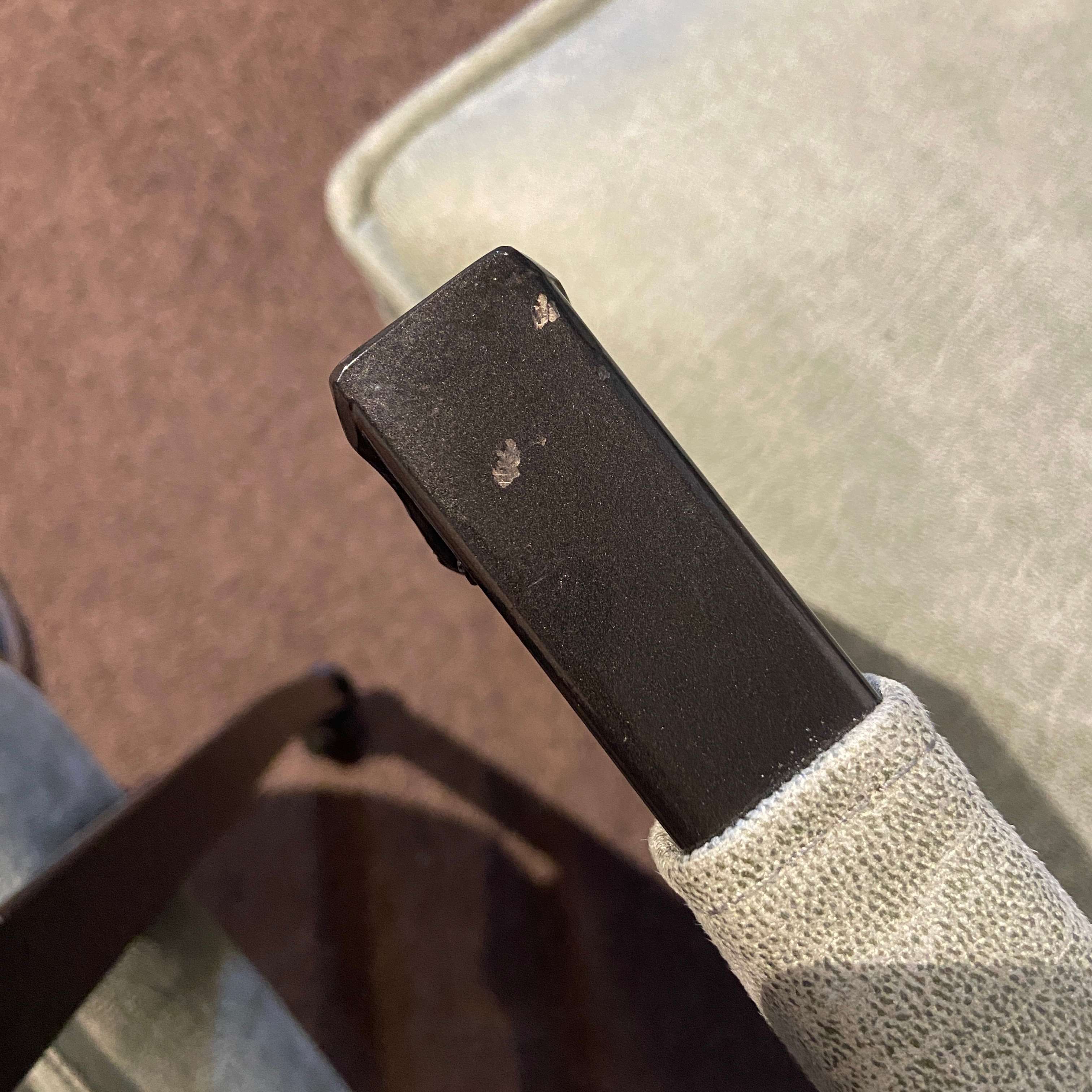Op 1 stoel zit een kleine beschadiging op het metale frame (armleuning)