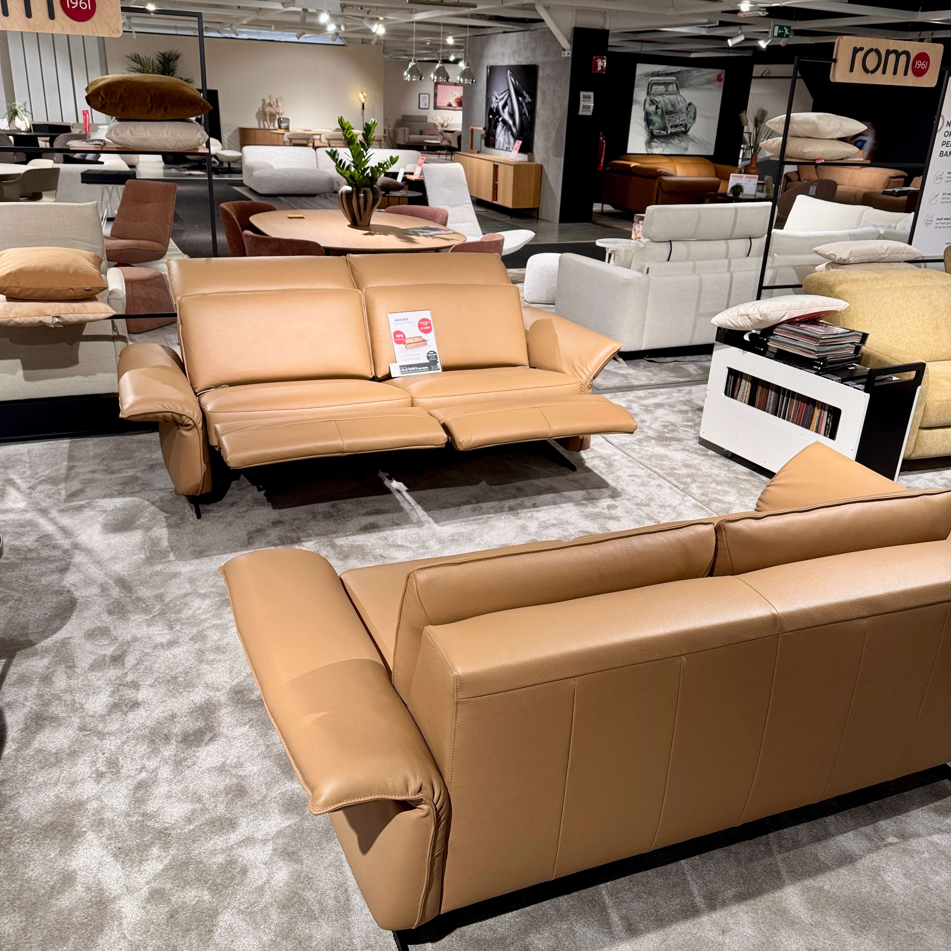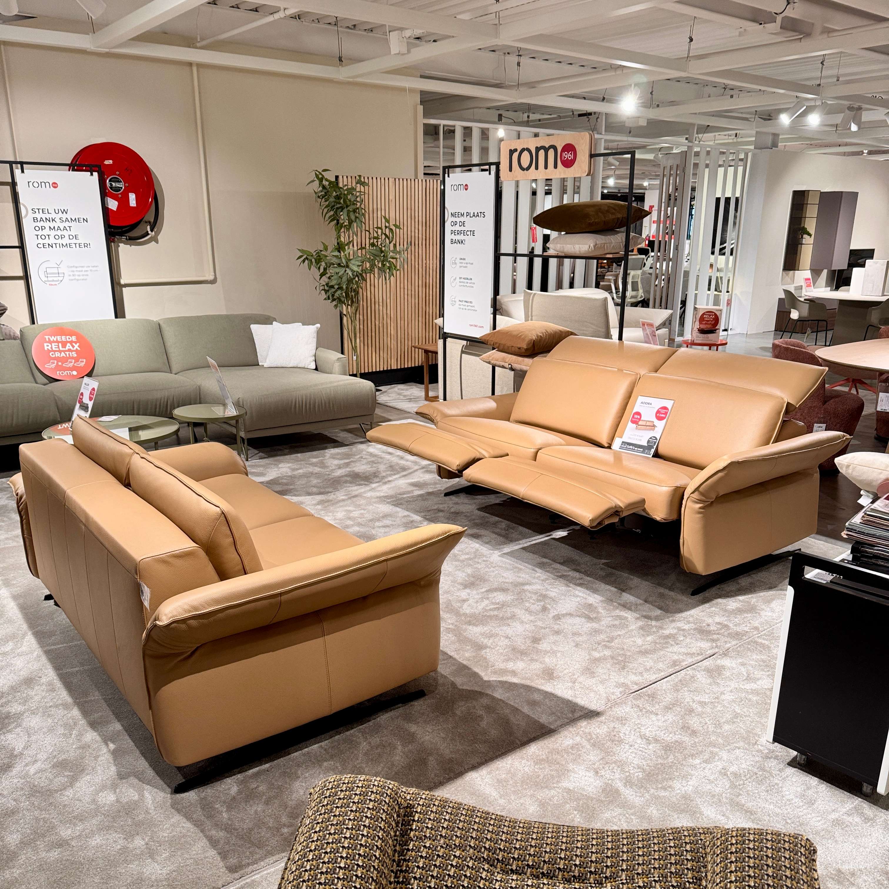 Salon Adore combineert een vaste 2-zit BB200 (200 cm) met een 2-zit BB220 (220 cm), voorzien van 2× elektrische Max relaxfuncties. Bekleed in luxueus Trentino leder, staat dit salon garant voor topcomfort en een verfijnde uitstraling.
