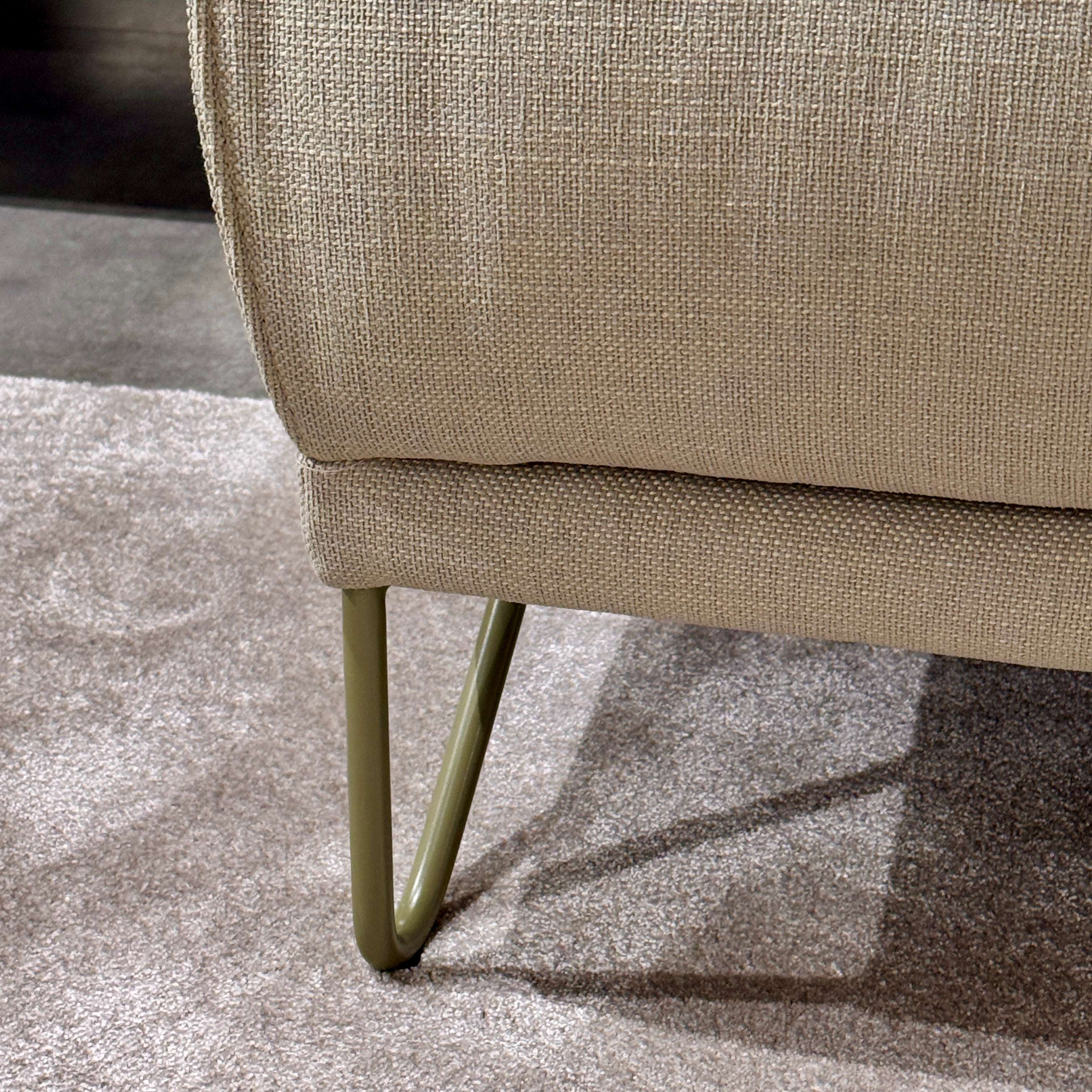 De stof Nevio Sage, een zachte groentint, geeft de bank een frisse en natuurlijke uitstraling. In combinatie met de pootjes in bijpassende kleur straalt de Miller klasse en harmonie uit tot in het kleinste detail.