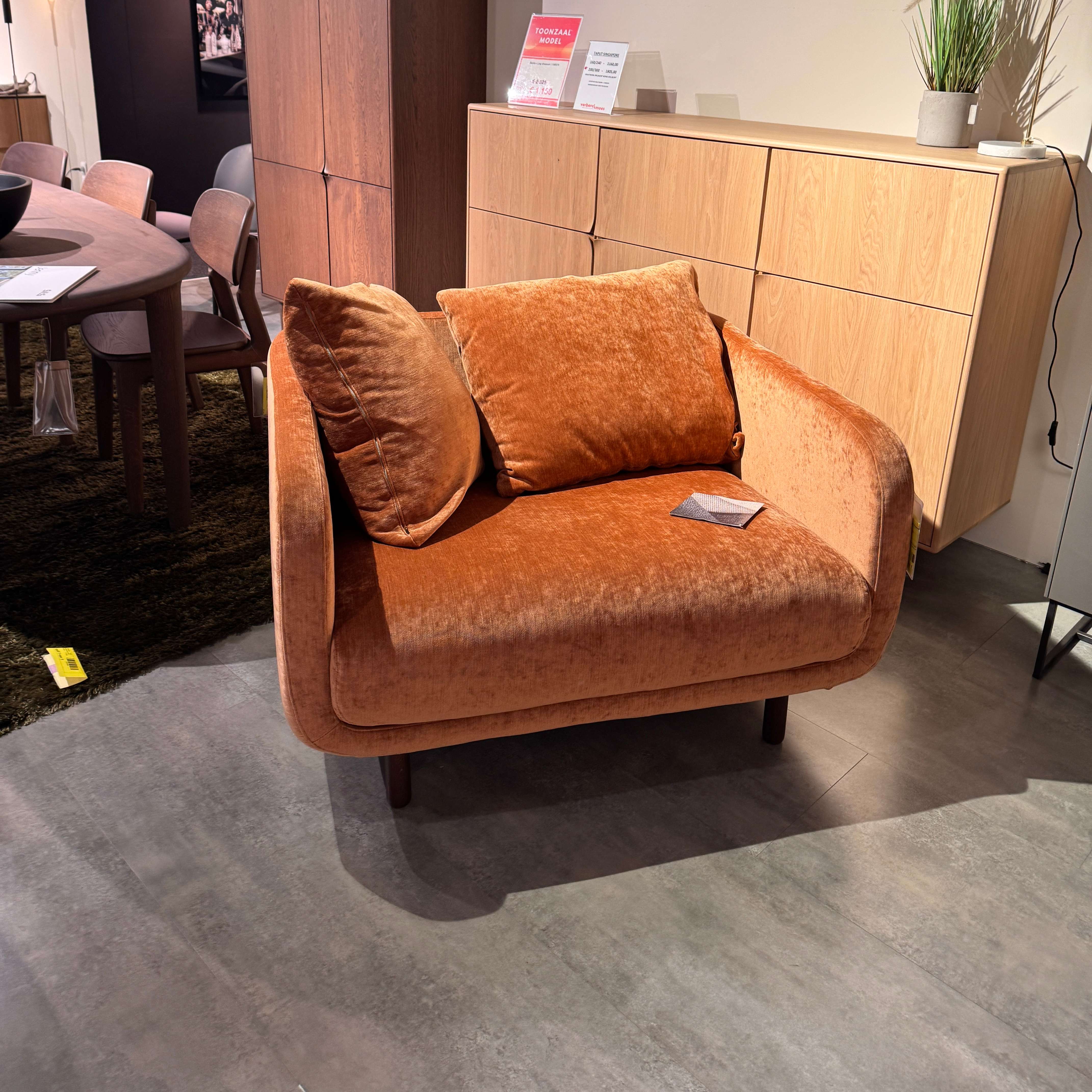 Breng kleur en karakter in je leefruimte met het salon Jenny van Sits. Deze stijlvolle combinatie bestaat uit een comfortabele 3-zit met grote rugkussens en een royale 1-zit van 117 cm, beide uitgevoerd in de zachte, geweven stof Elyot in een levendige oranje kleur.