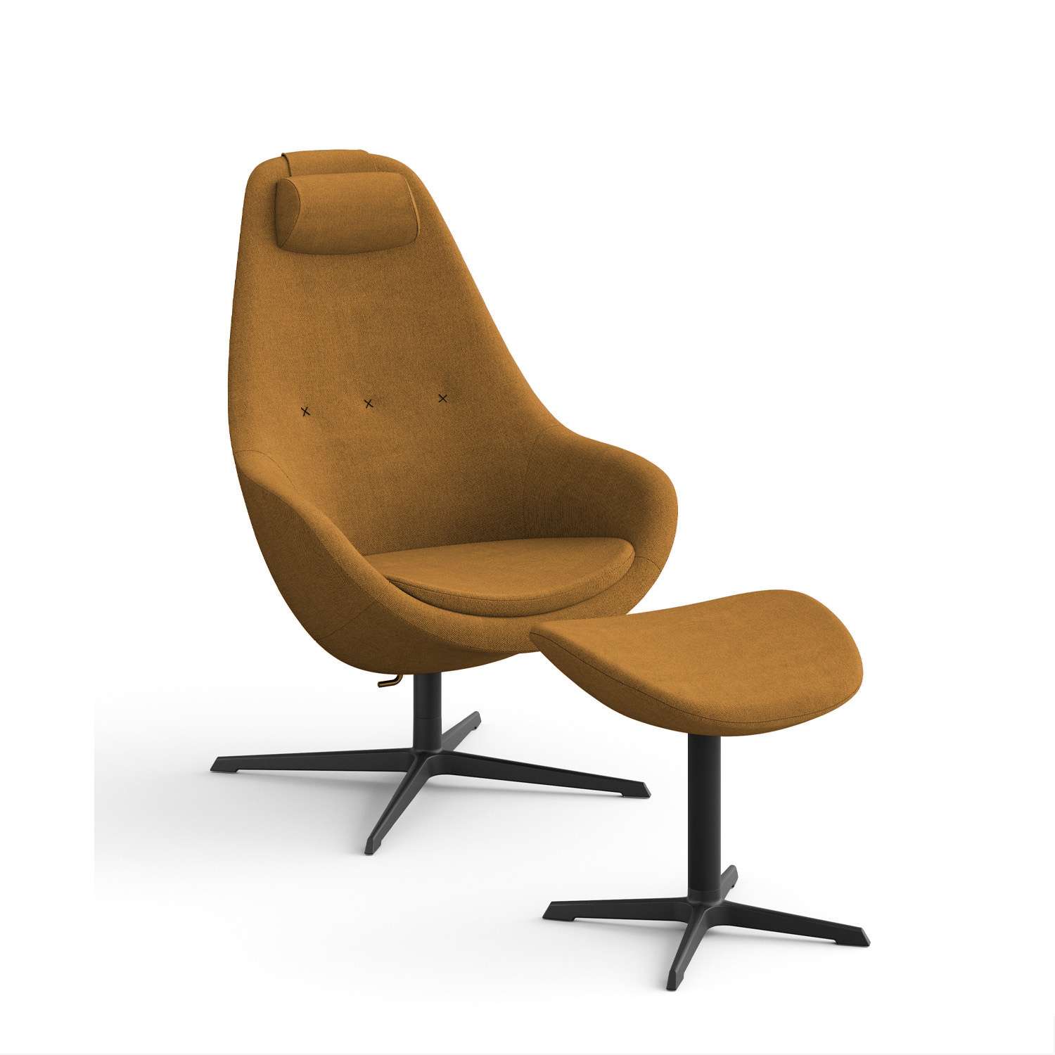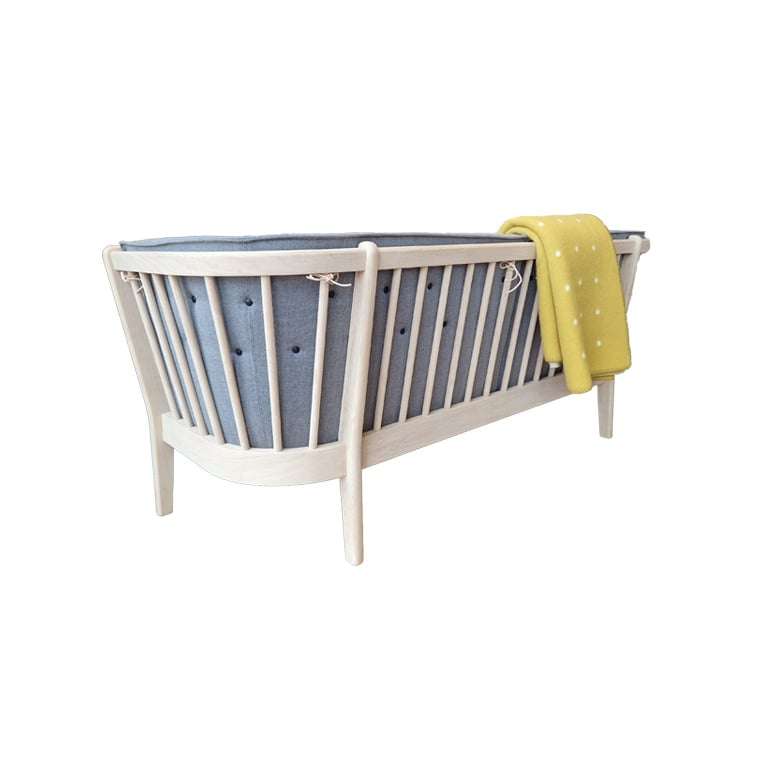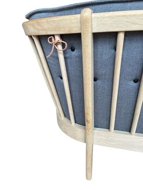 Meubelserie in stof en leer met massief zichtbaar beuken of eiken frame. Maria frames worden gemaakt met gegoten frame en cup piece, die samen met spijlen en doorlopende poten zorgen voor een lichte maar sterke constructie.
