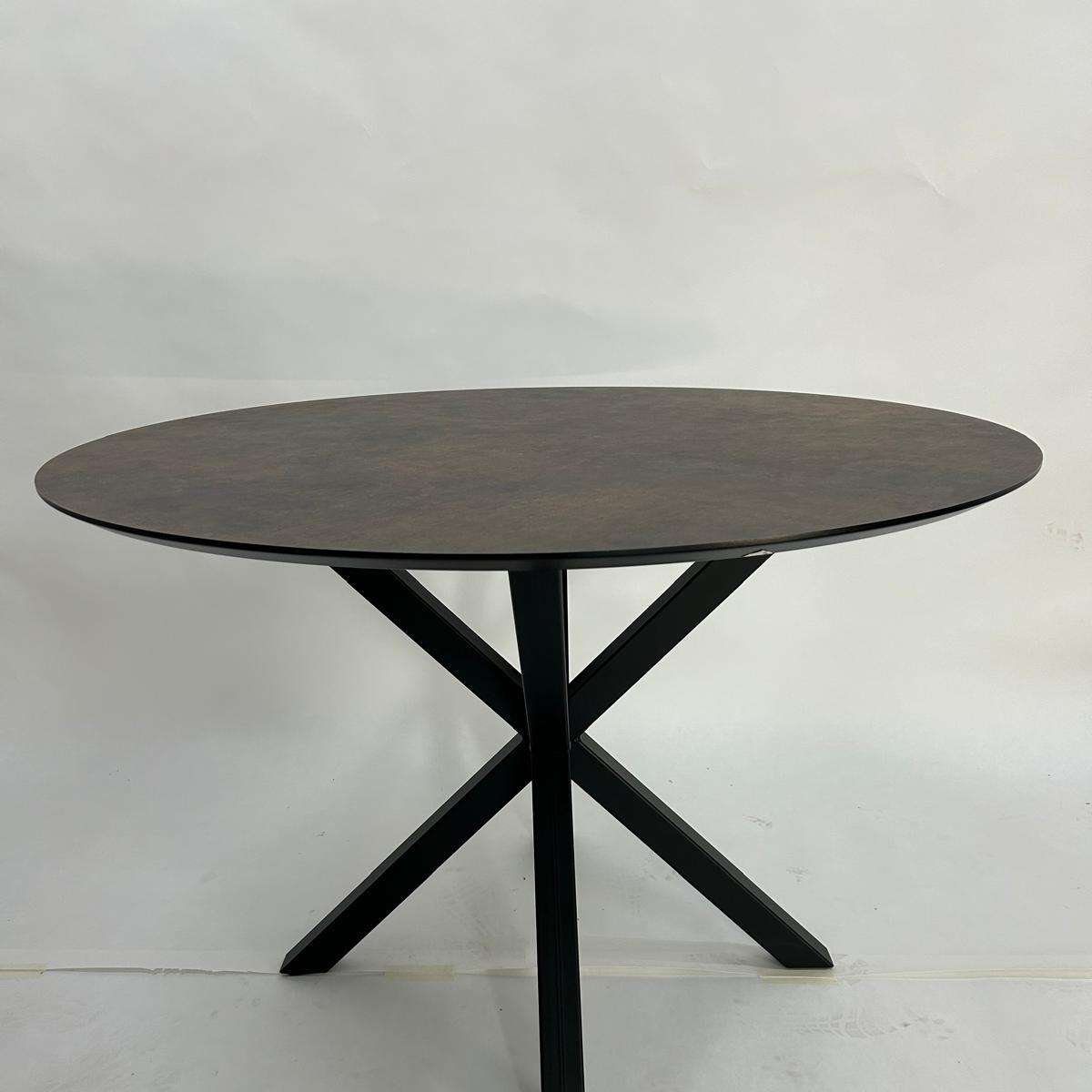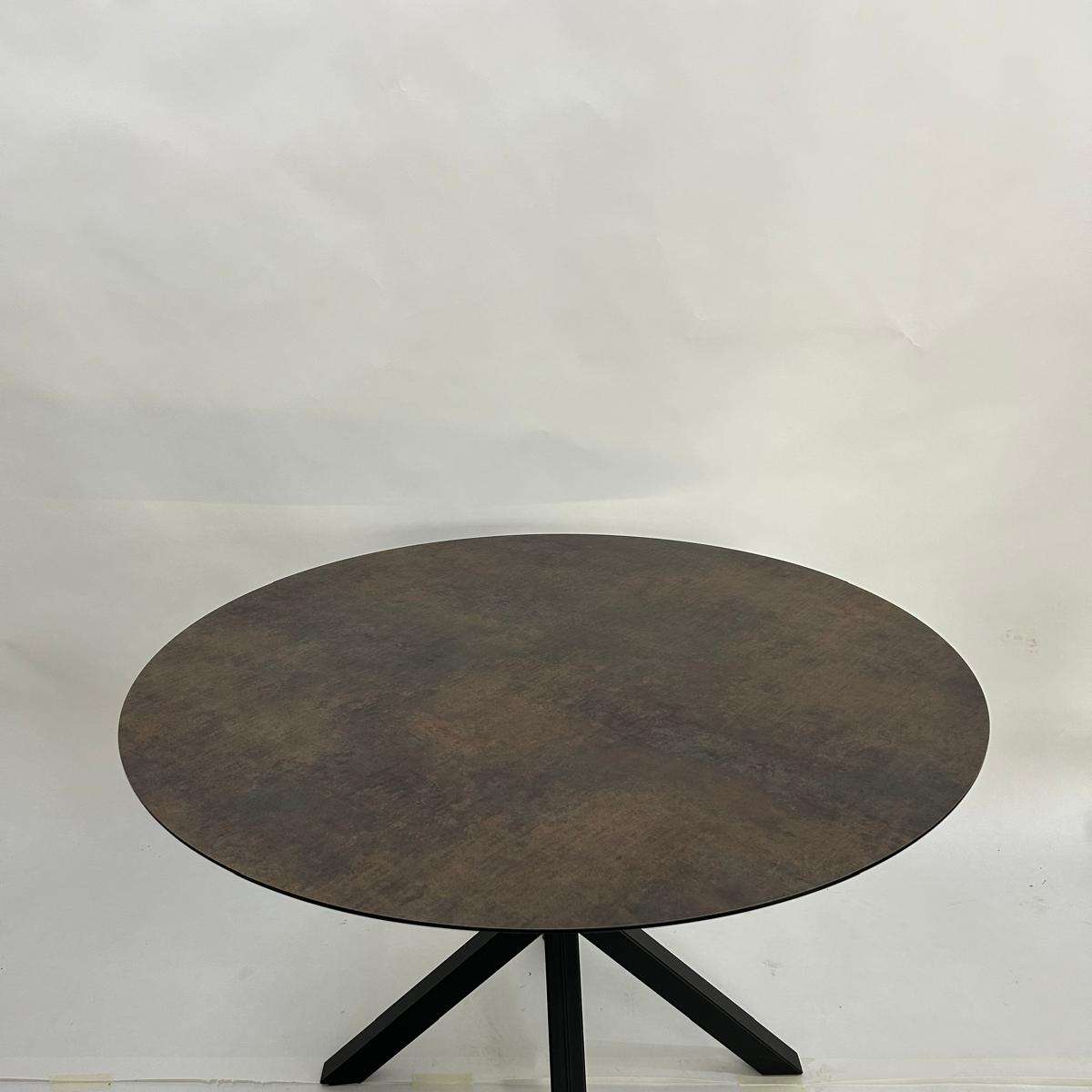 De tafel heeft een beurs meegedraaid als showmodel, is in goede staat, maar heeft enkele kleine puntjes in het blad.